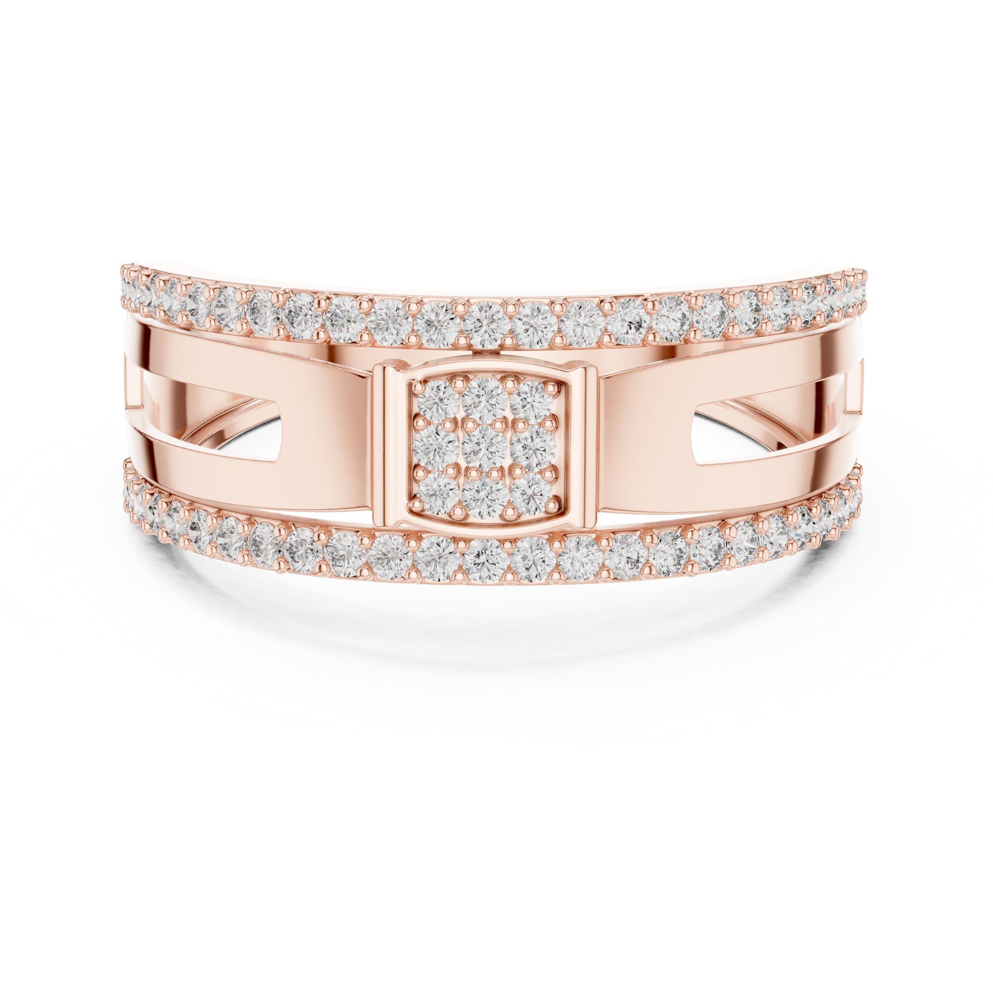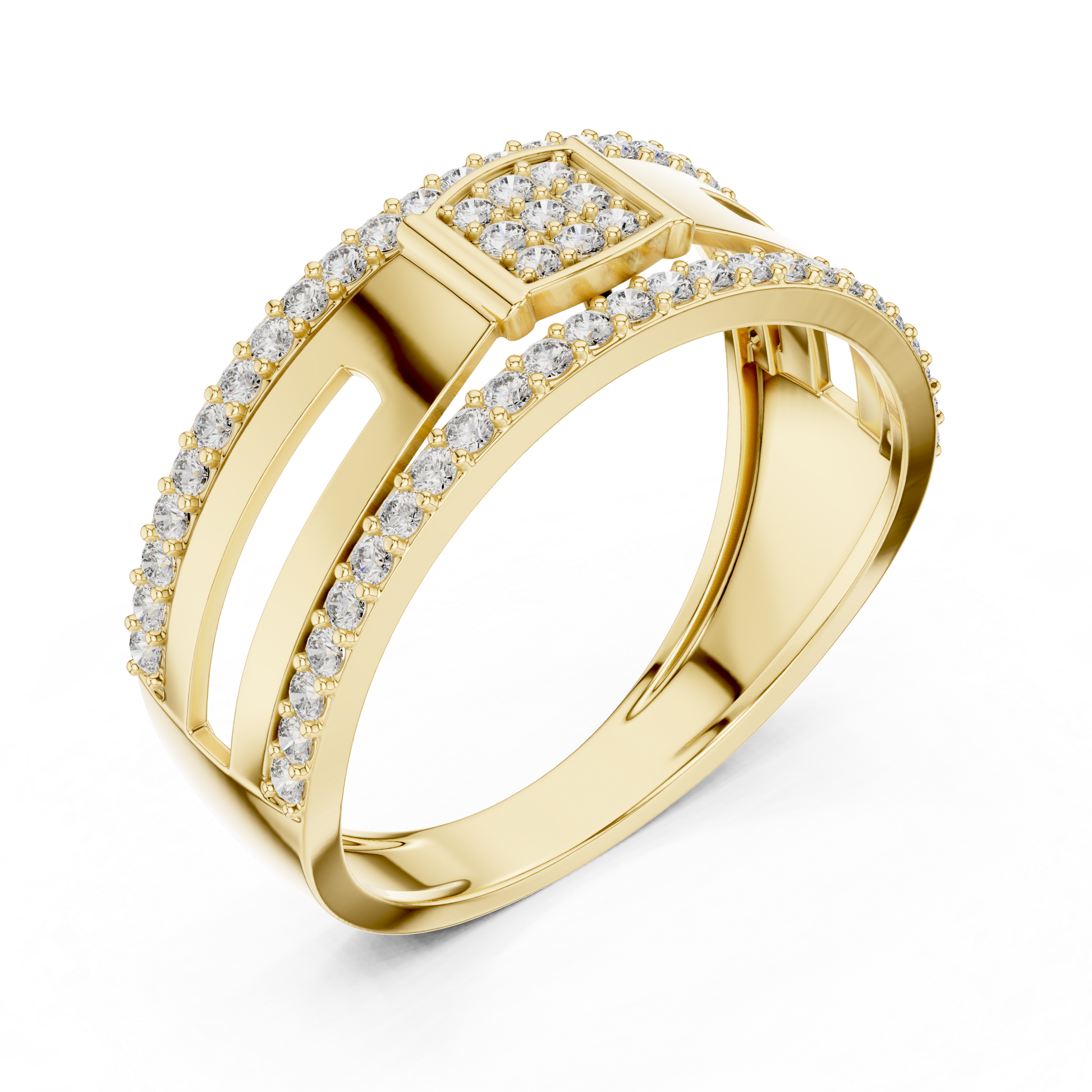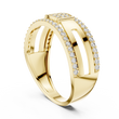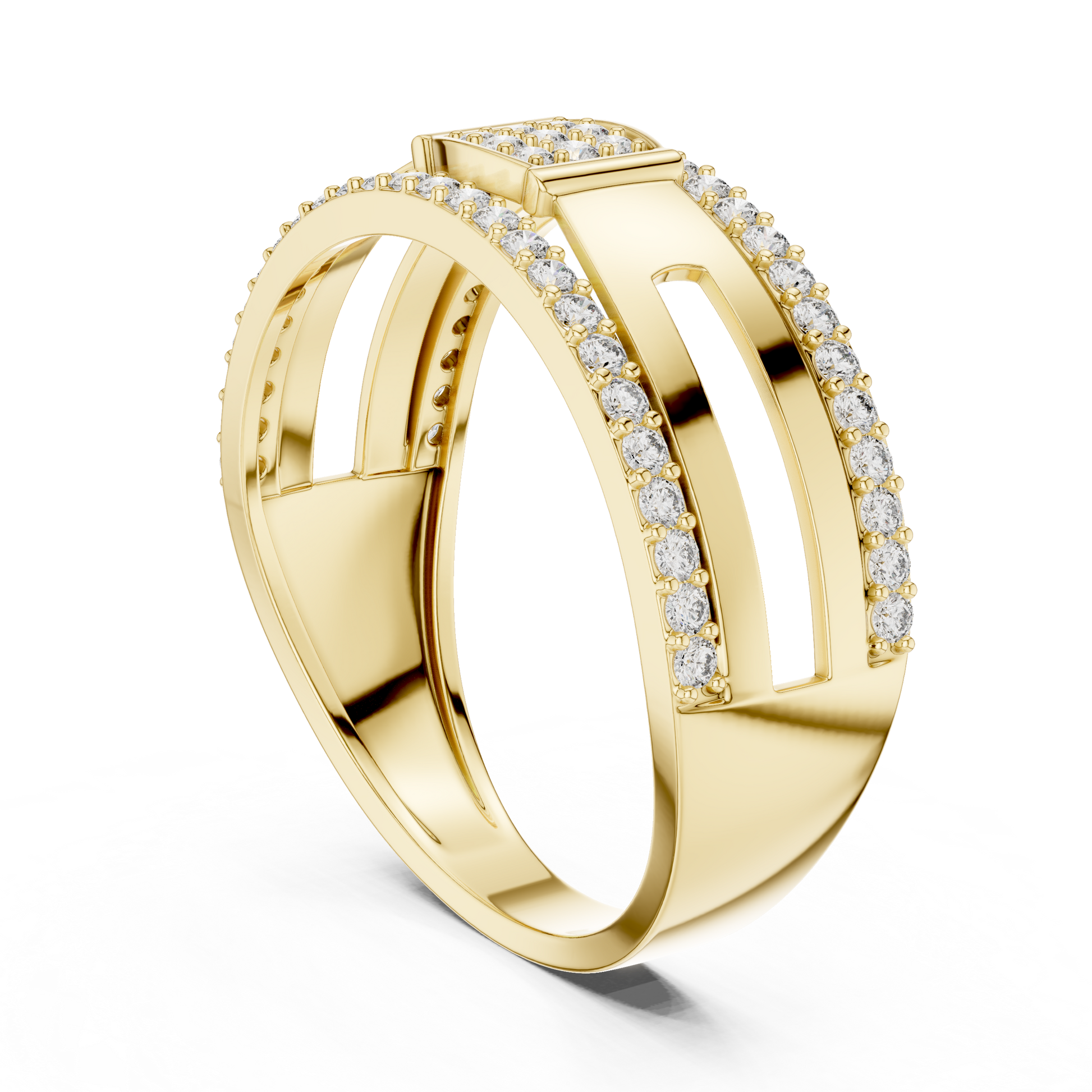 This exquisite ring from Ivevar Luxury is crafted in radiant gold and showcases a square pavé-set diamond center that delivers brilliant sparkle from every angle. The design is elevated by double rows of round diamonds flowing along the band, creating a bold yet refined silhouette. Distinctive openwork cutout detailing adds depth and a modern architectural feel, while the high-polish gold finish enhances its luxurious appeal.