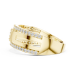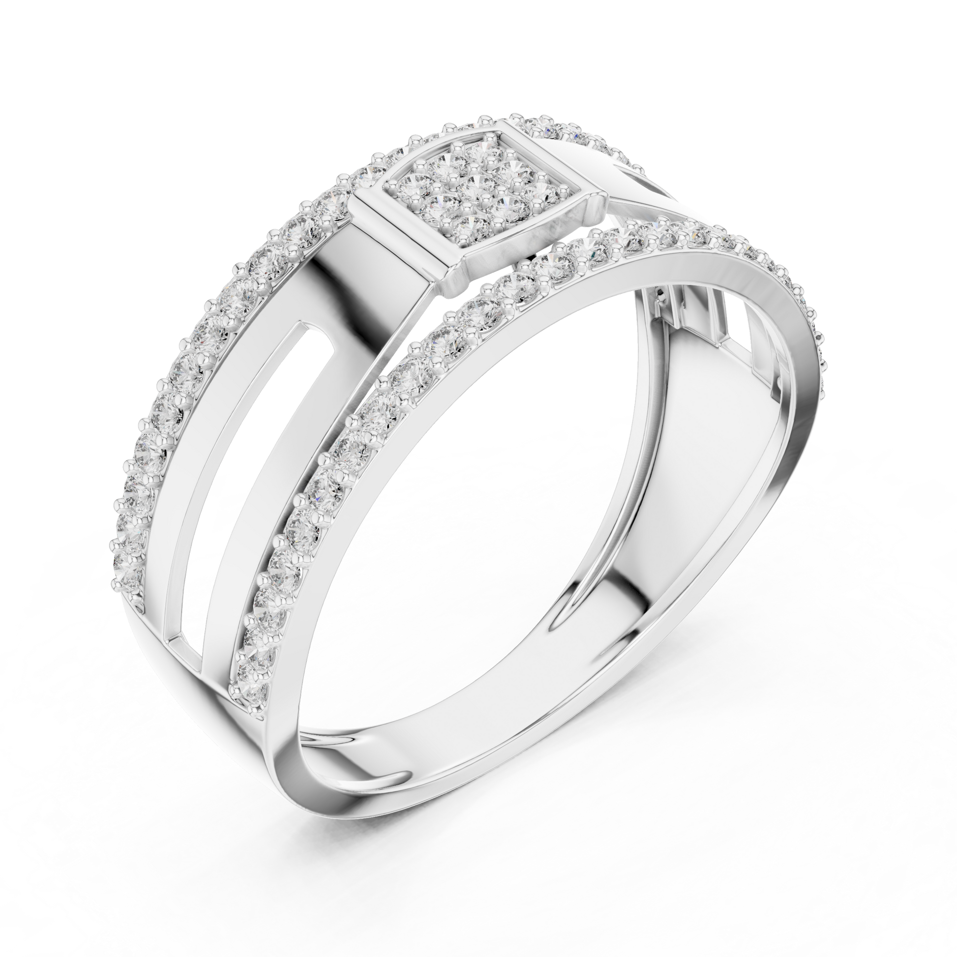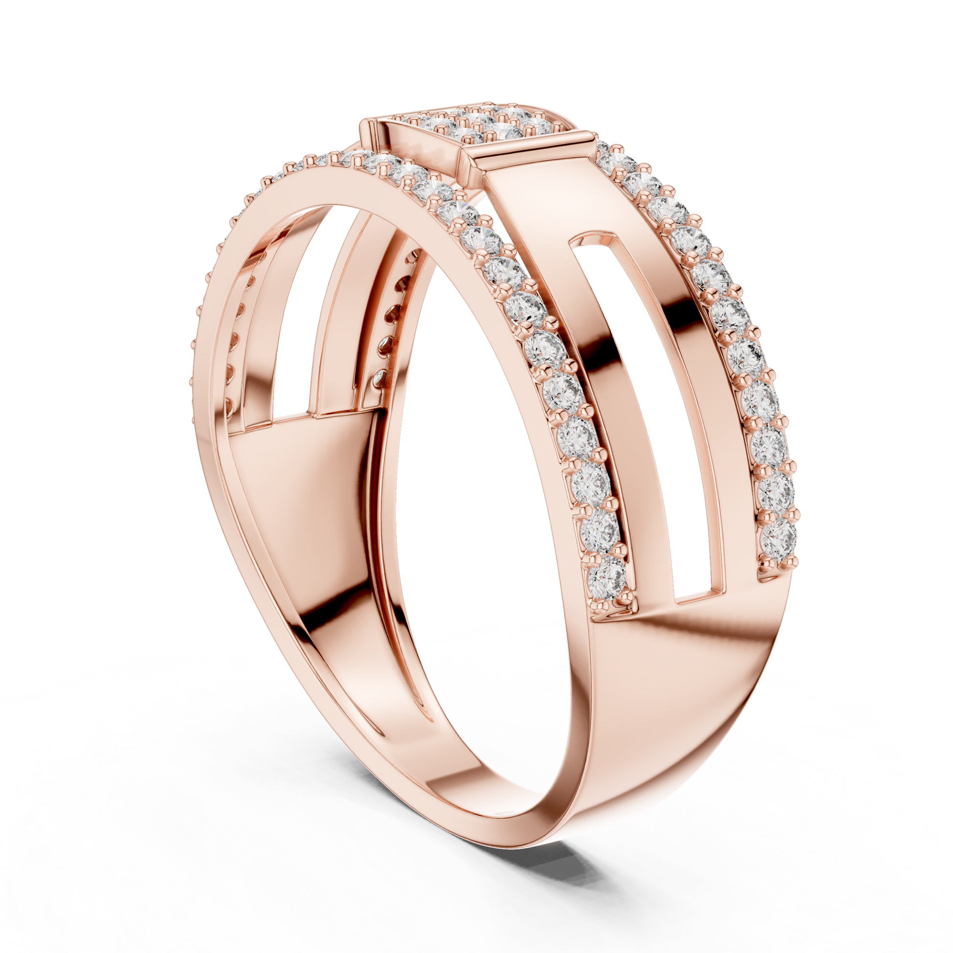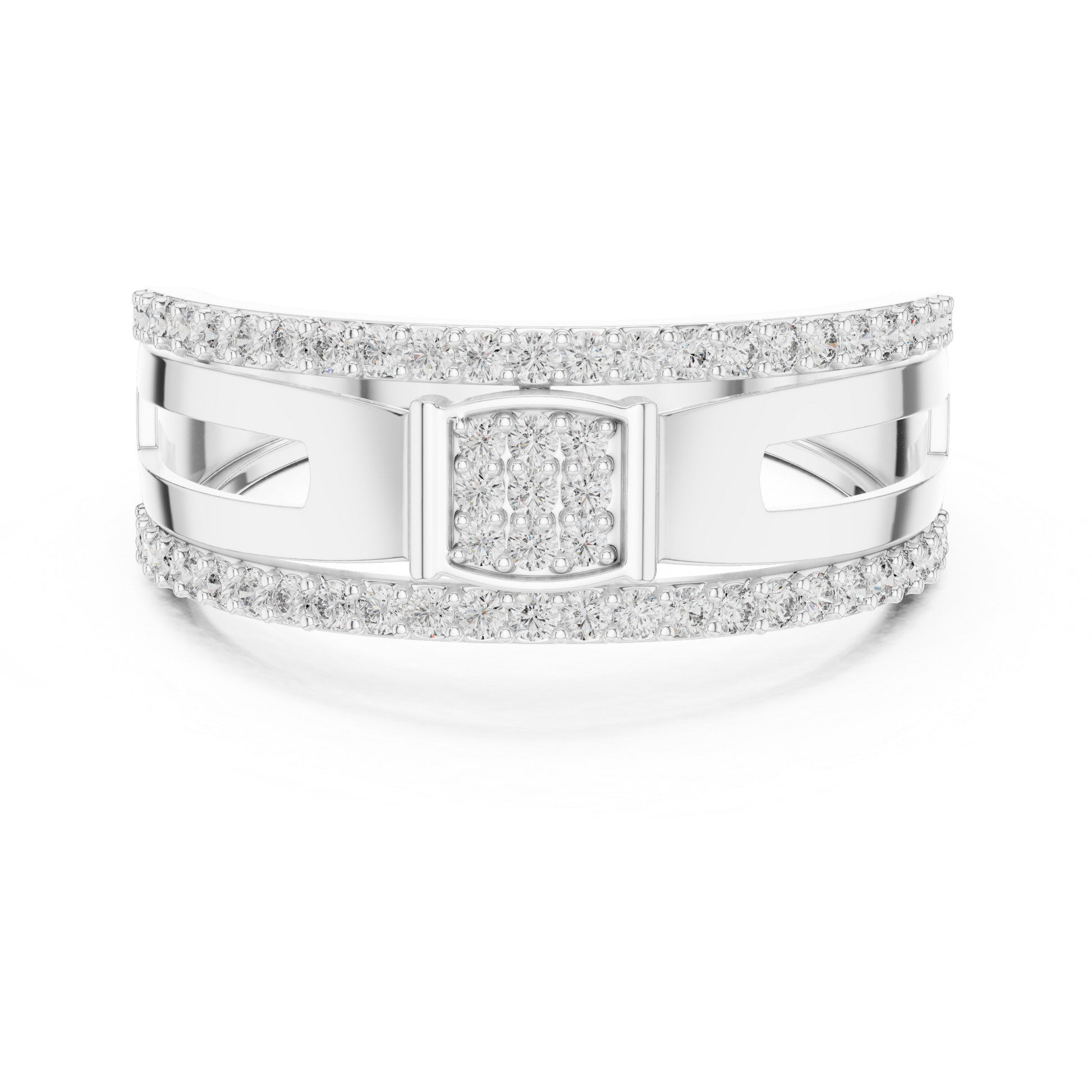 This exquisite ring from Ivevar Luxury is crafted in radiant gold and showcases a square pavé-set diamond center that delivers brilliant sparkle from every angle. The design is elevated by double rows of round diamonds flowing along the band, creating a bold yet refined silhouette. Distinctive openwork cutout detailing adds depth and a modern architectural feel, while the high-polish gold finish enhances its luxurious appeal.