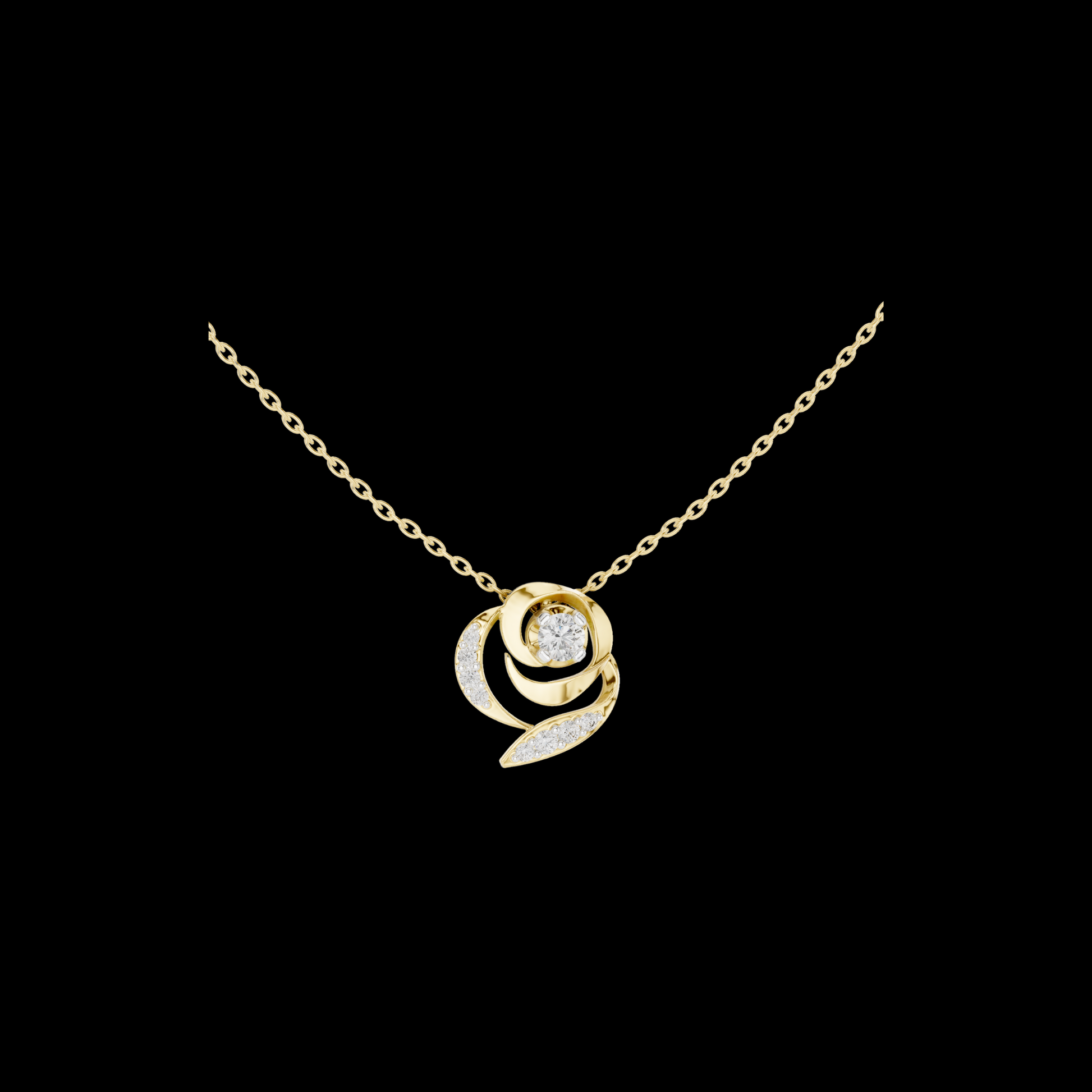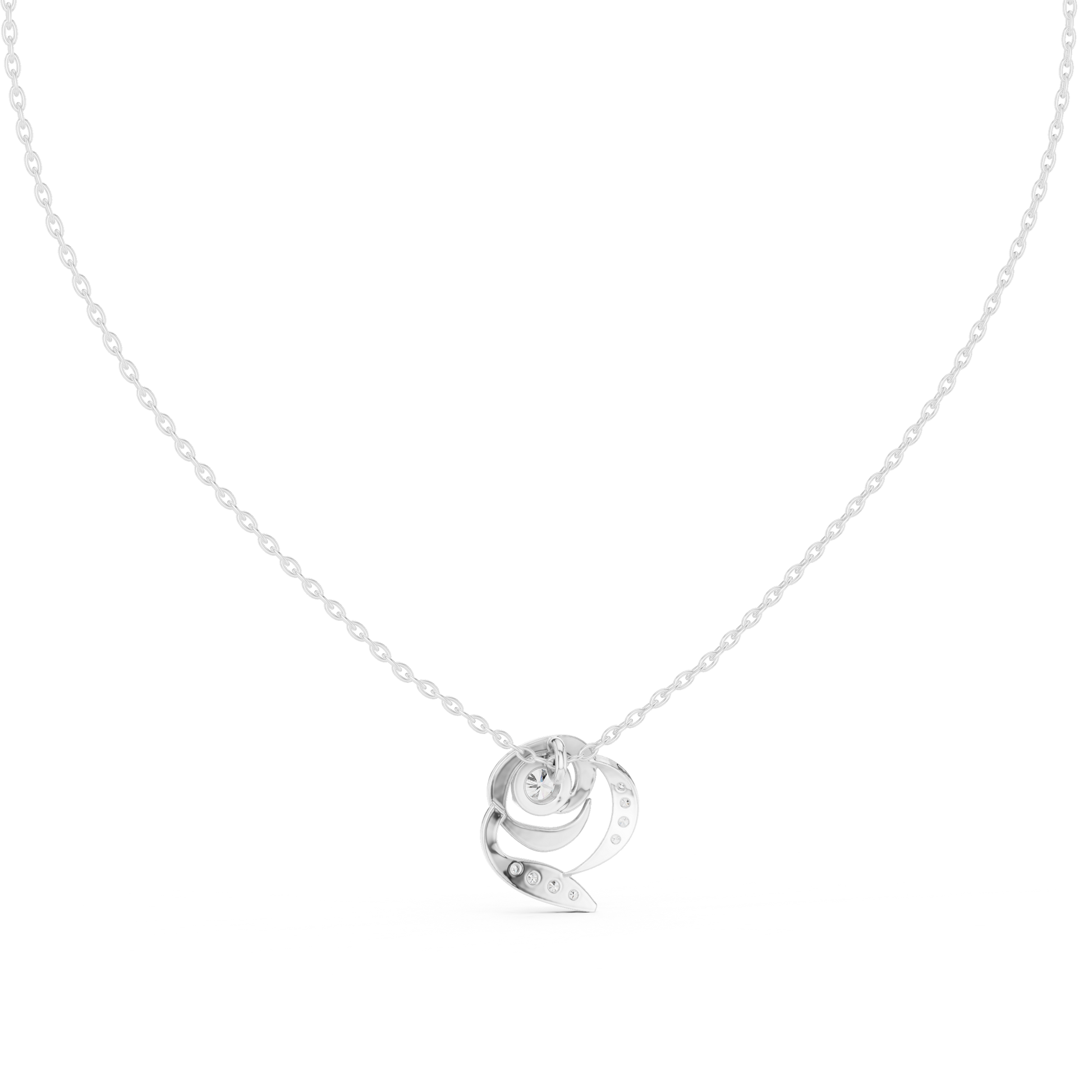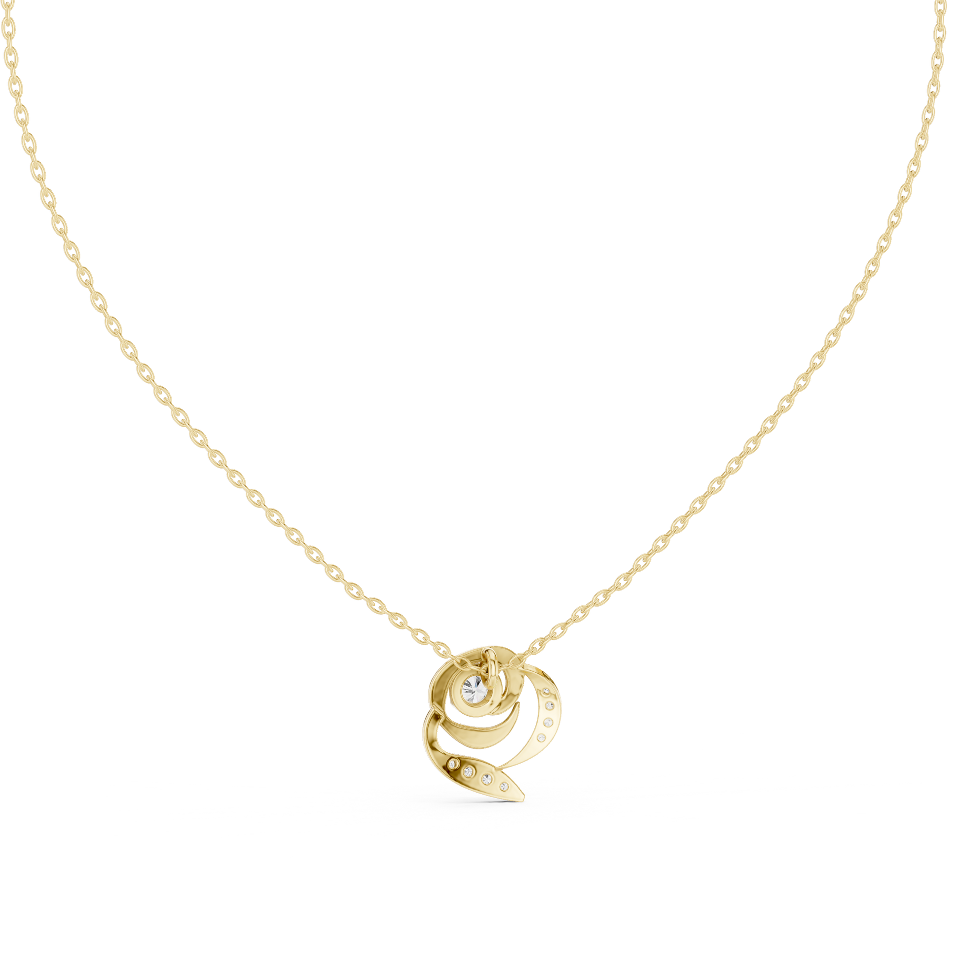 This elegant gold swirl pendant showcases a graceful, flowing design that wraps delicately around a brilliant central diamond, symbolizing movement, balance, and timeless beauty. Accented with shimmering pave-set diamonds, the sculptural curves catch the light from every angle, adding depth and sophistication to the piece. Suspended from a refined gold chain, this pendant blends modern artistry with classic luxury, making it an ideal choice for everyday elegance or a meaningful gift that reflects refined style and understated glamour.