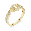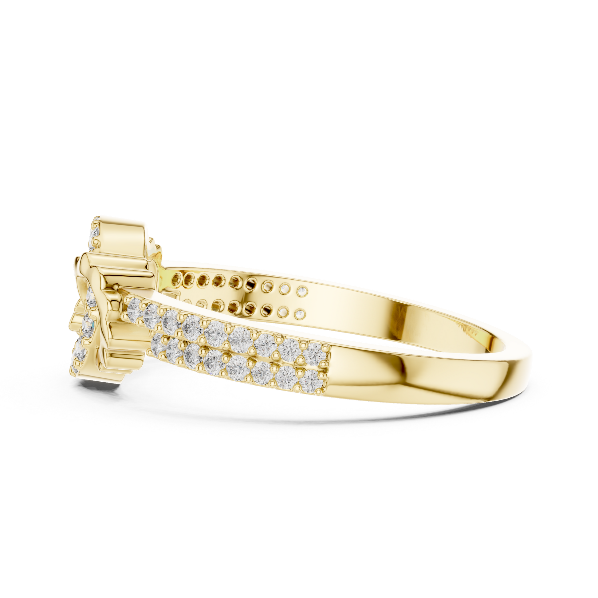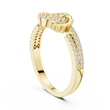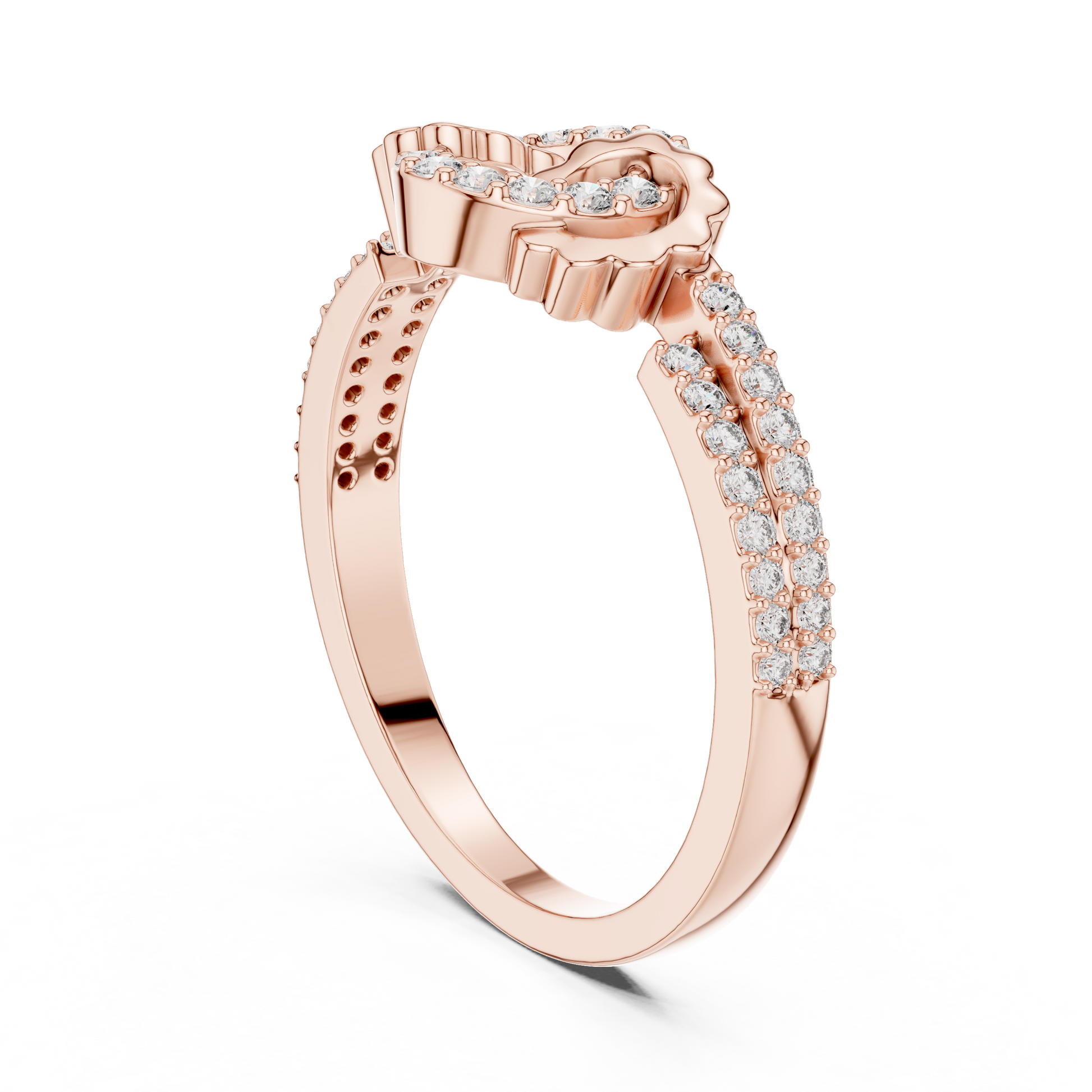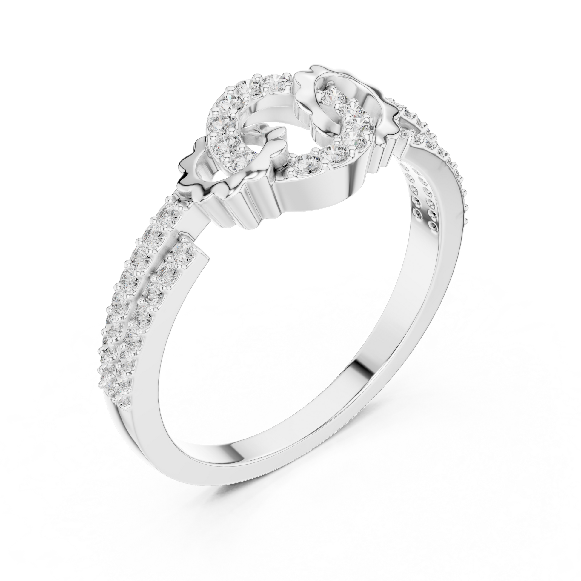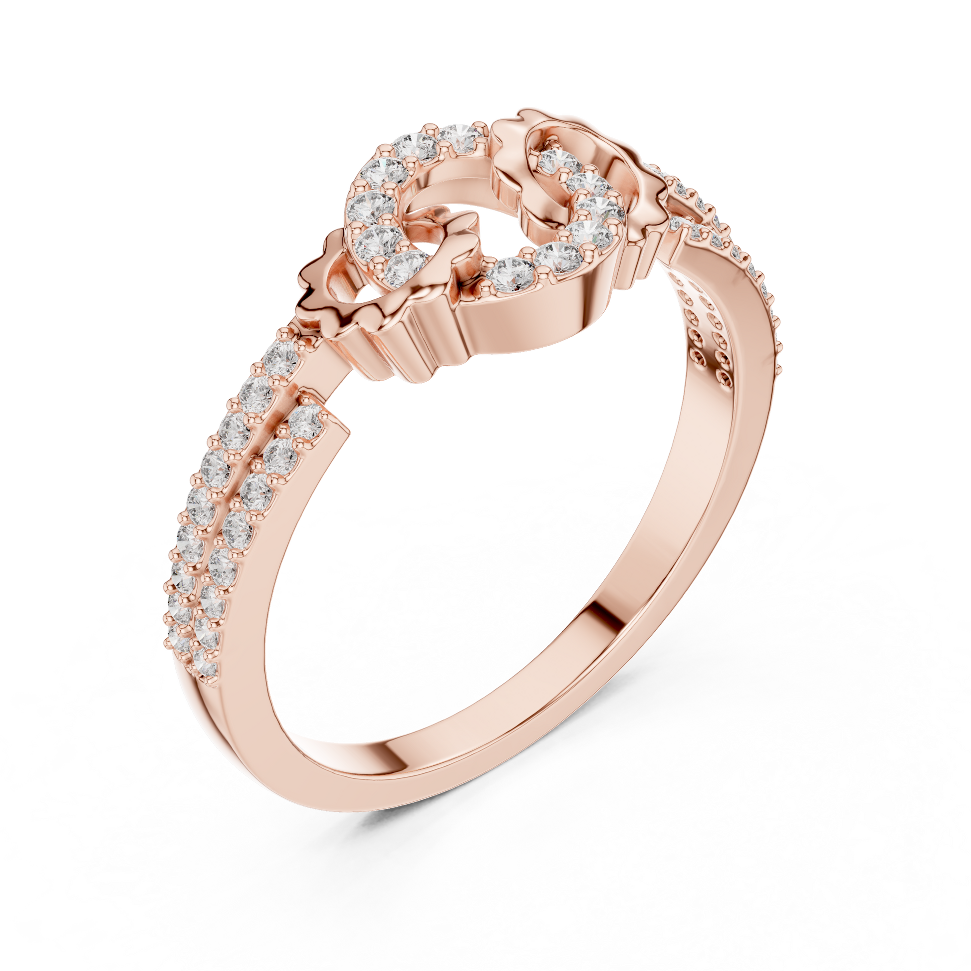 Celebrate refined artistry with this stunning diamond ring, designed around a captivating interlinked loop motif that represents unity, balance, and timeless connection. At the center, brilliant round-cut diamonds are meticulously set within a circular frame, creating a luminous focal point that sparkles with every movement.The band is enhanced with delicate pavé-set diamonds, adding depth, brilliance, and a touch of contemporary sophistication.