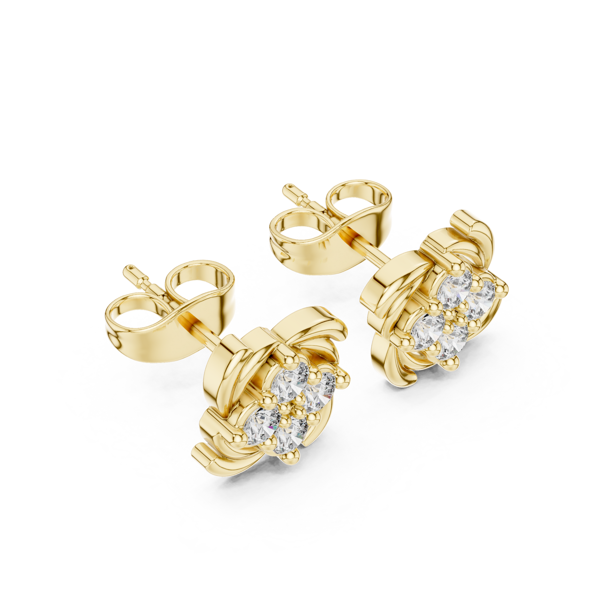 Elevate your everyday elegance with these exquisite Sculpted Floral Motif Stud Earrings, designed to capture attention and inspire admiration. Each earring features a beautifully arranged cluster of brilliant round diamonds, nestled within an artfully sculpted floral gold setting. The graceful curves and refined craftsmanship create a timeless silhouette that is both modern and classic — perfect for every occasion.