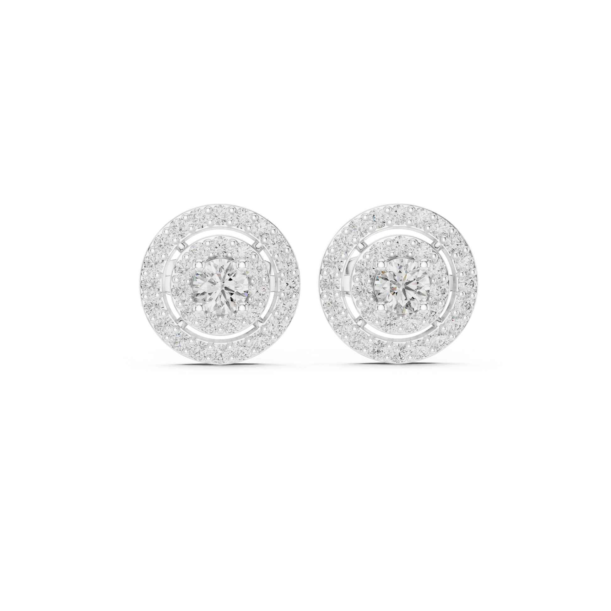 Discover timeless sophistication with these celestial round halo stud earrings, beautifully crafted in radiant gold. Featuring a striking double-circle halo design, each earring highlights a brilliant central stone surrounded by meticulously set accents that enhance depth and sparkle. The balanced round silhouette offers a refined yet eye-catching presence, perfect for everyday elegance or special occasions. Designed to sit comfortably while delivering maximum brilliance, these studs are a versatile addition to any fine jewelry collection—ideal for gifting, celebrations, or effortless luxury styling.