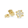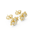 These ornamental floral cluster stud earrings blend classic charm with intricate gold artistry. A radiant round cluster forms the heart of the design, surrounded by softly curled gold accents that create a floral-inspired silhouette. The polished gold framework enhances brilliance while adding depth and texture, resulting in earrings that feel both graceful and luxurious. Perfect for festive occasions, refined evenings, or everyday elegance, these studs offer a timeless statement rooted in craftsmanship and beauty.