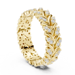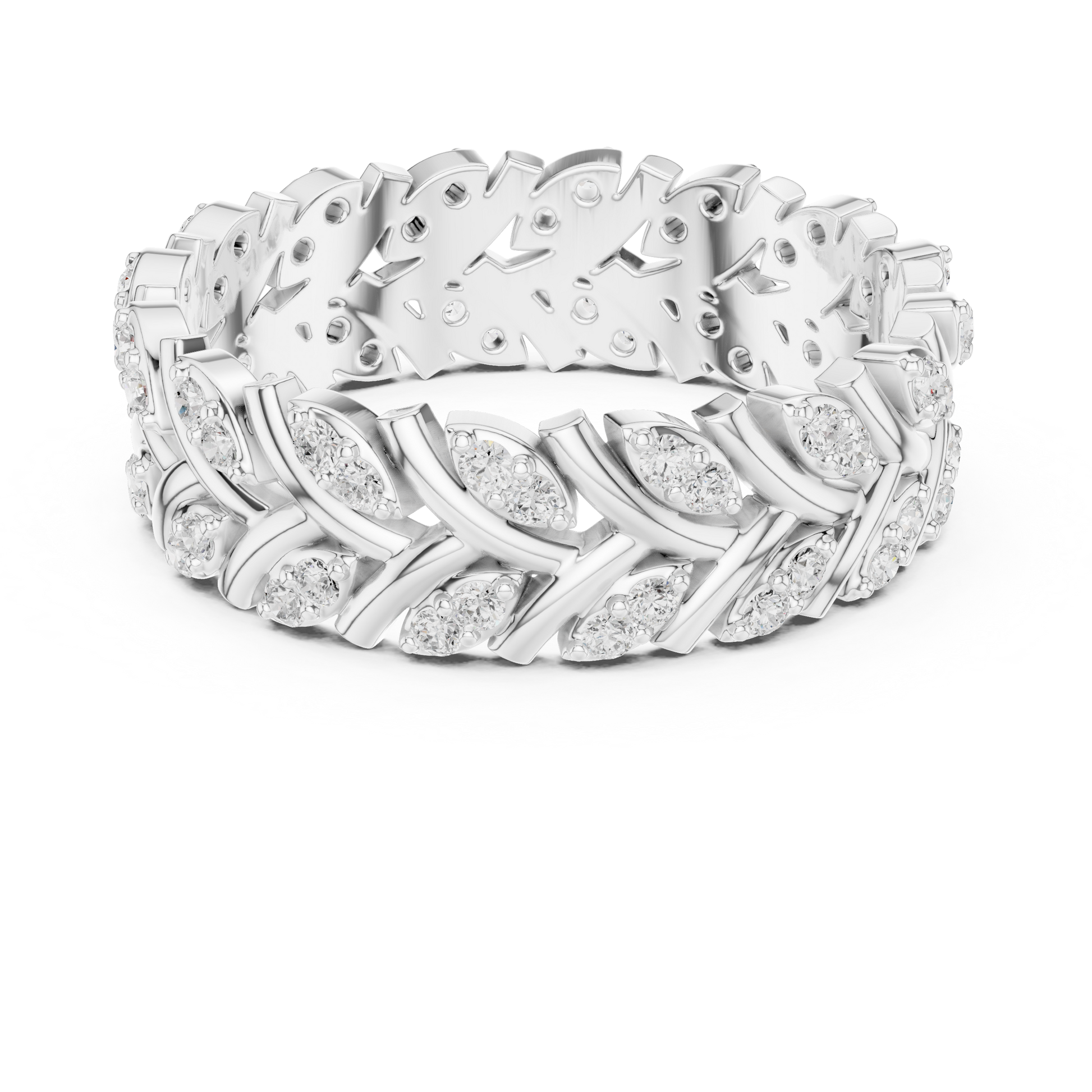 Elevate your style with this woven chevron diamond gold band, masterfully crafted in high-polish gold for a bold yet refined presence. The intricate interlaced pattern creates a dynamic flow across the band, each curve accented with brilliant round-cut diamonds that deliver continuous fire and brilliance from every angle. Perfect as a statement ring, luxury gift, or signature everyday piece