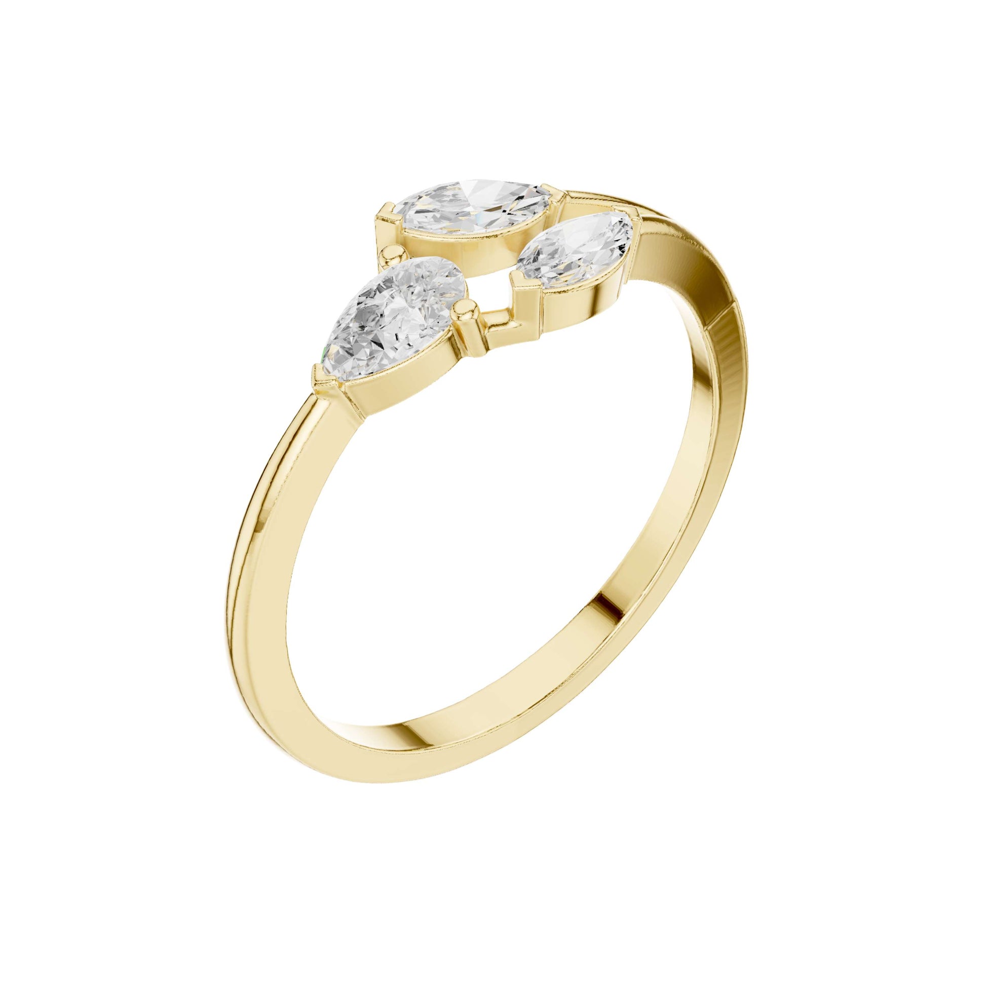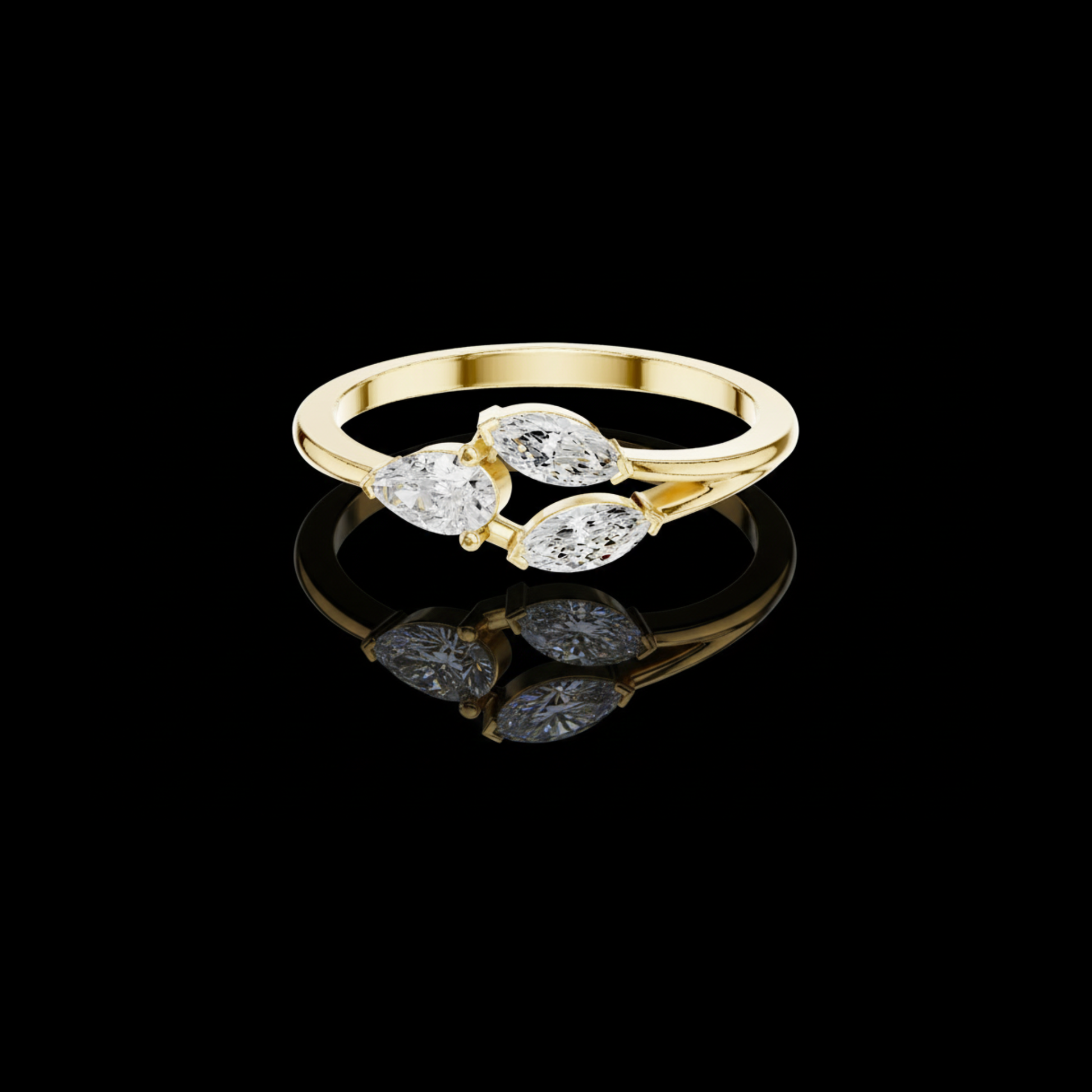 This refined gold ring features a classic pear cut and two dazzling marquise-cut diamonds arranged in a graceful open-band design that feels both modern and timeless. The elongated marquise stones create a flattering, finger-lengthening effect, while the polished gold band adds warmth and sophistication. Perfect worn alone or stacked, this delicate yet eye-catching ring is an effortless expression of elegance, ideal for everyday luxury or marking a meaningful moment by Ivevar.