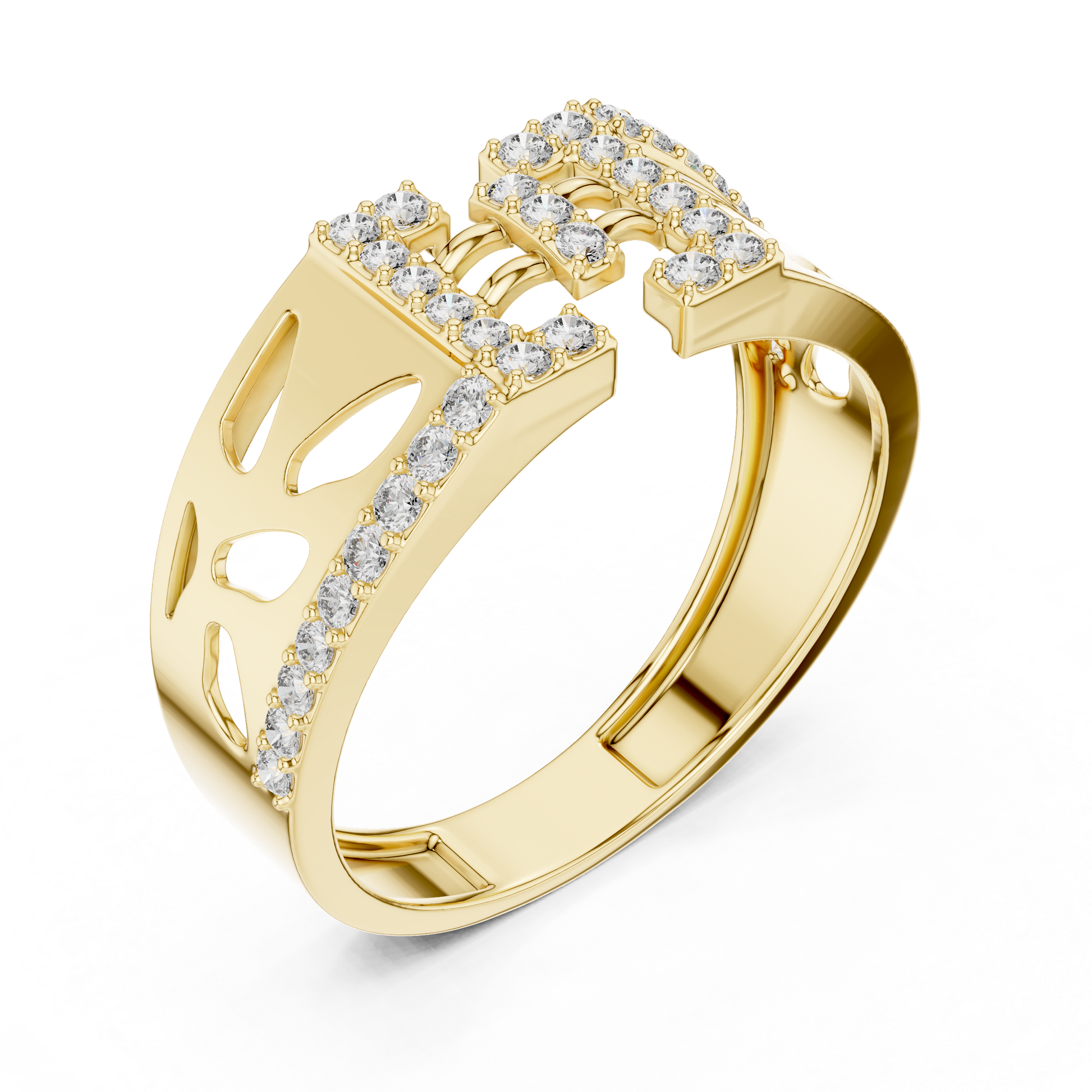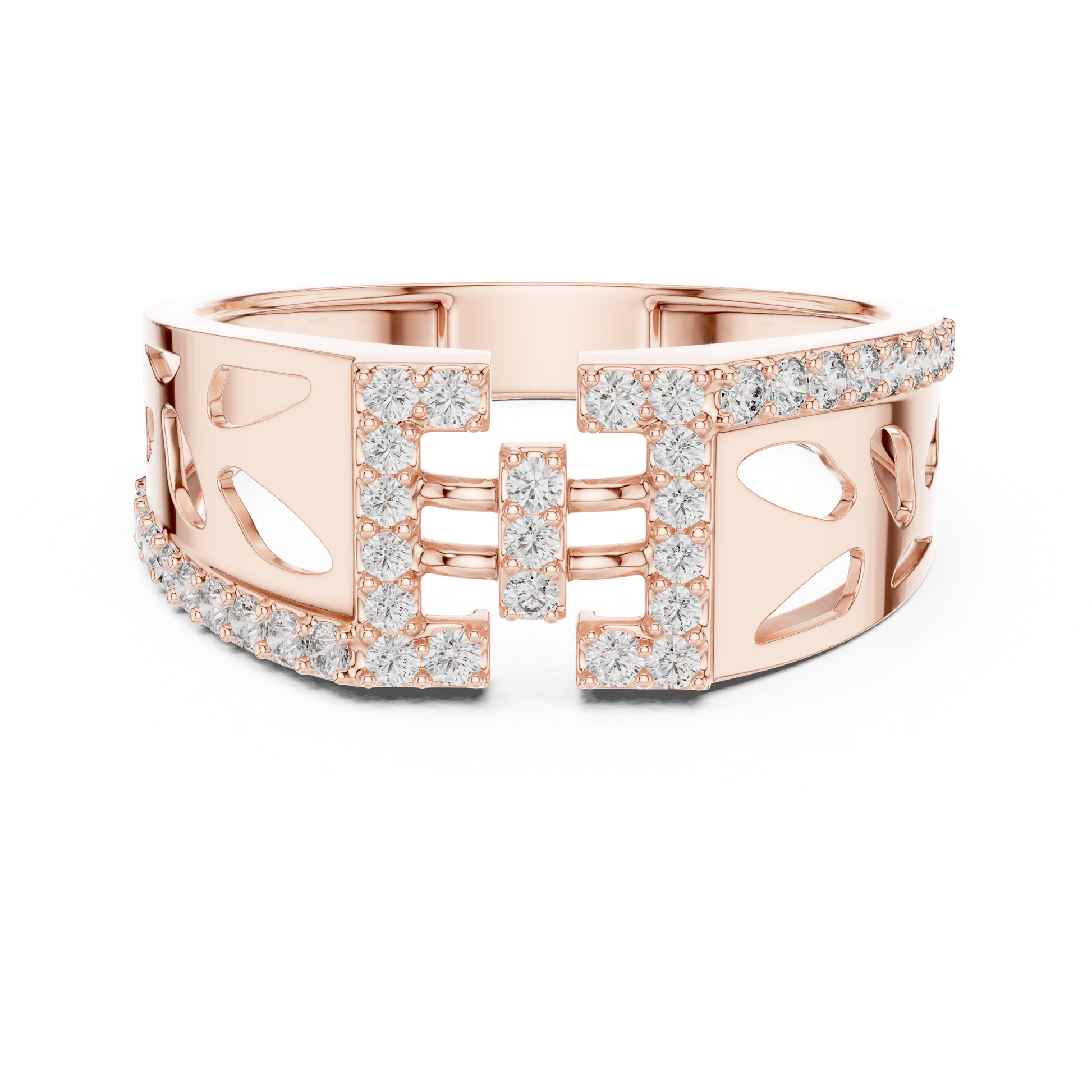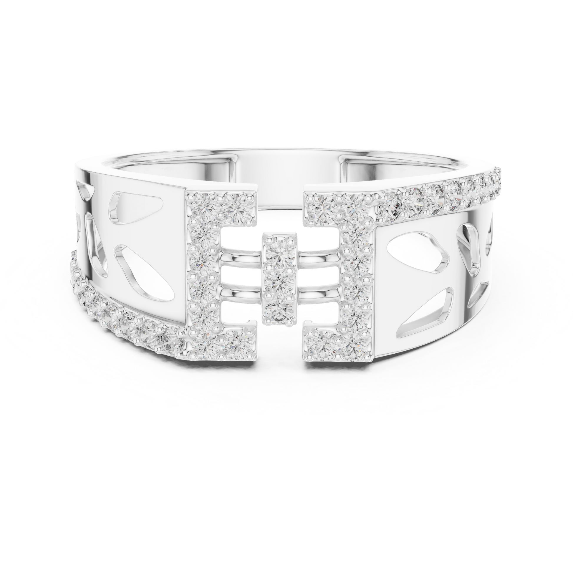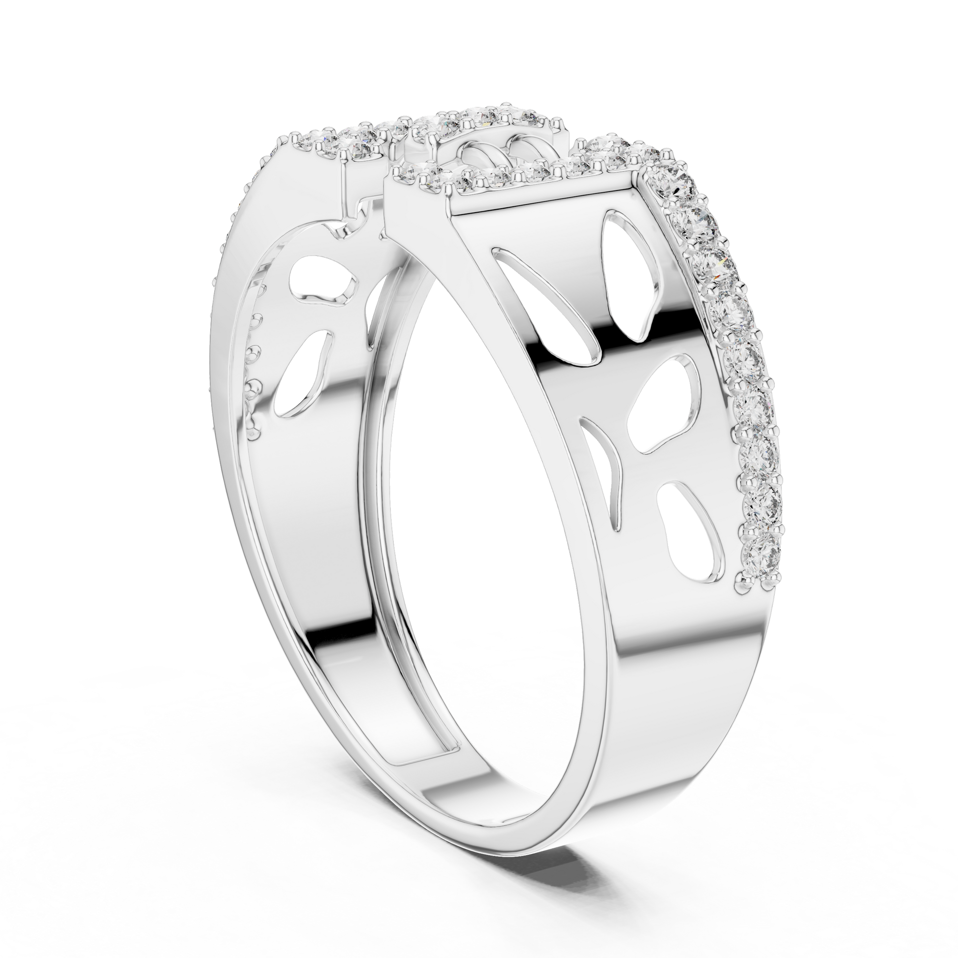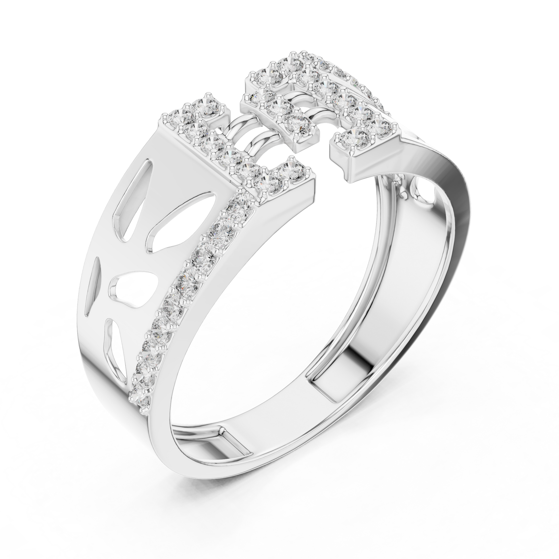 Wide Geometric Cutout Design Diamond Ring