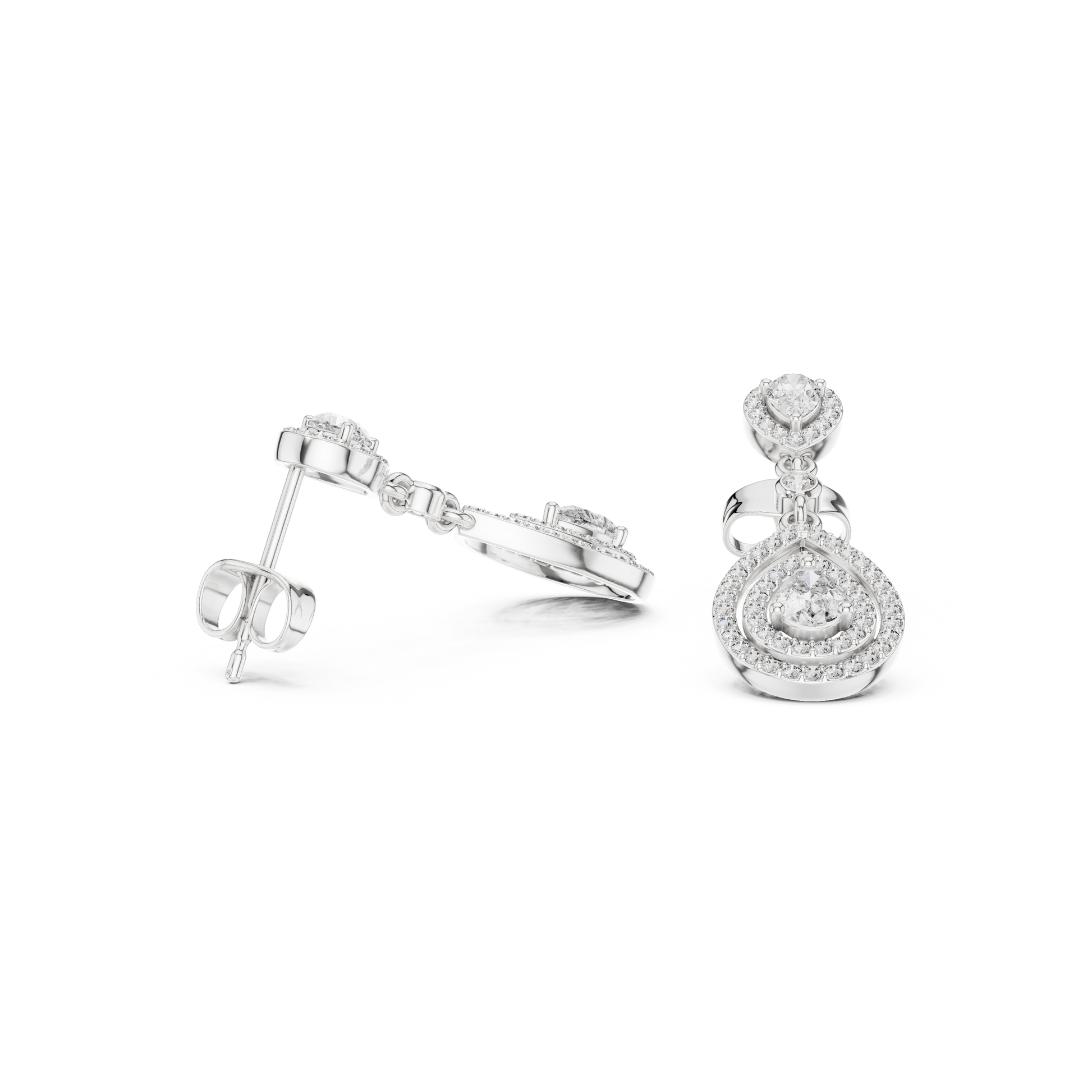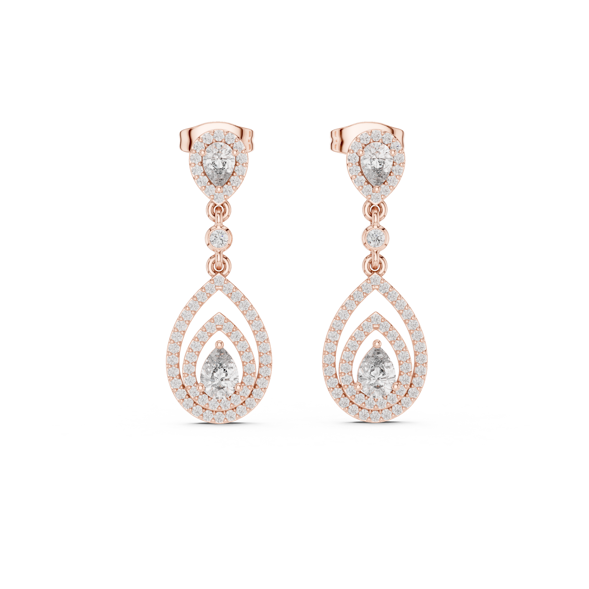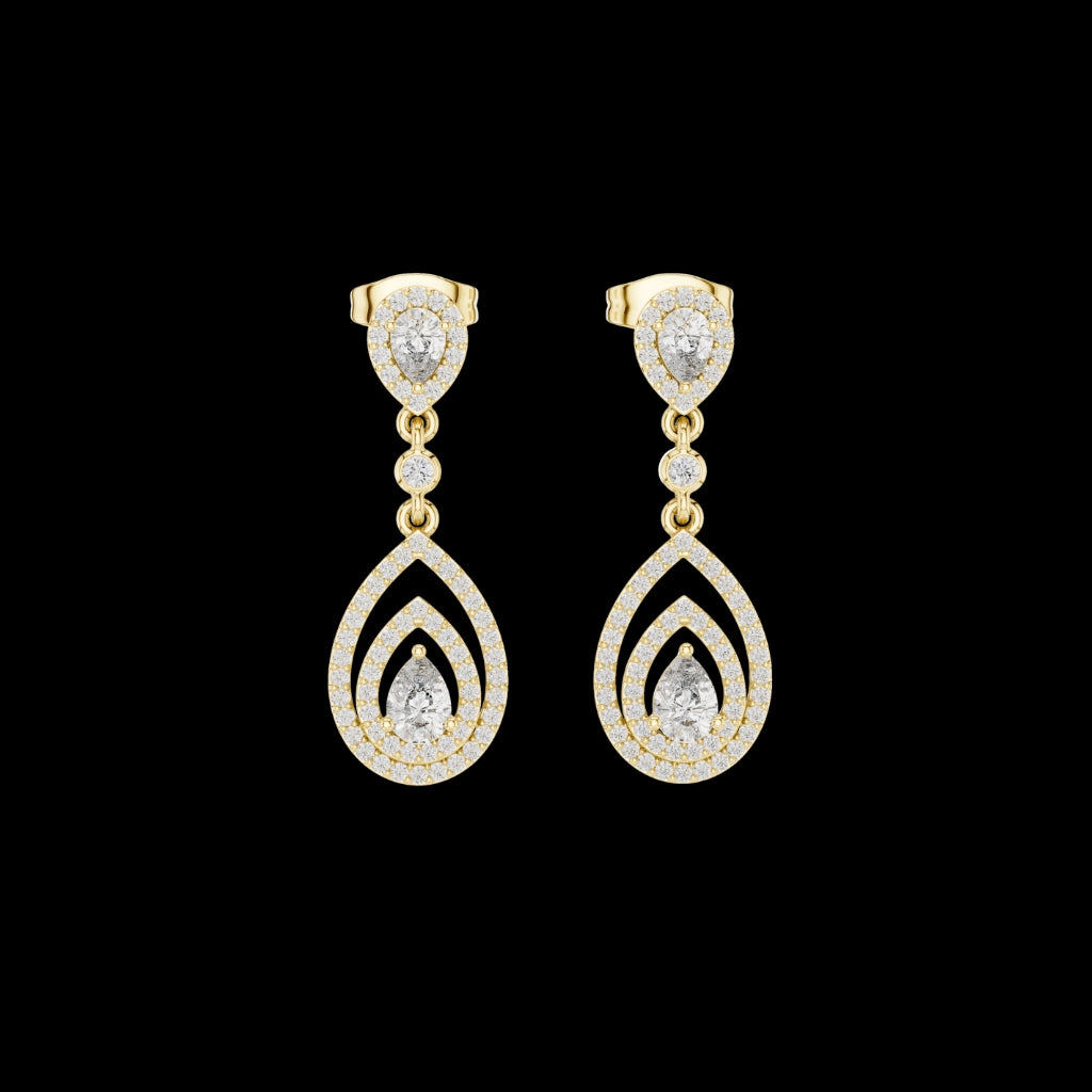 Elevate your jewelry collection with these radiant teardrop halo drop earrings, crafted in lustrous gold for timeless elegance. Featuring a layered pear-shaped design adorned with shimmering accents, these earrings create a graceful drop silhouette that catches light from every angle. The delicate link detailing adds movement and sophistication, making them perfect for weddings, festive occasions, or refined evening wear. Designed to offer brilliance without overpowering, these earrings are an exquisite blend of luxury, femininity, and modern charm—ideal for those who appreciate statement elegance with a classic touch.