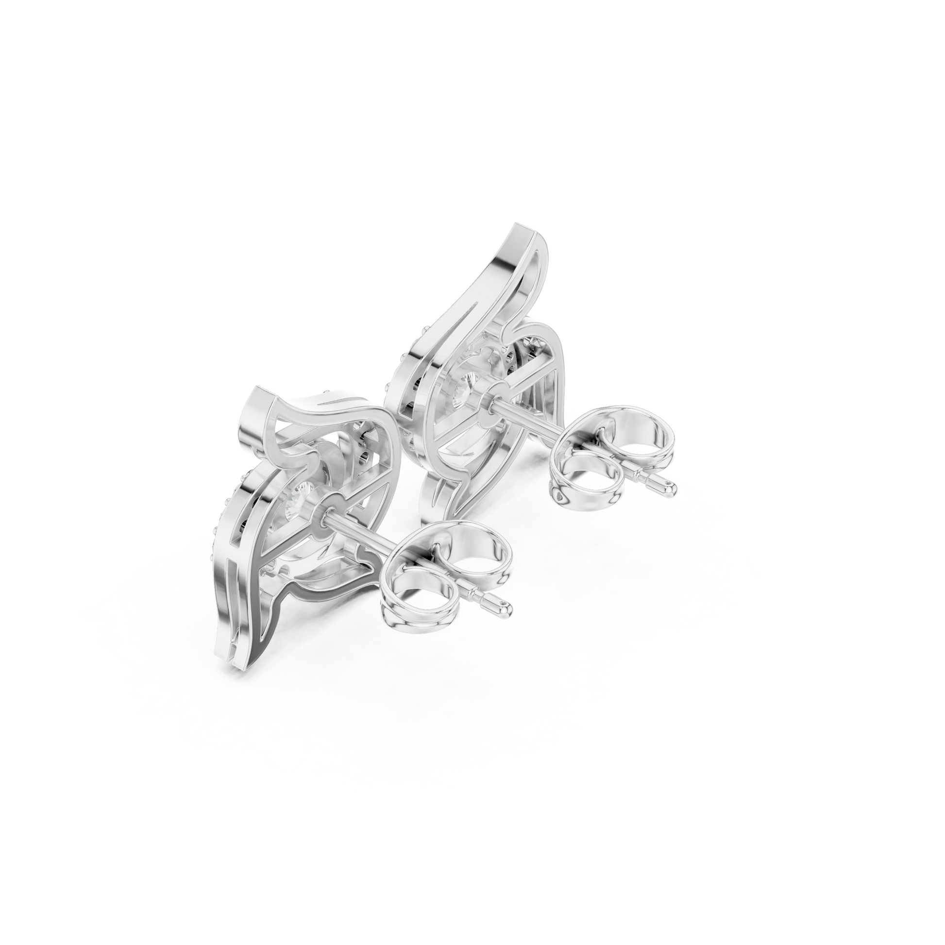 Winged Swirl Diamond Stud Earrings