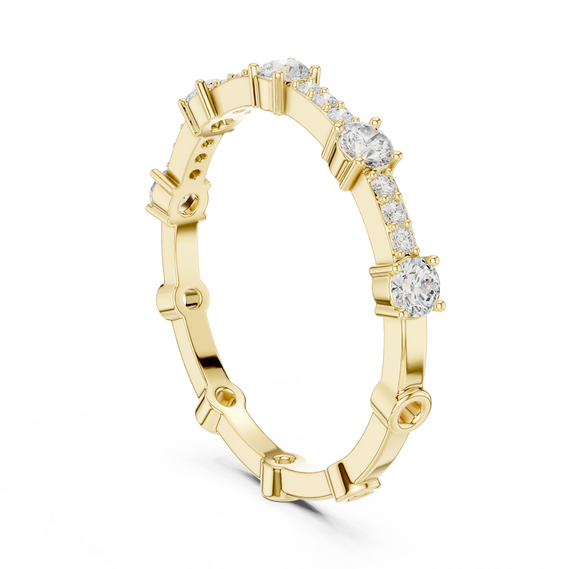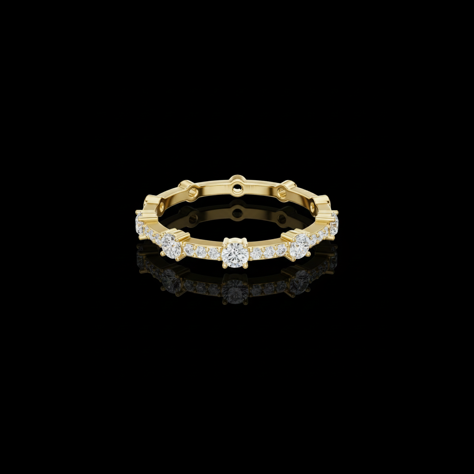 this stunning eternity band showcases a continuous row of round brilliant-cut diamonds set in radiant high-polish gold. The refined open-gallery design enhances brilliance while ensuring comfort for everyday wear. Each diamond is expertly secured to reflect light from every angle, creating a timeless sparkle that symbolizes everlasting love. Designed for modern elegance, this ring is perfect as a wedding band, anniversary ring, or a luxurious stacking piece.