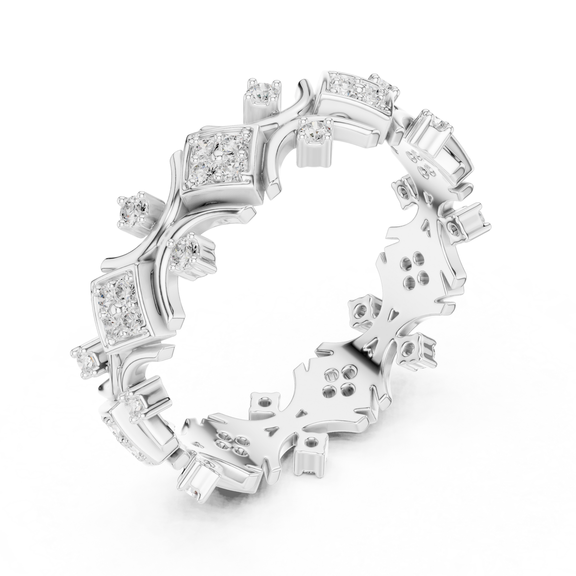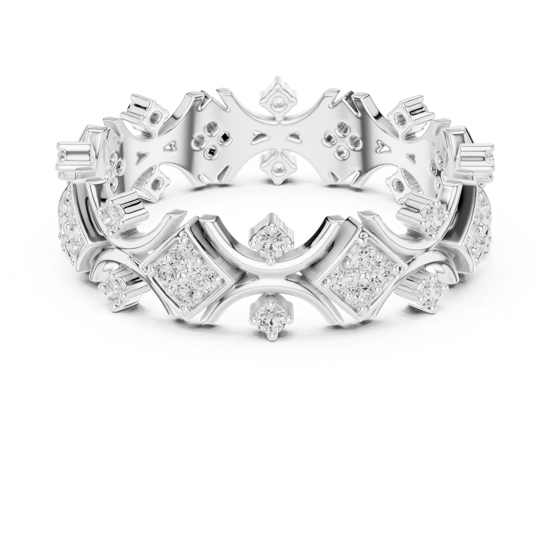 Make a bold royal statement with the Imperial Crown diamond gold band, a masterpiece designed for those who command presence. This exceptional ring features geometric crown-inspired motifs, each framed in high-polish gold and enriched with brilliant round-cut diamonds that radiate unmatched sparkle and depth. Ideal for statement wear, elite gifting, or as a signature collector’s piece,