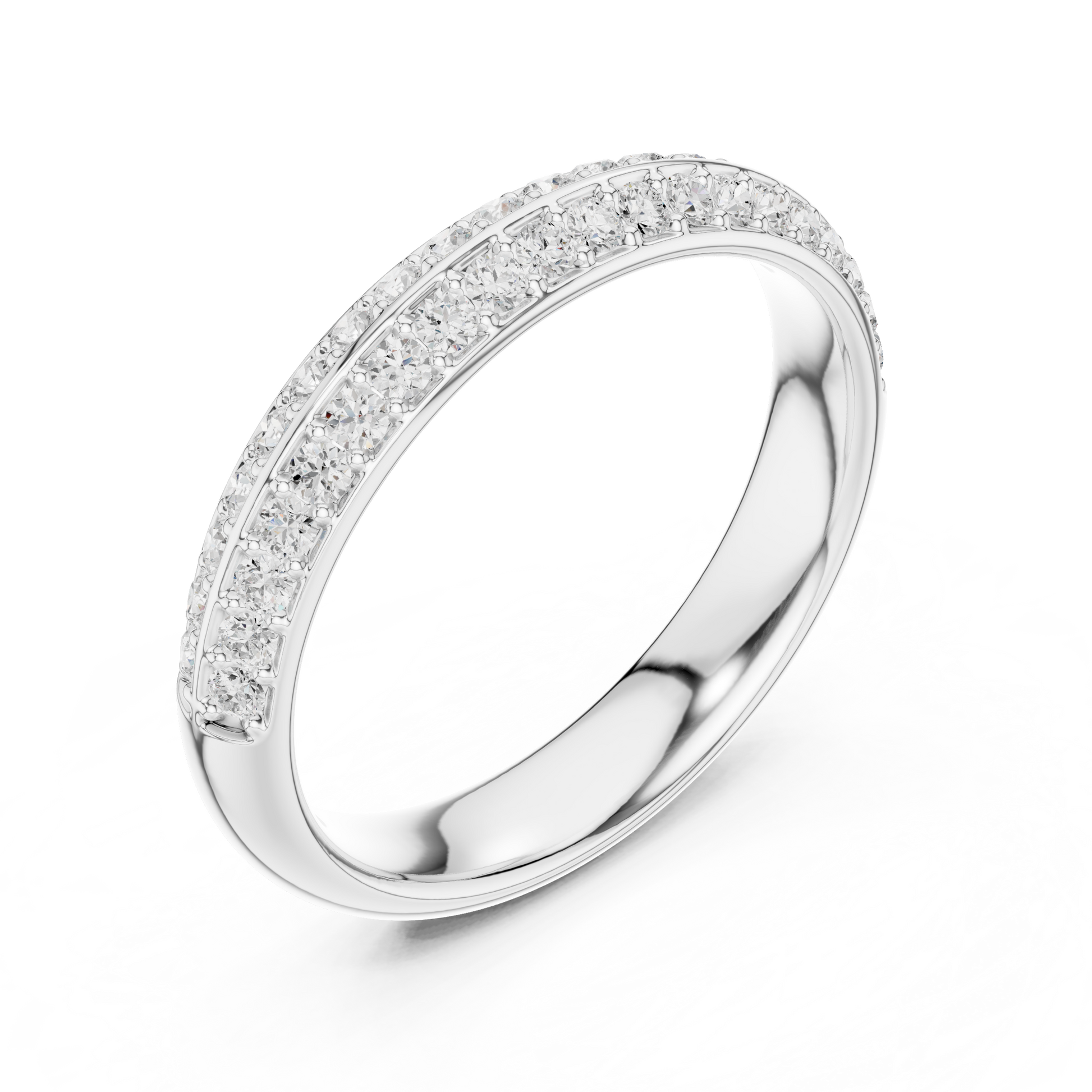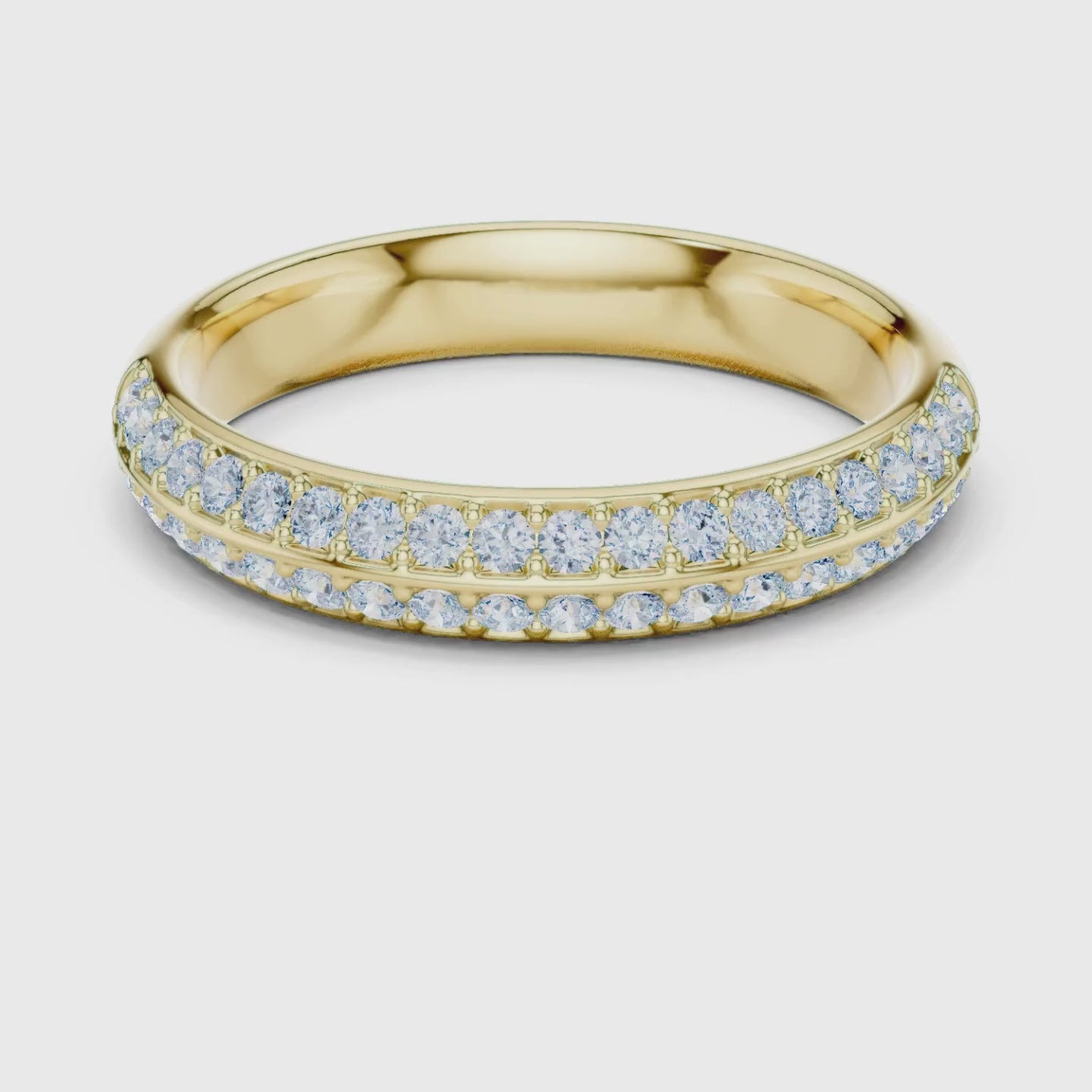 Introducing a timeless creation from Ivevar Luxury, this stunning ring showcases a double-row pave diamond design that radiates brilliance from every angle. Crafted in high-polished gold, the band features meticulously set round stones that create a seamless ribbon of sparkle. The ring’s smooth comfort-fit interior ensures everyday wearability while maintaining its luxurious presence.