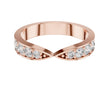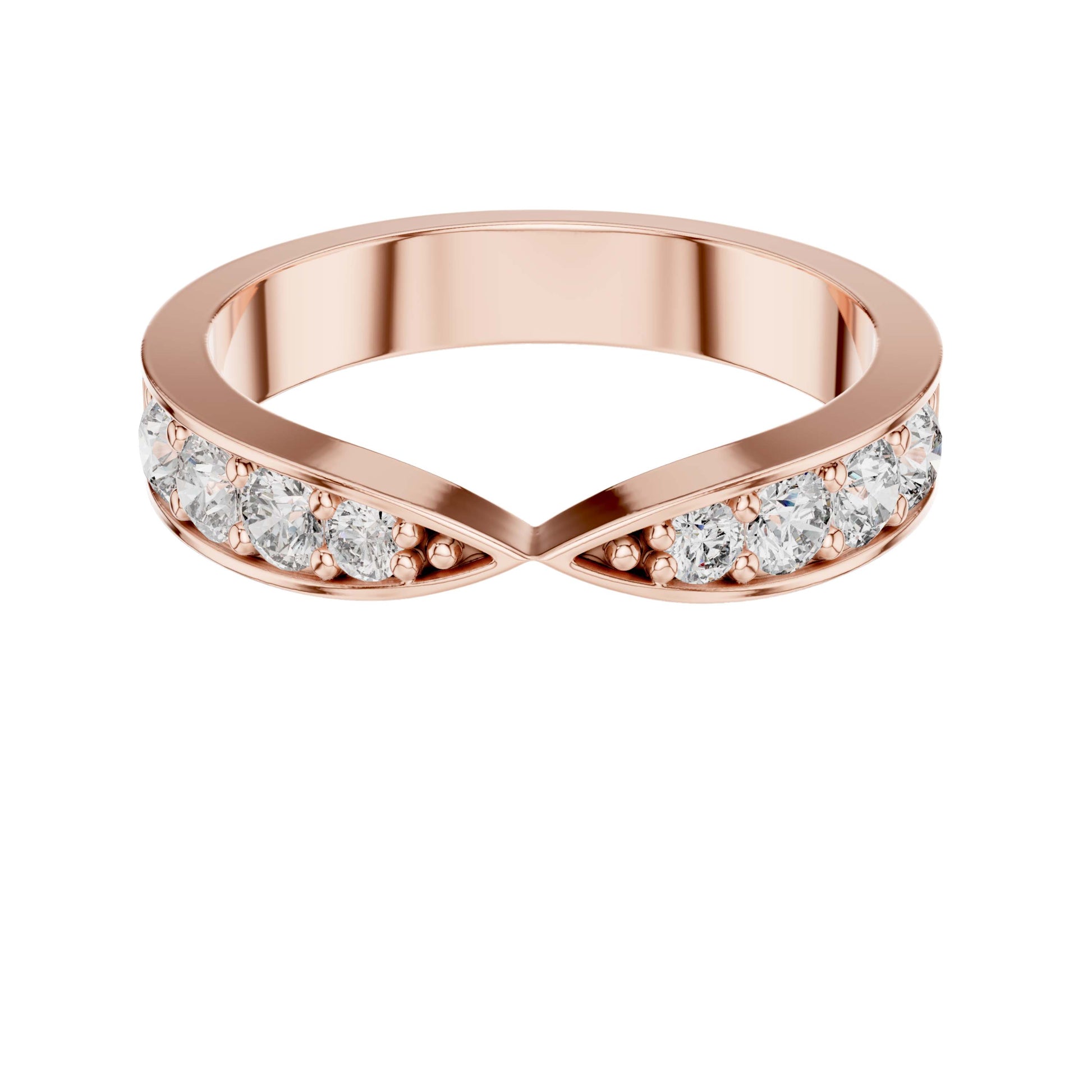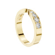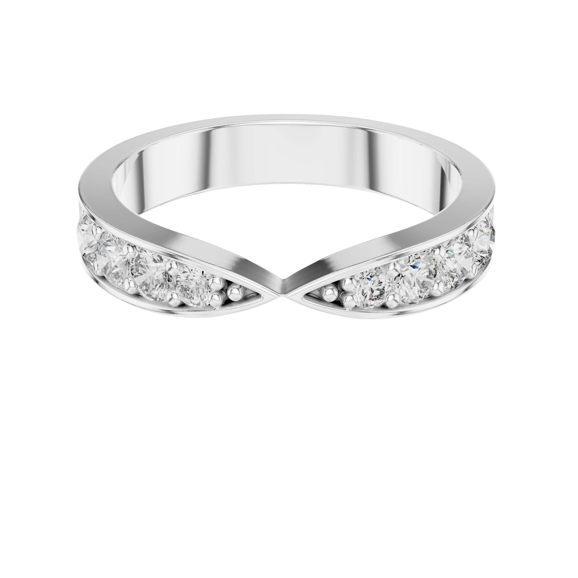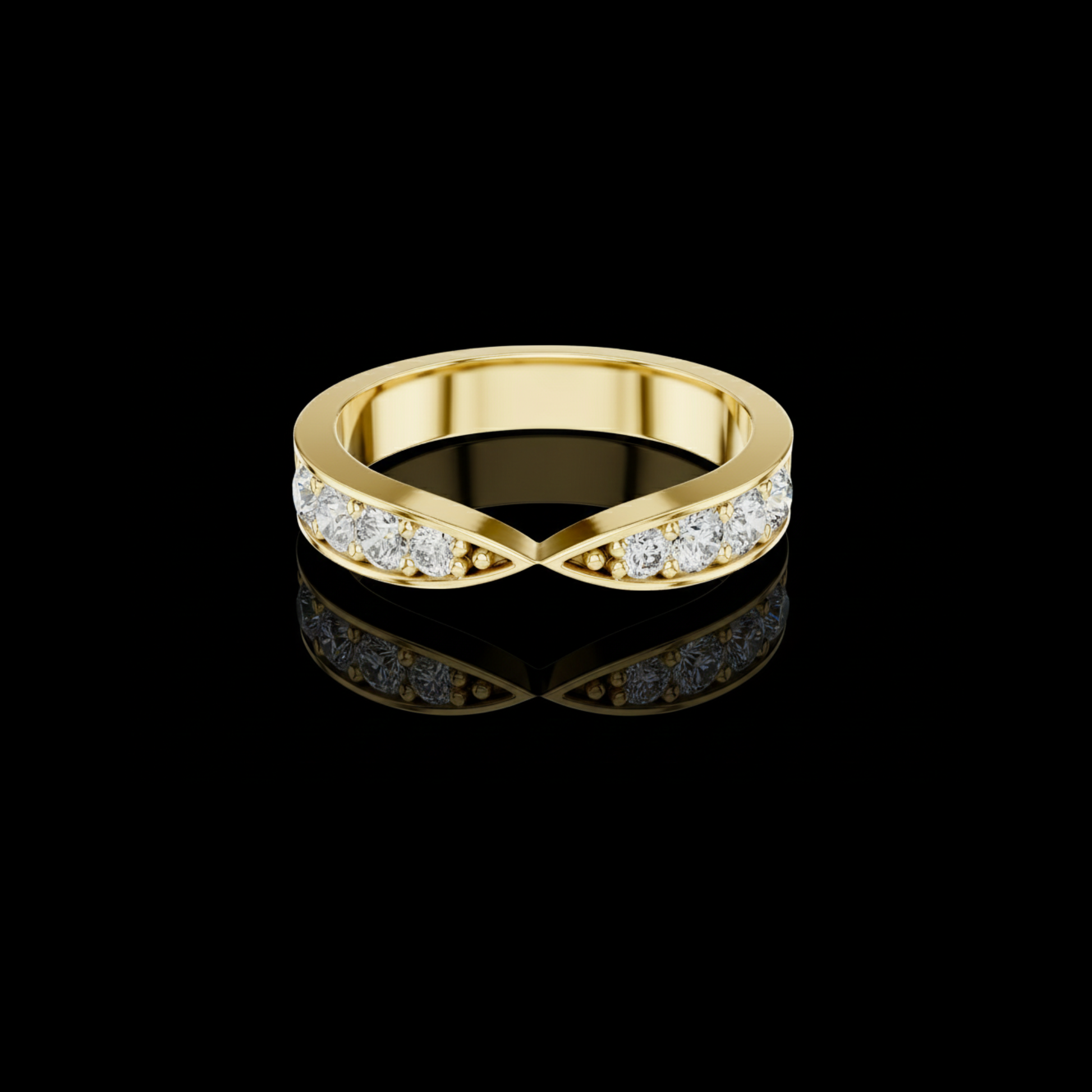 This refined gold chevron band features a sleek V-shaped silhouette accented with a row of brilliant diamonds nestled along each arm of the point. The polished gold edges frame the stones beautifully, creating a modern balance of structure and sparkle. Elegant yet contemporary, this versatile ring is perfect as a wedding band, stacking ring, or a minimalist statement piece, offering timeless sophistication with a subtle geometric edge.