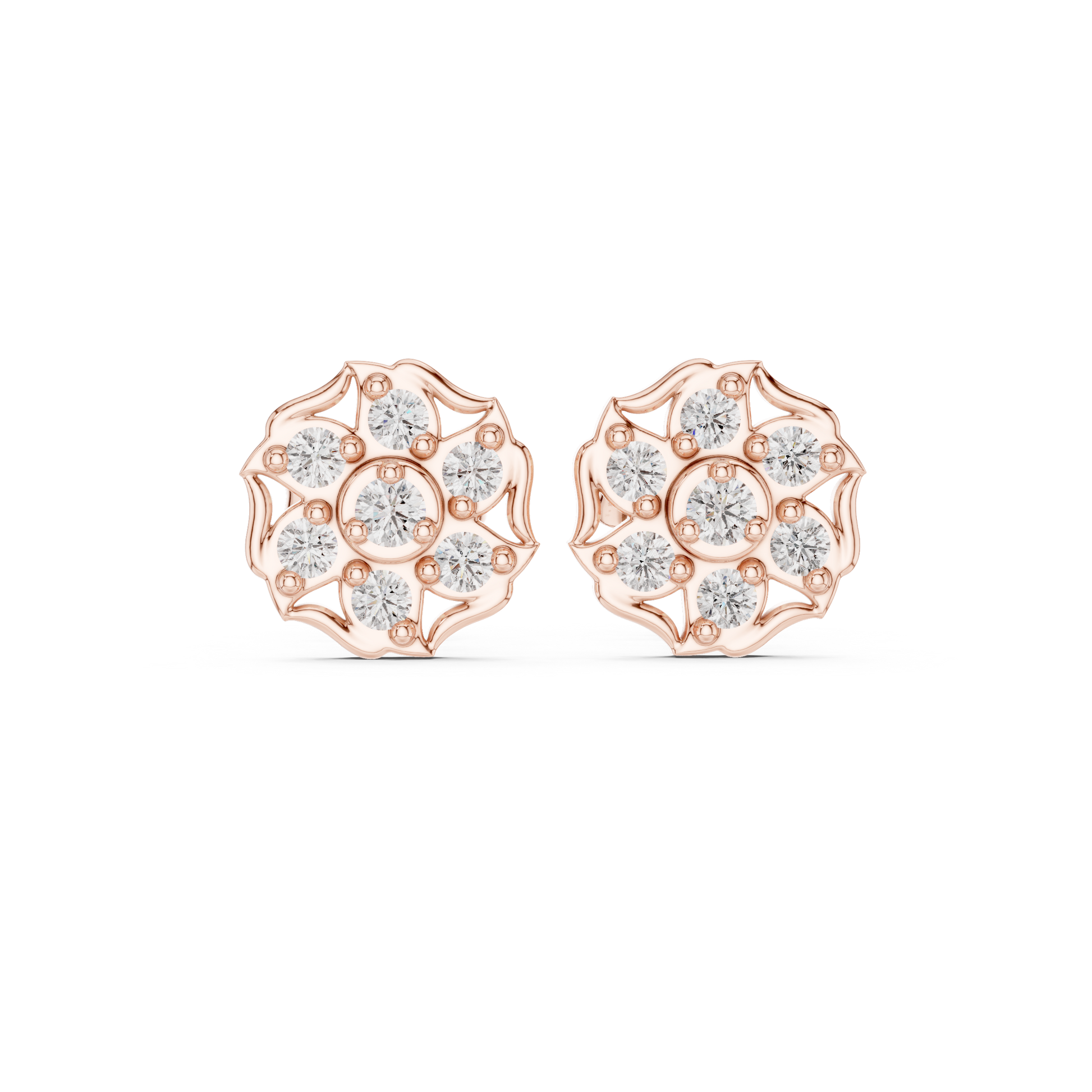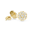 Inspired by delicate floral symmetry, these round cluster stud earrings showcase a graceful bloom design crafted in radiant gold. Multiple brilliant round stones are arranged in a petal-like formation around a luminous center, creating balanced sparkle and refined elegance. The openwork gold detailing enhances light reflection while maintaining a lightweight, comfortable fit. Perfect for everyday wear, gifting, or special celebrations, these earrings blend timeless floral beauty with modern sophistication—an essential addition to any jewelry collection.