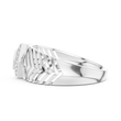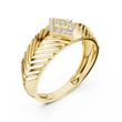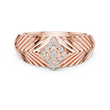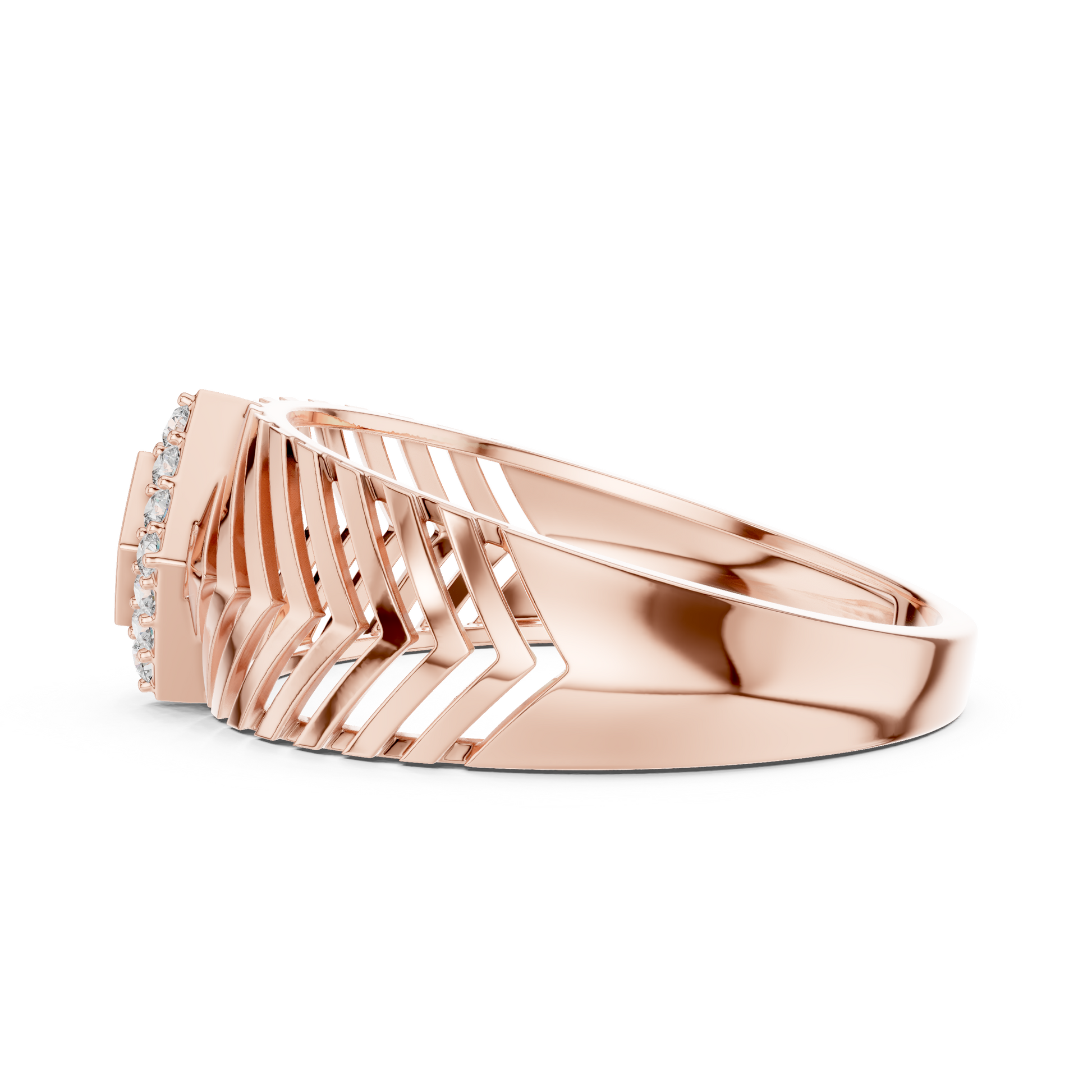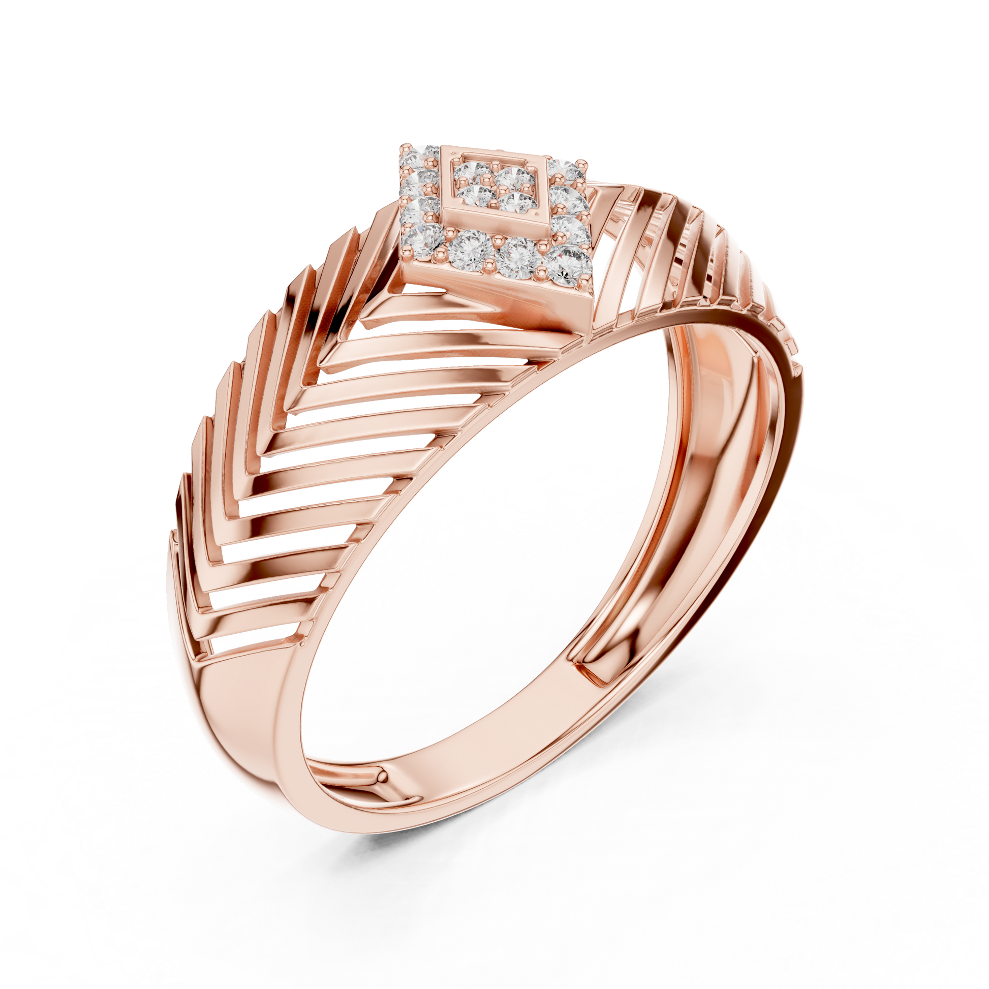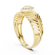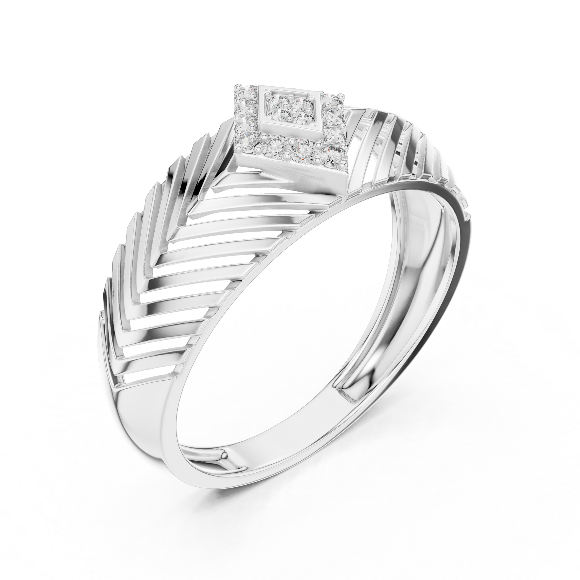 At Ivevar Luxury, this striking ring is designed for those who appreciate bold craftsmanship and refined elegance. The ring showcases a distinctive chevron-patterned gold band, layered with precision-cut lines that create depth and a powerful architectural presence. A square diamond cluster centerpiece anchors the design, surrounded by brilliant round diamonds that enhance sparkle from every angle.
