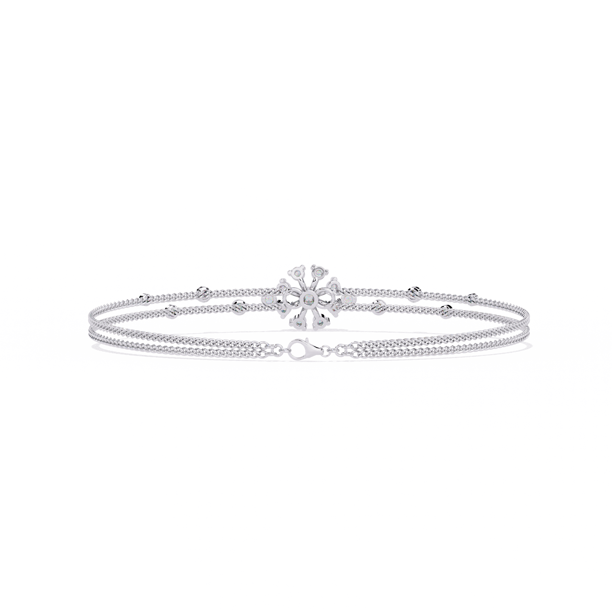 0.46 TCW Elegant Moissanite Double Band Bracelet Adorned with Sparkling Round Diamonds and Floral Motif