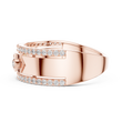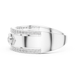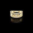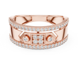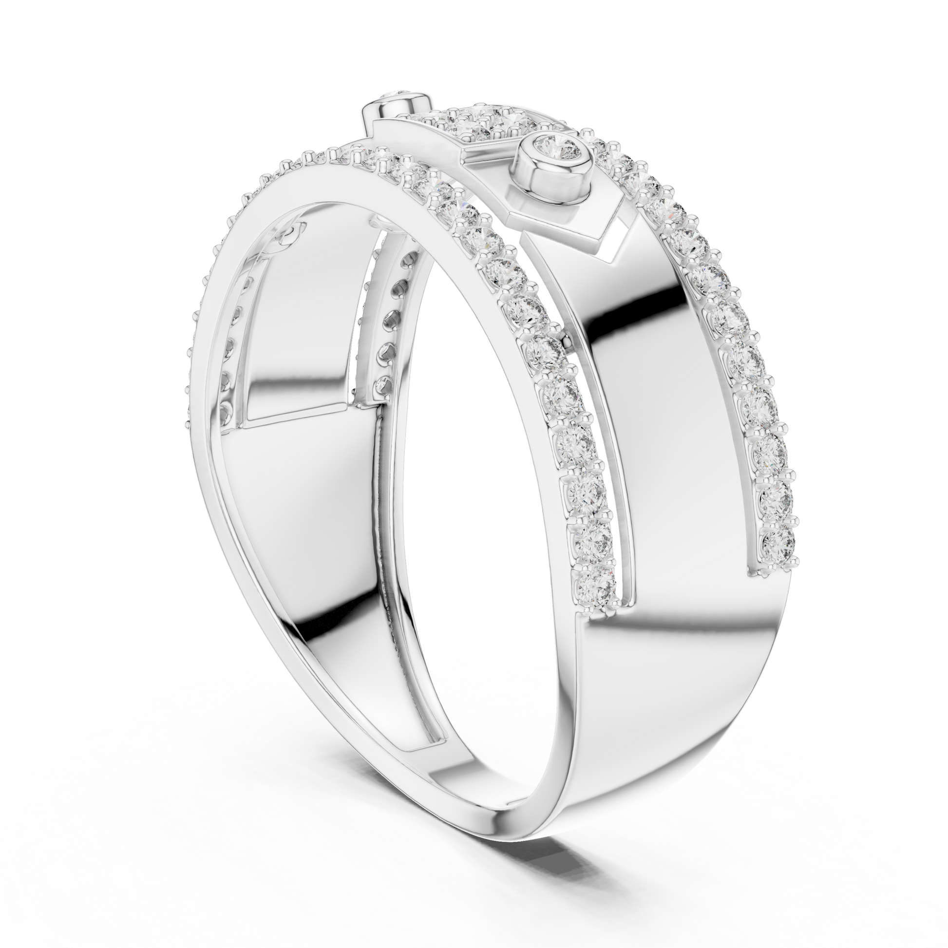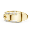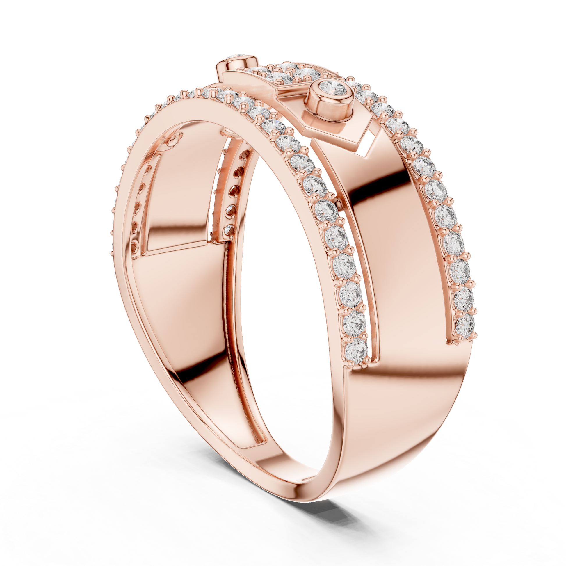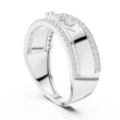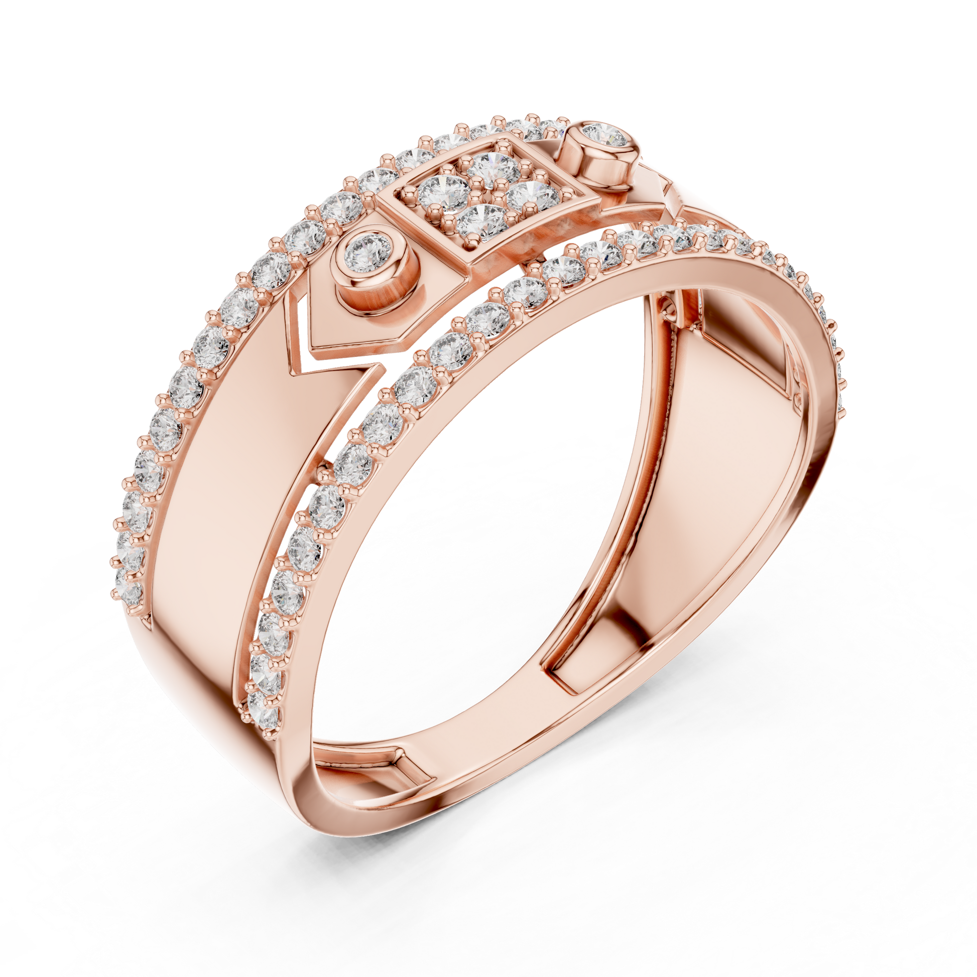 This bold and architectural design from IVEVAR LUXURY features a striking wide gold band accented with multiple rows of shimmering pavé-set diamonds. The centerpiece showcases a refined square diamond cluster framed by geometric detailing, complemented by bezel-set round diamonds on each side for balanced brilliance.