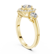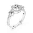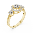 The Octavia Halo Diamond Ring is a striking blend of architectural elegance and timeless luxury. At its heart lies a radiant round-cut diamond, framed by an octagonal halo of shimmering pavé diamonds that adds depth, dimension, and exceptional brilliance.Flanked by beautifully matched side diamonds, the design creates a balanced silhouette that feels both bold and refined. The high band enhances warmth and sophistication while ensuring lasting comfort and durability.
