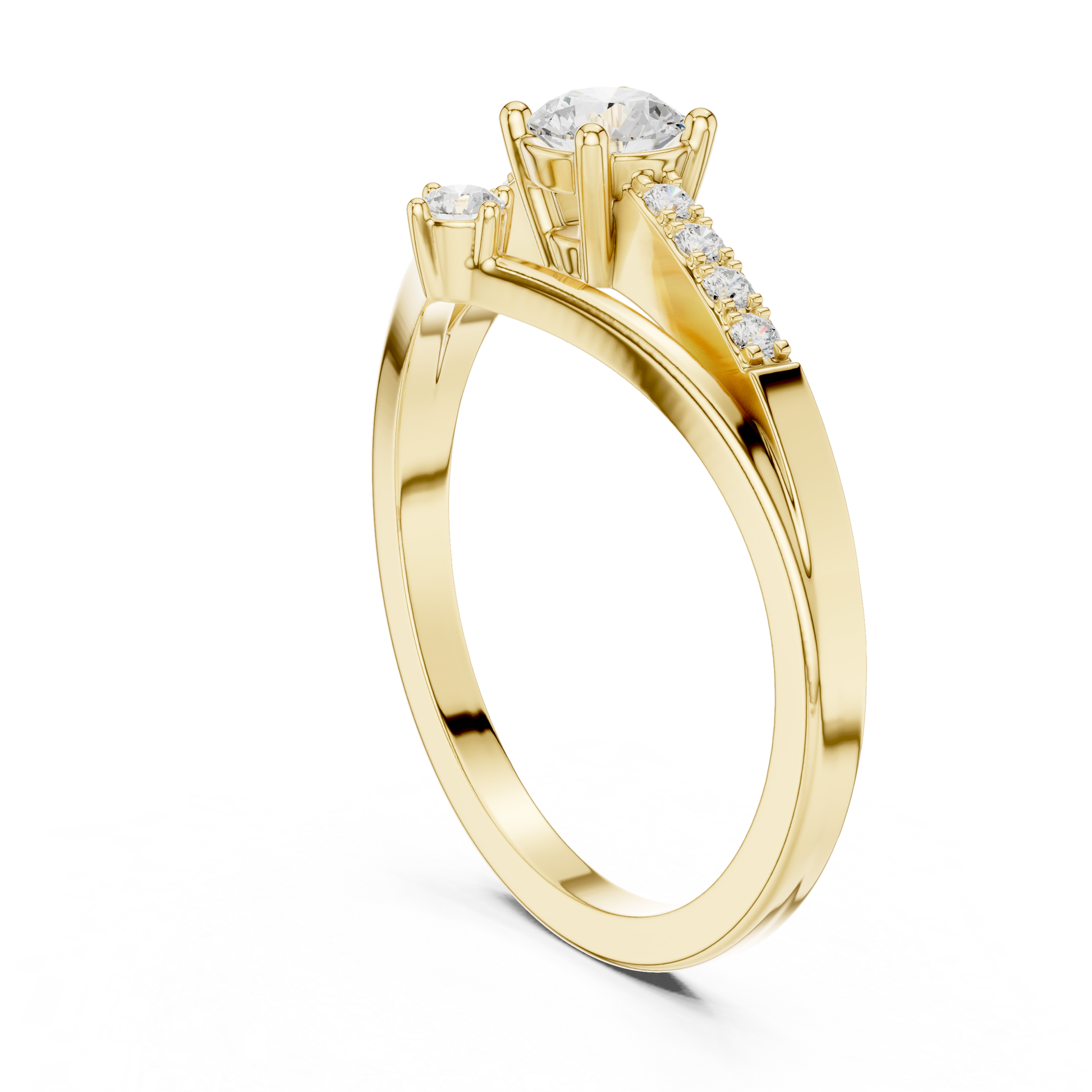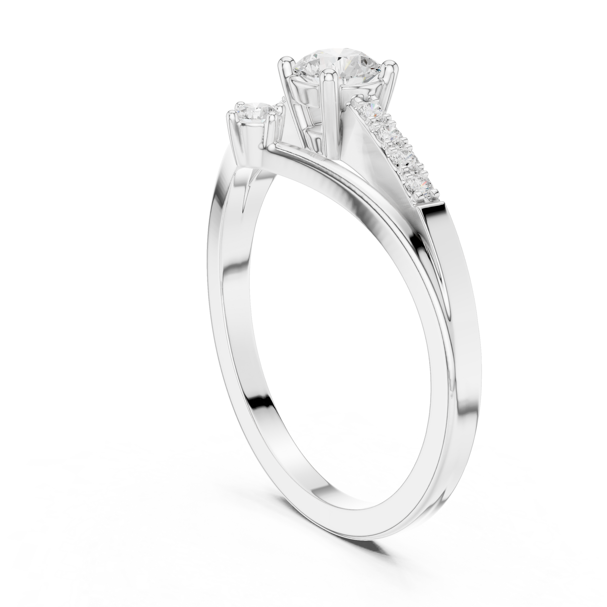 Embrace contemporary elegance with this beautifully designed diamond ring, crafted to stand out with its distinctive v-shaped structure. The ring highlights a round brilliant center diamond, perfectly framed by delicate pavé diamonds along the band, creating a balanced harmony of brilliance and sophistication.The sleek geometric form enhances the diamond’s sparkle while offering a flattering and modern profile on the finger.