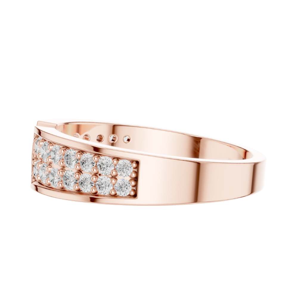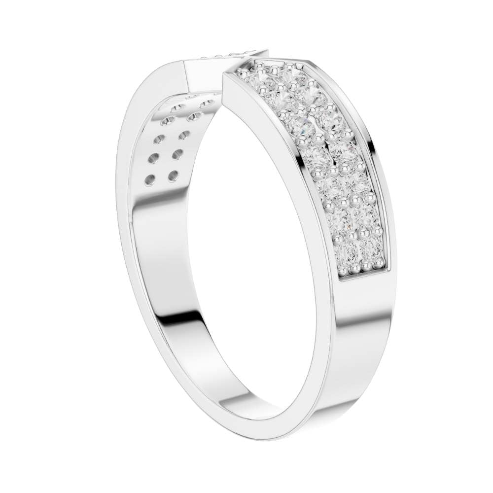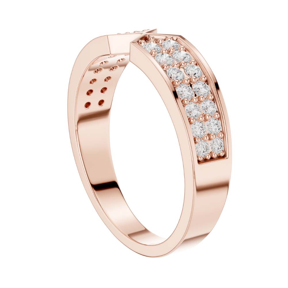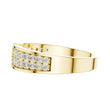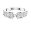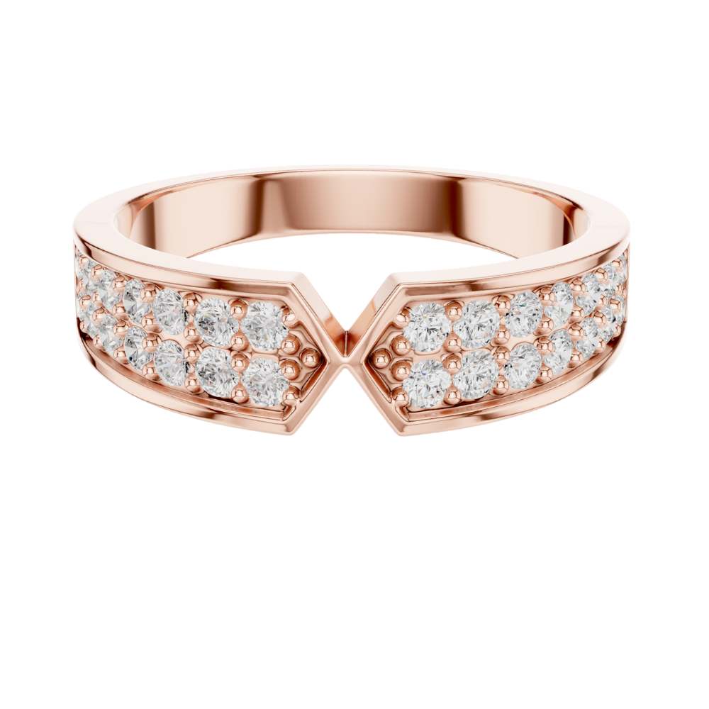 This sleek and contemporary ring showcases a striking chevron design crafted in rich gold, accentuated by rows of sparkling pave-set round diamonds. The open V-shaped center creates a bold, geometric focal point that adds a modern edge to the classic diamond band. With its clean lines and brilliant shimmer, this ring is a versatile statement piece that effortlessly complements both everyday wear and special occasions, embodying a perfect blend of sophistication and style by Ivevar.