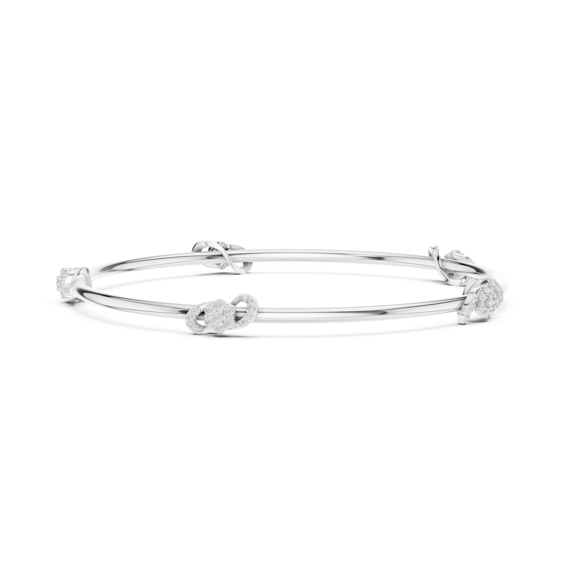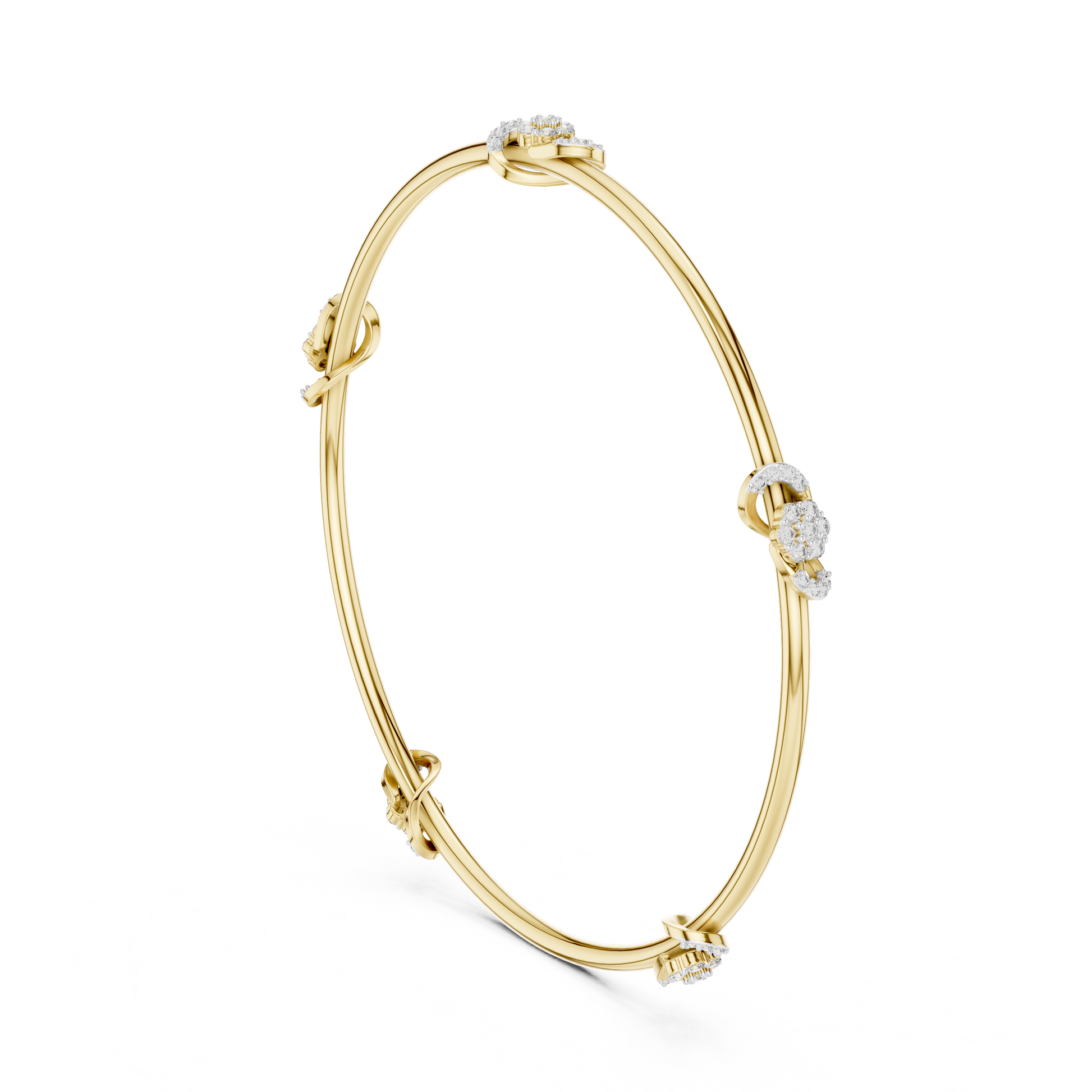 This elegant gold bangle bracelet showcases a refined floral diamond motif that blends classic charm with modern sophistication. Crafted with a smooth, polished gold band, the design is highlighted by delicately clustered diamonds forming graceful flower accents, adding sparkle without overwhelming the look. Its slim, structured silhouette makes it perfect for both everyday elegance and special occasions, whether worn alone as a statement piece or layered with other bangles for a luxurious finish.