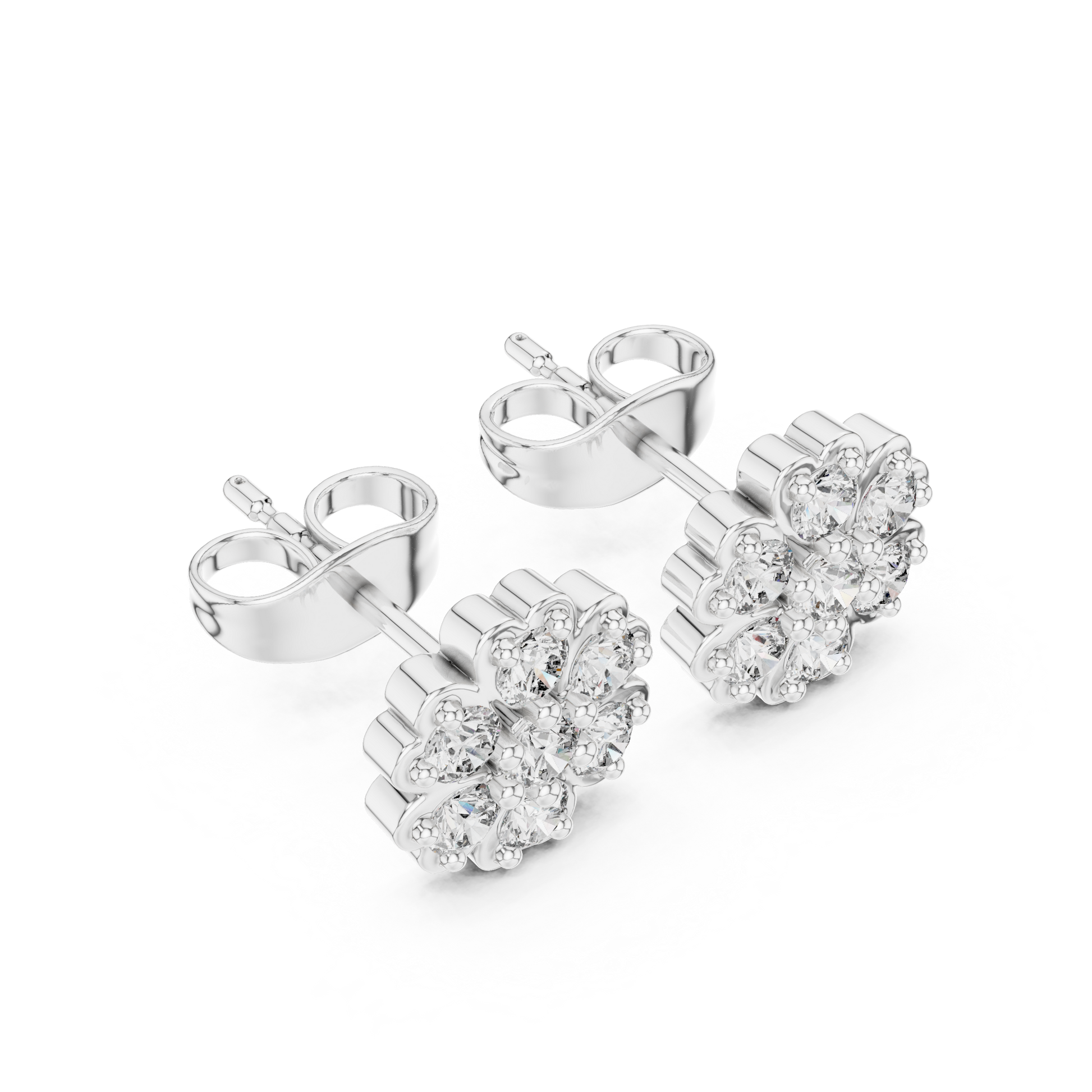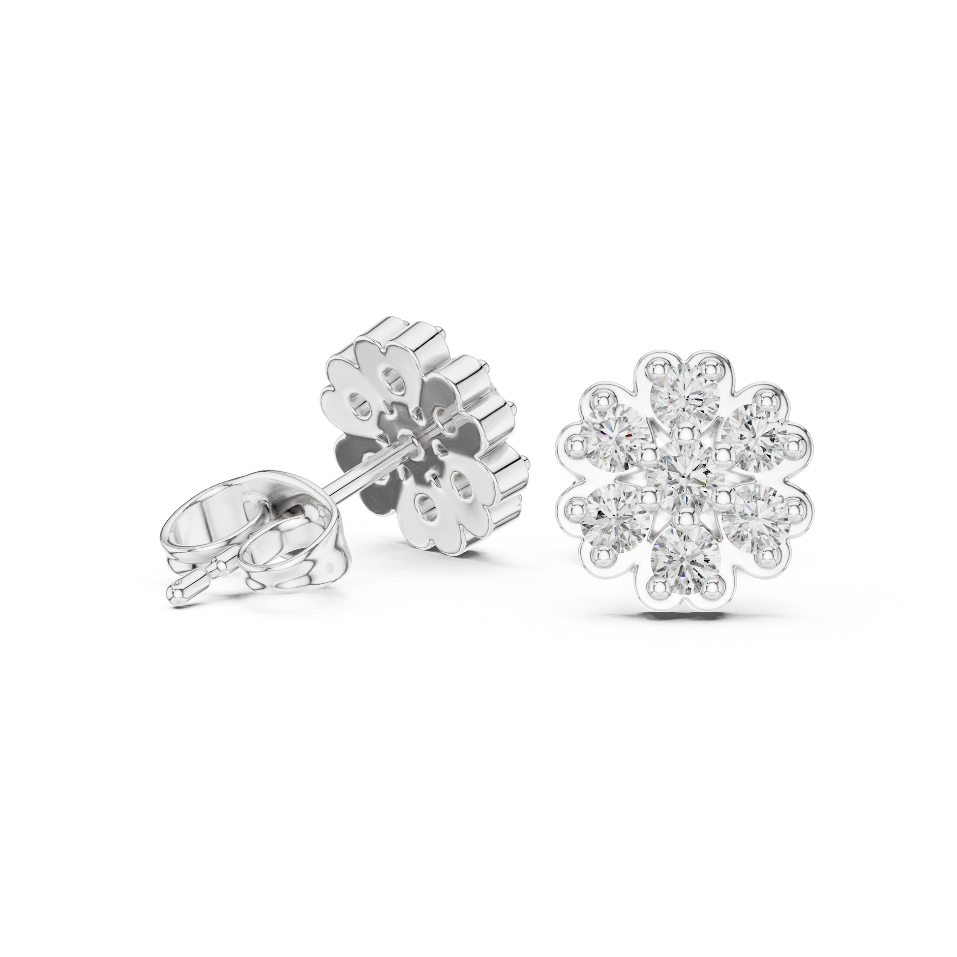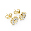 These classic diamond flower cluster stud earrings are crafted in polished gold and designed to radiate timeless beauty. Featuring multiple round brilliant diamonds arranged in a floral cluster, the scalloped gold frame enhances depth and sparkle while maintaining a soft, elegant silhouette. Perfect for everyday luxury or special occasions, these earrings offer a refined balance of traditional charm and modern craftsmanship, making them a versatile addition to any fine jewelry collection.