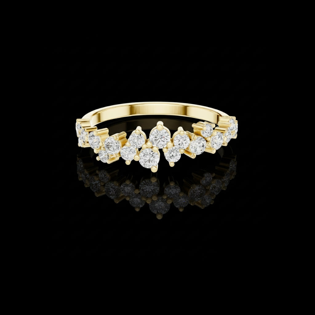 This Round Cut Diamond Ring features a stunning row of brilliant-cut diamonds gracefully arranged in a crown-inspired silhouette. Crafted in premium gold, the ring offers a perfect blend of luxury, elegance, and timeless sparkle. Each diamond is set to maximize brilliance, making it ideal for daily wear or special occasions. A signature piece from Ivevar Luxury, designed for women who love refined sparkle and modern sophistication.