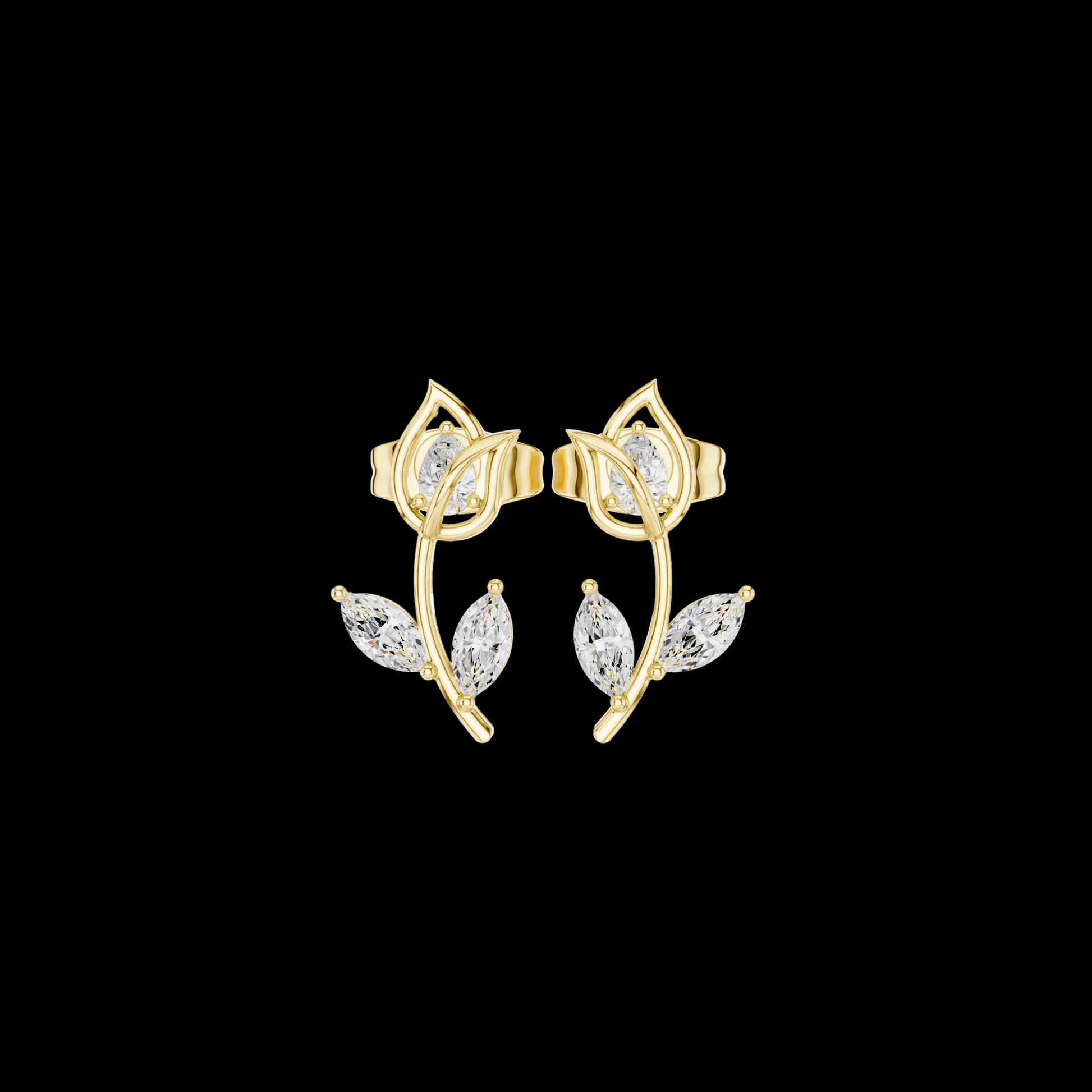 Embrace timeless beauty with these artfully designed diamond leaf stud earrings, crafted in and adorned with marquise-cut diamonds that echo the natural shape of delicate leaves. The sculpted gold curves create fluid movement, while the diamonds add radiant brilliance and refined detail. Perfect for romantic styling, everyday elegance, or special occasions, these luxurious diamond studs blend organic inspiration with fine craftsmanship. Their graceful silhouette and shimmering finish make them a standout piece that reflects feminine charm, sophistication, and enduring style.