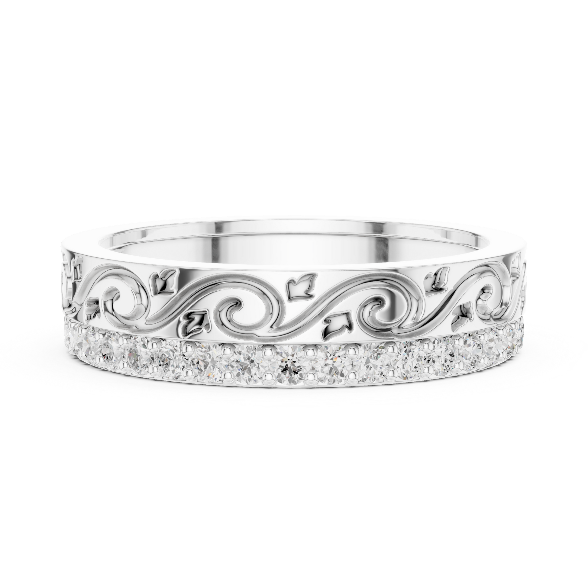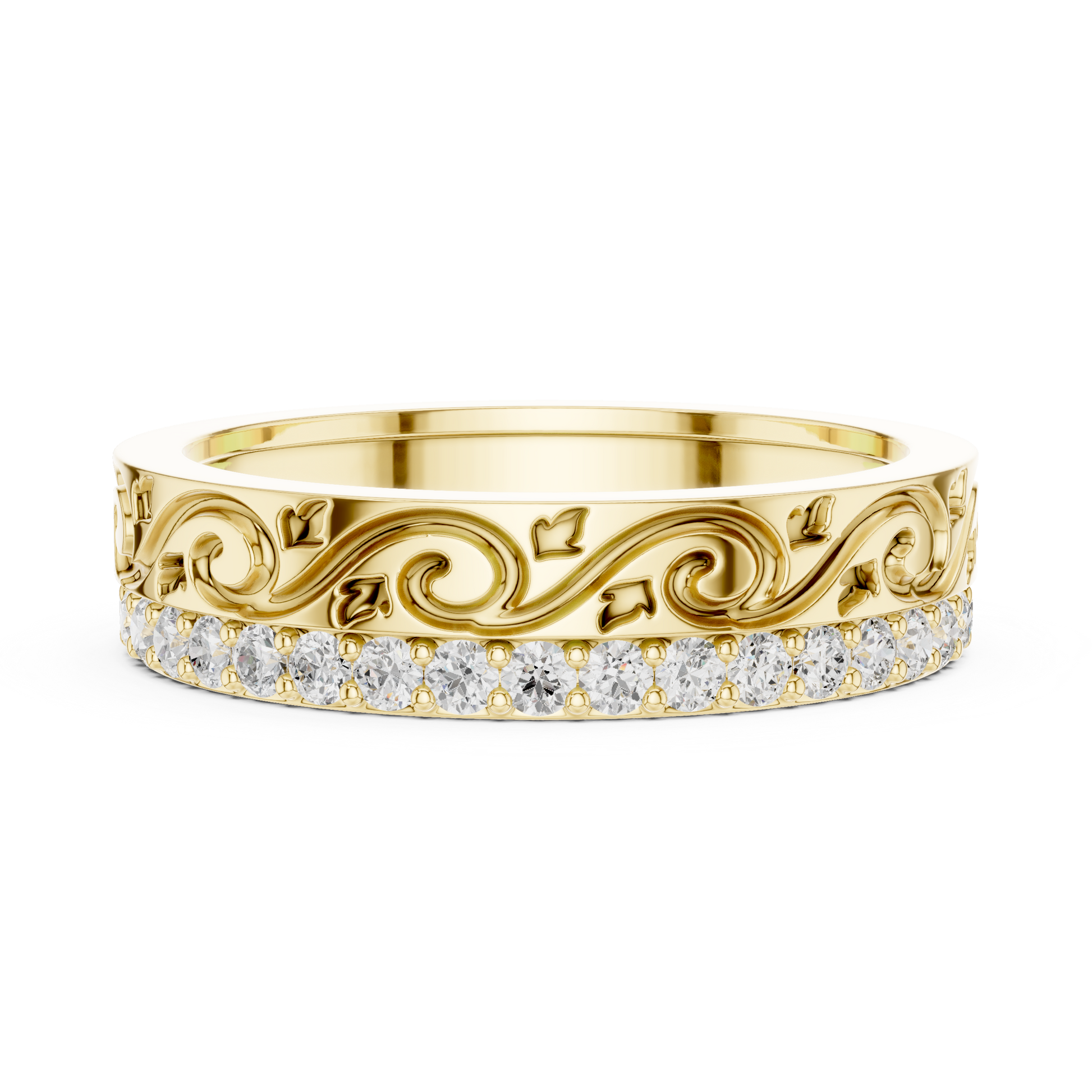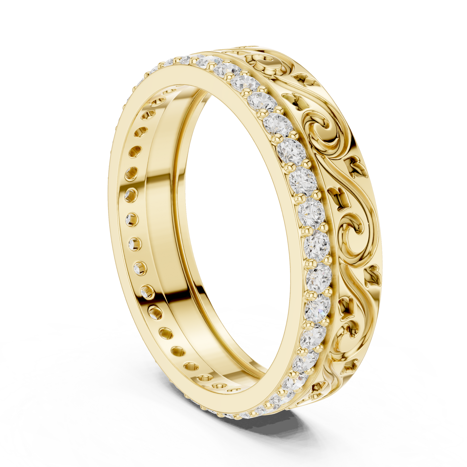 Discover timeless elegance with this luxury engraved gold diamond band, featuring exquisite ornate scroll engravings paired with a dazzling pavé row of round brilliant diamonds. Crafted in high-polish gold, this ring beautifully balances classic artistry with modern diamond brilliance. this band is perfect for weddings, anniversaries, daily luxury wear, or as a refined statement ring.