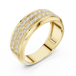 Crafted for those who appreciate refined craftsmanship and everlasting beauty, this stunning ring features two perfectly aligned rows of radiant diamonds set into a rich, band. Each stone is meticulously placed to maximize brilliance, symmetry, and sparkle, creating a captivating display from every angle.The smooth gold edges provide a bold yet balanced silhouette, making this band ideal as a statement piece, wedding band, or anniversary ring.