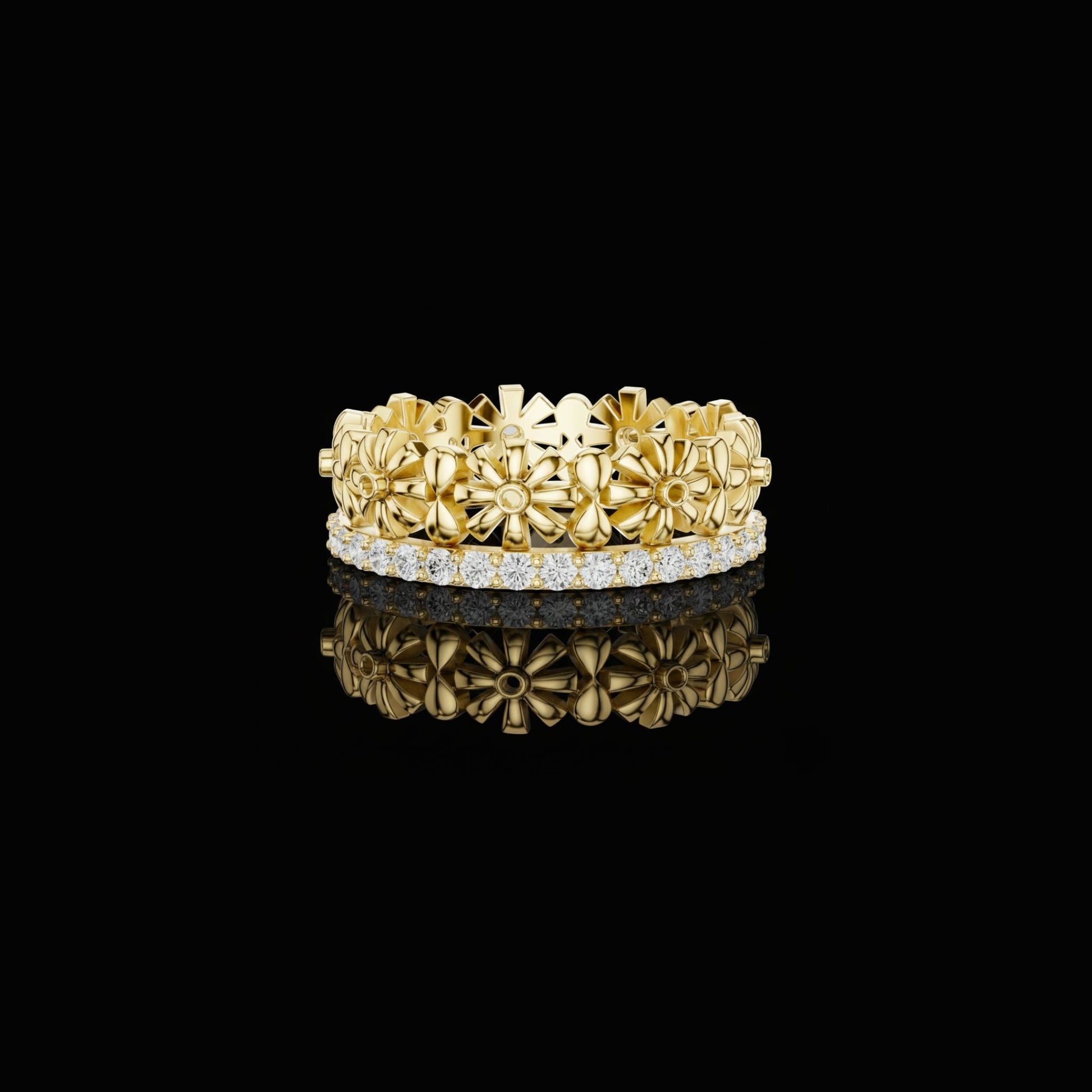 Experience timeless elegance with this Royal Diamond Lattice Gold Band, masterfully crafted in gold and adorned with brilliant round-cut diamonds. The striking double-row diamond design paired with an intricate lattice pattern creates a bold yet refined statement, reflecting superior craftsmanship and modern luxury. Designed for those who appreciate high-end fine jewelry, this ring delivers exceptional sparkle, durability, and sophistication, making it perfect for anniversaries, special occasions, or everyday luxury wear. A true symbol of power, prestige, and elite style, exclusively by Ivevar Luxury.