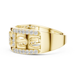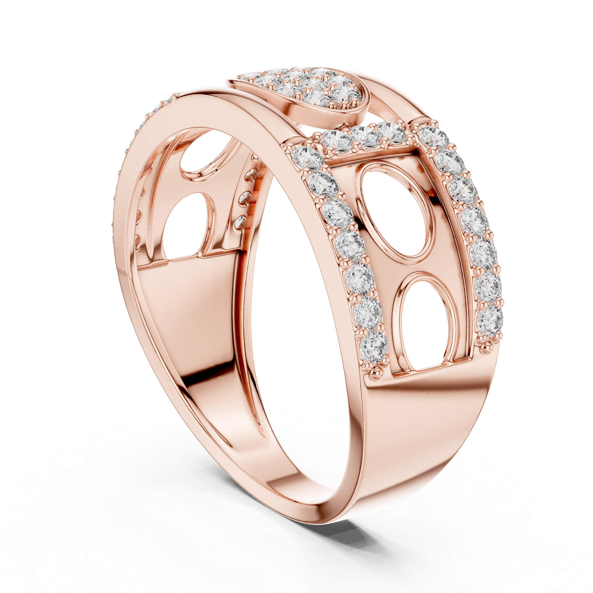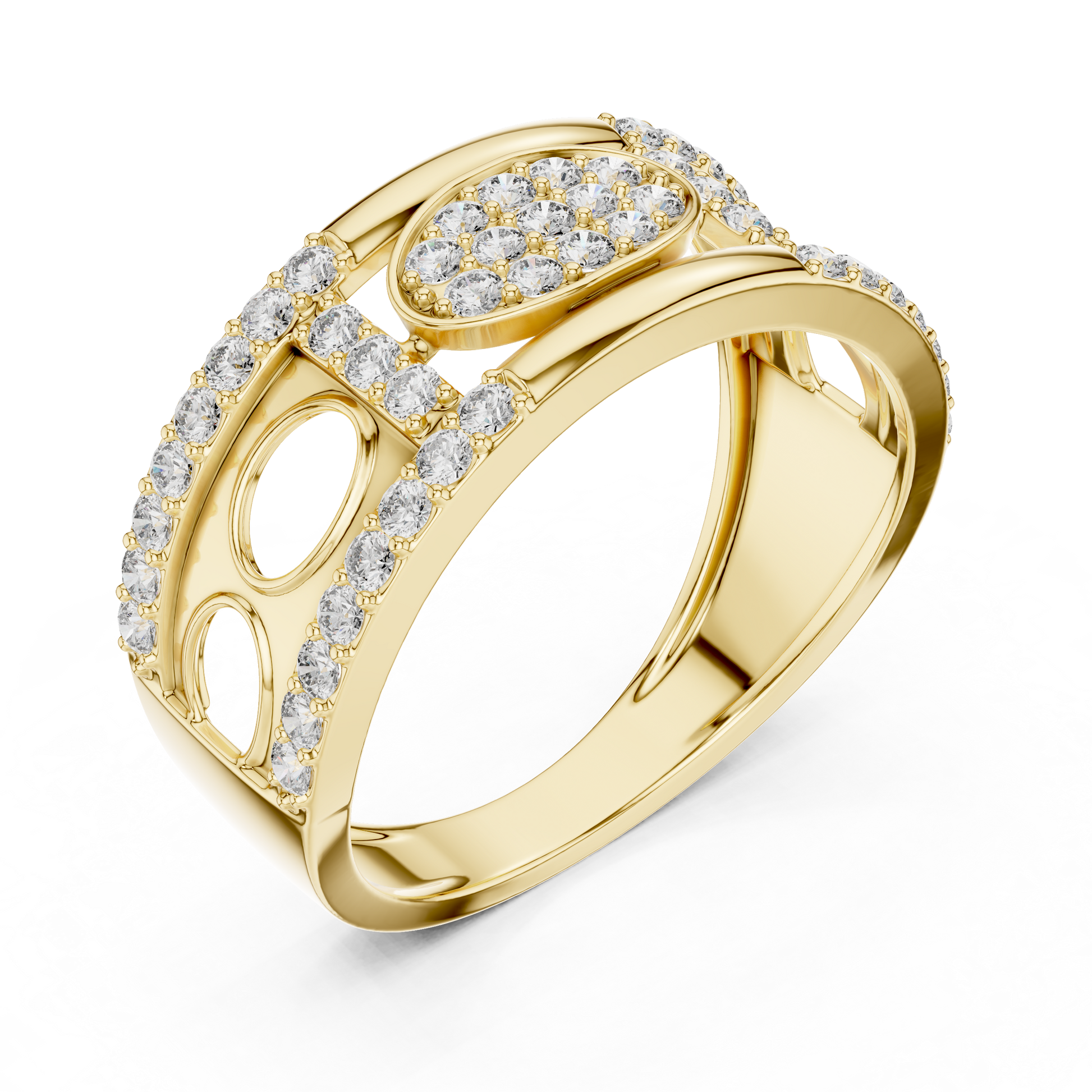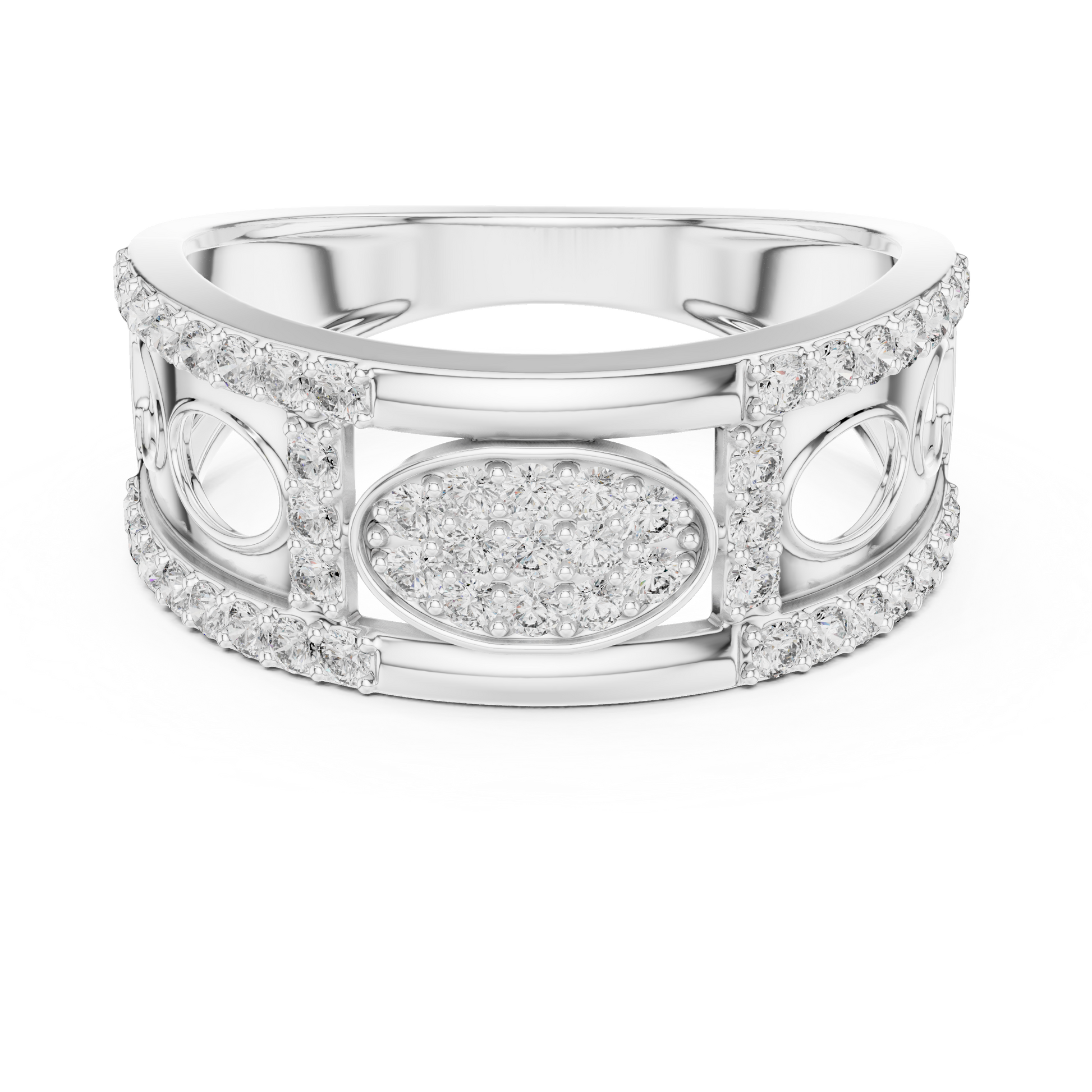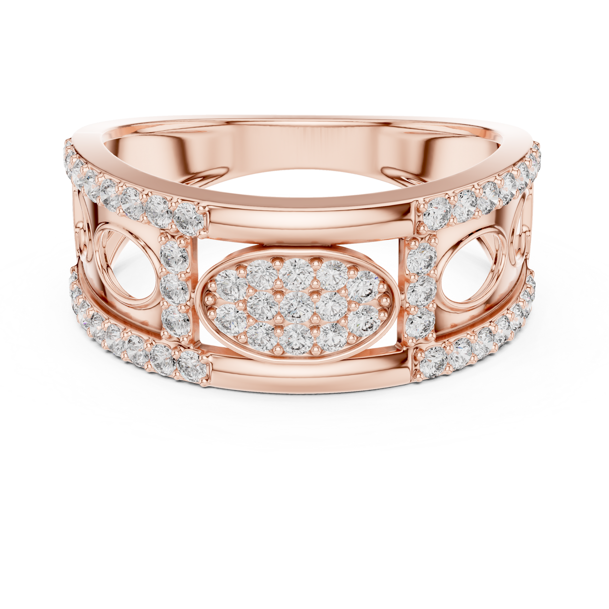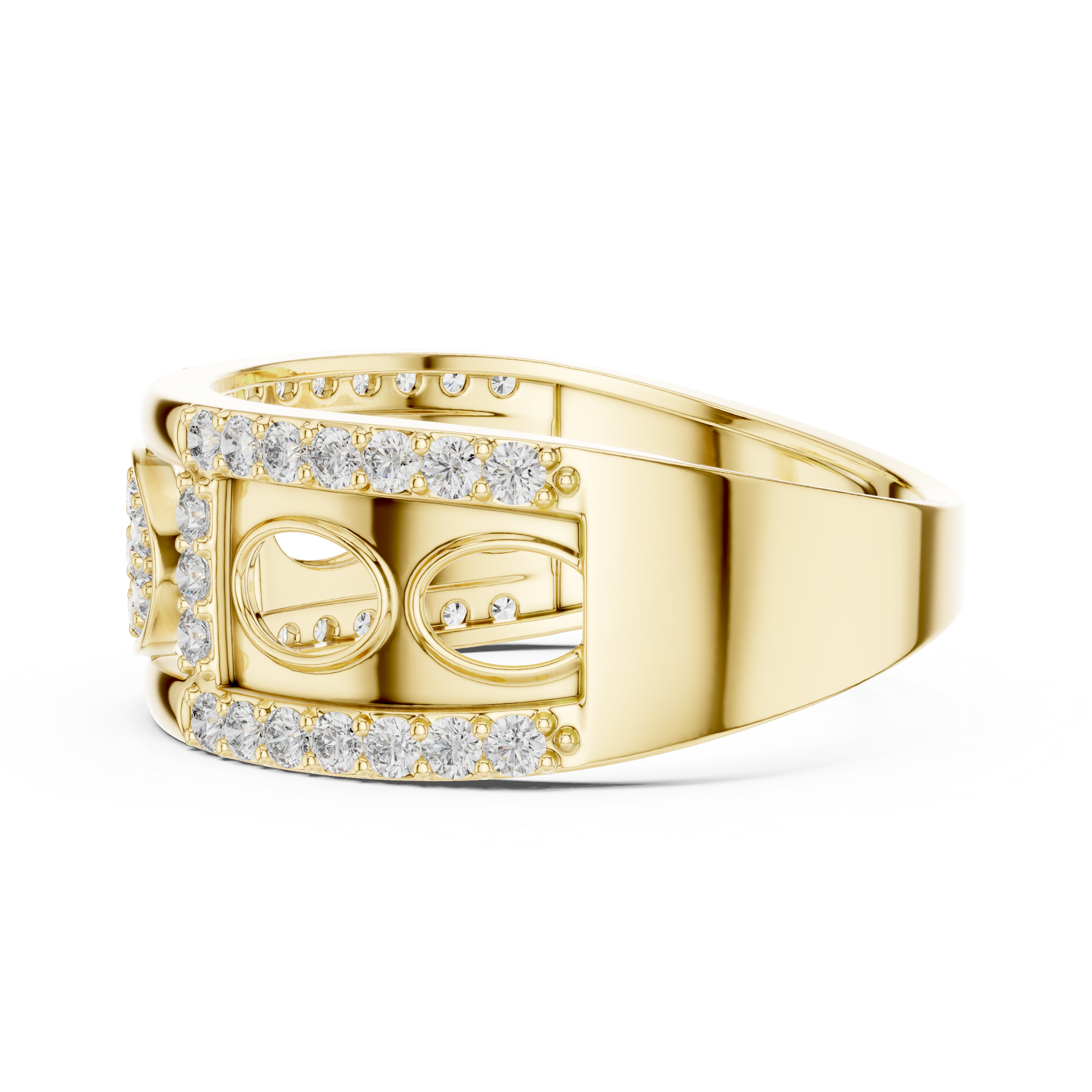 At Ivevar Luxury, this striking gold diamond band is crafted to command attention with its bold openwork design and refined pave detailing. The ring features oval-shaped diamond clusters, framed by precision-set round diamonds that create depth, brilliance, and architectural elegance. Polished gold surfaces contrast beautifully with diamond-studded edges, offering a balance of modern masculinity and timeless luxury.