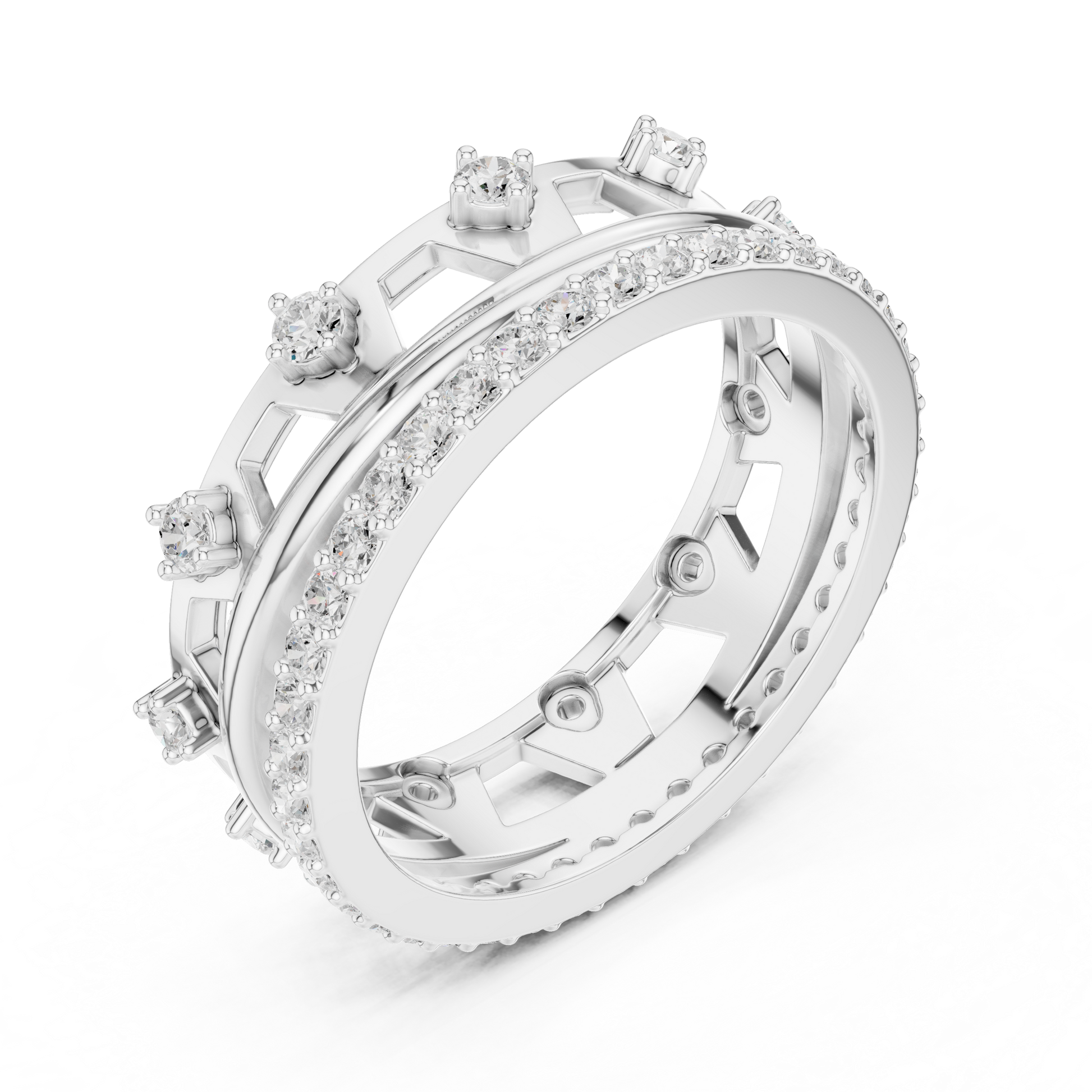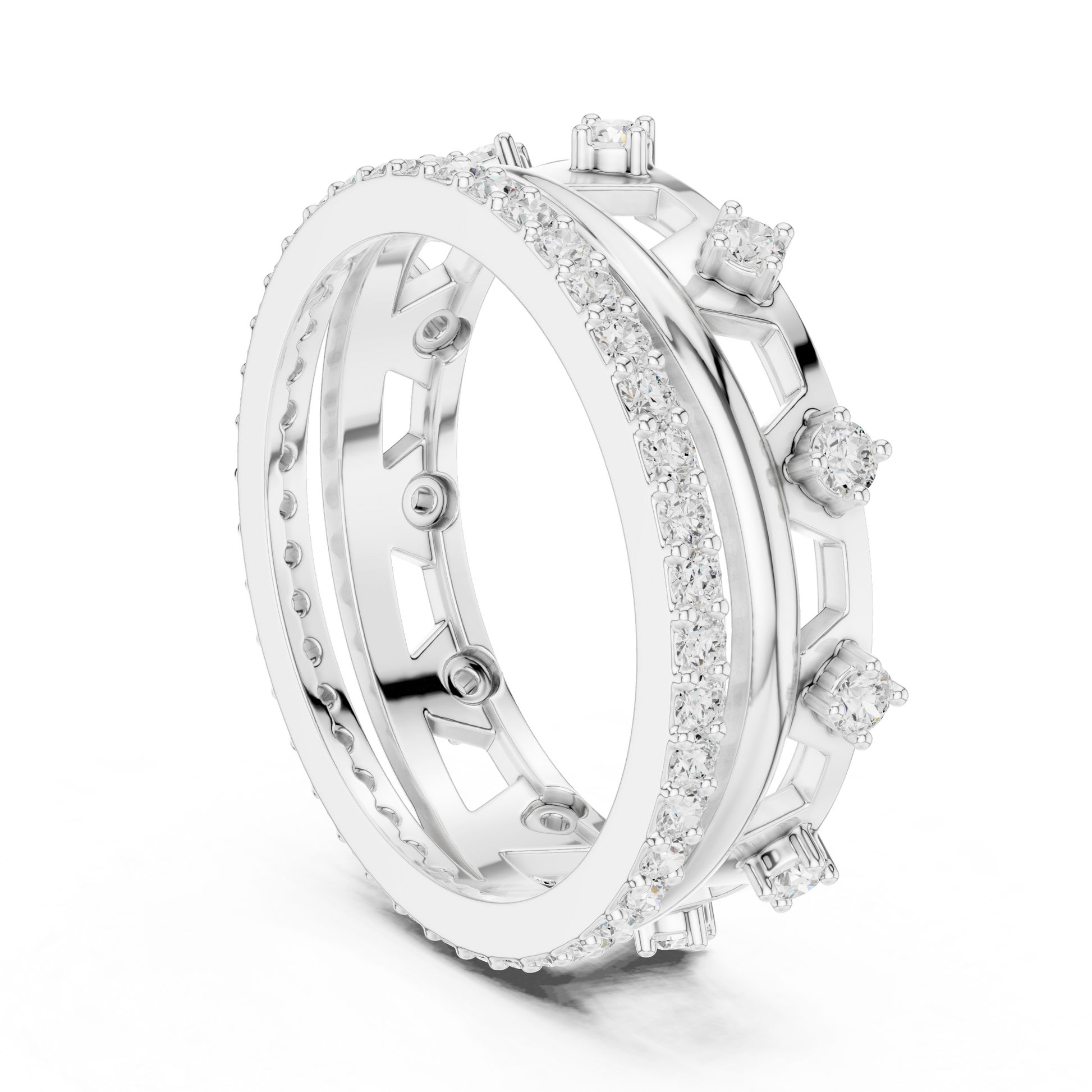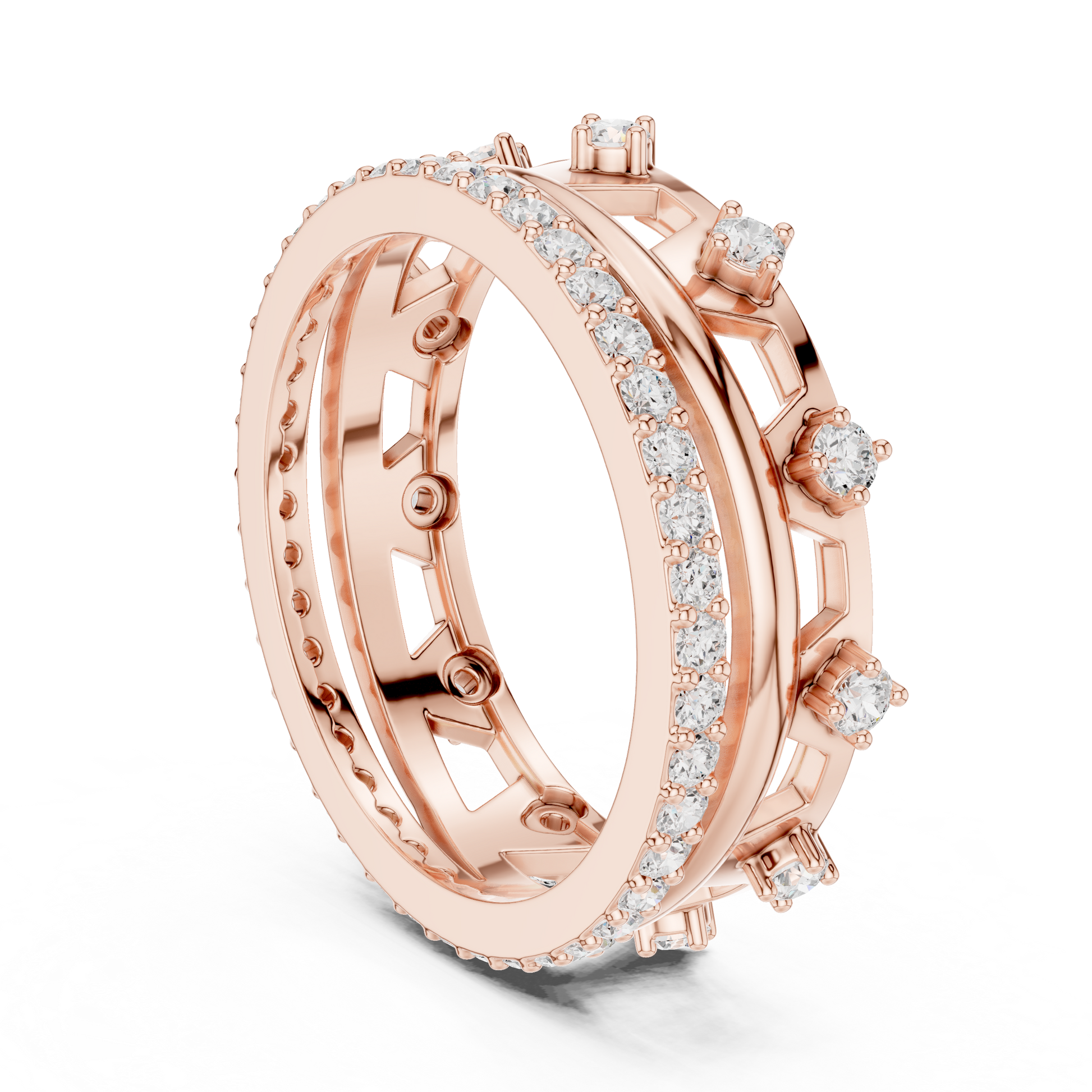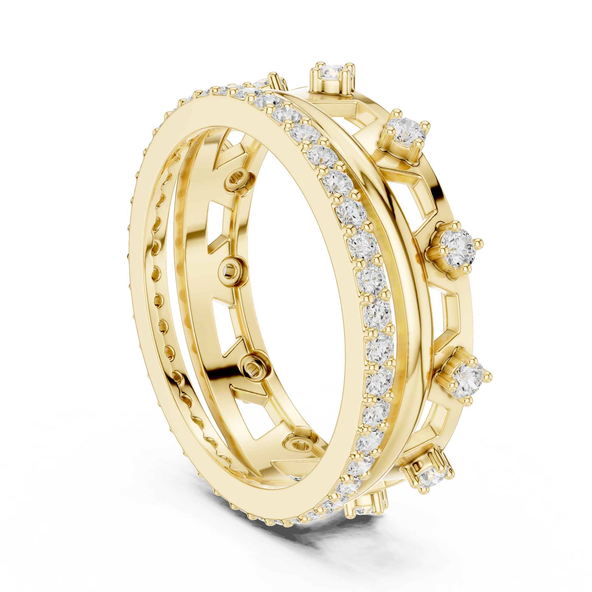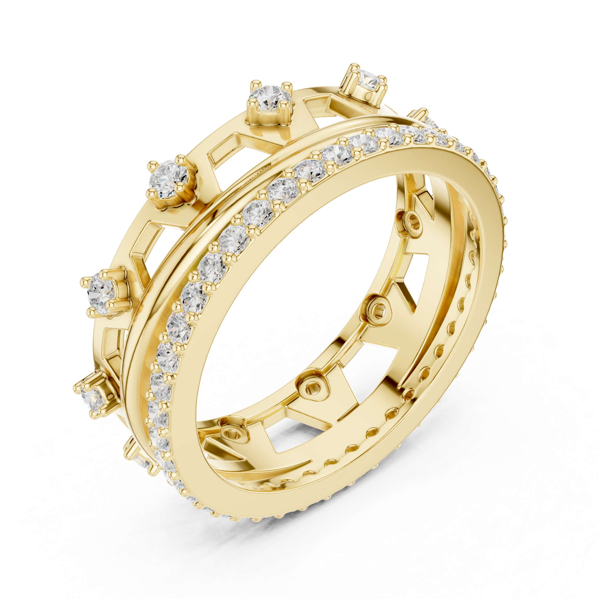 Make a powerful style statement with this luxury geometric diamond gold band, designed with an eye-catching openwork structure and elevated by floating round brilliant diamonds. Crafted in high-polish gold, this ring delivers a bold architectural look while maintaining refined elegance. making this ring perfect for everyday luxury, special occasions, or as a signature statement piece.