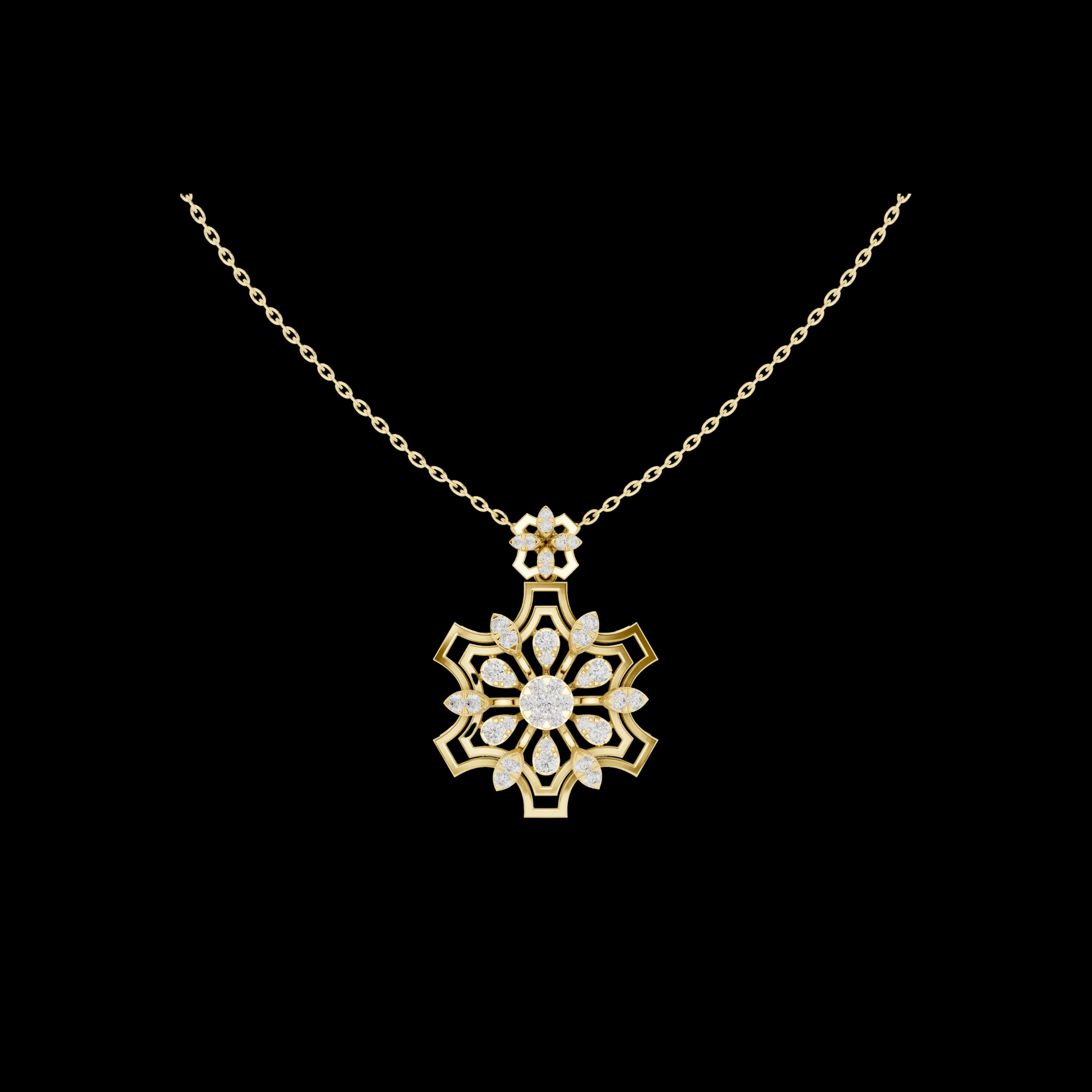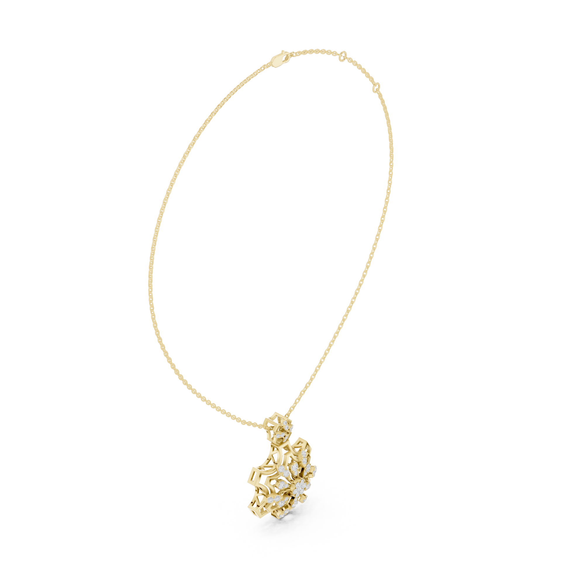Discover refined elegance with this stunning floral diamond pendant from ivevar luxury. Featuring an intricate openwork flower design, this pendant is adorned with shimmering round cut diamonds that create a brilliant, eye-catching sparkle. The delicate gold chain, graceful silhouette, and layered craftsmanship make it perfect for everyday luxury or special occasions, offering timeless beauty and feminine charm in one exquisite piece.