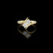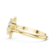 This contemporary gold ring features a graceful bypass silhouette that cradles two brilliant round diamonds in a floating embrace. Smooth sculpted curves sweep around the stones, creating a balanced and modern aesthetic with striking sparkle. Designed for everyday elegance or meaningful gifting, this ring blends artistic flow with timeless diamond brilliance.