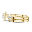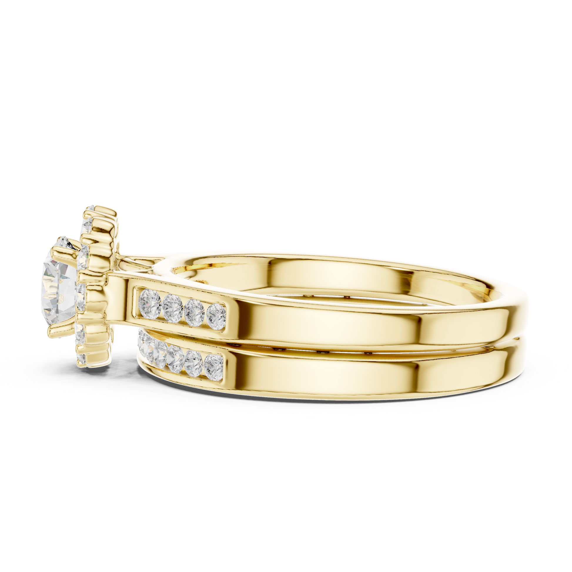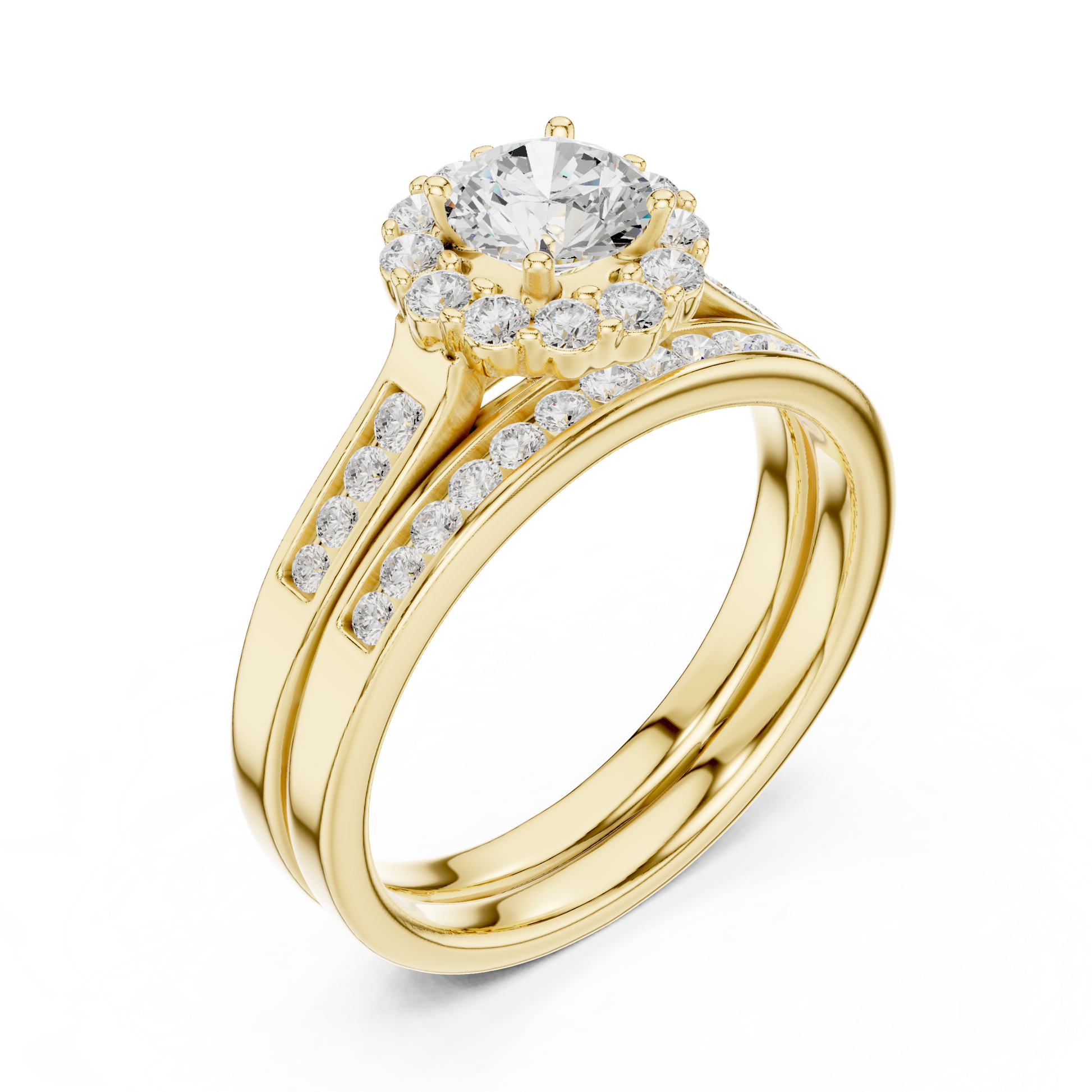 Command attention with this bold and sophisticated diamond ring, designed for those who appreciate enduring luxury. The brilliant round-cut center diamond is surrounded by a radiant halo of meticulously set diamonds, creating exceptional sparkle and depth. A distinctive double-band design, adorned with shimmering pavé-set diamonds, adds architectural strength and modern elegance.Crafted in rich , this ring blends powerful presence with refined detail, offering both comfort and brilliance.