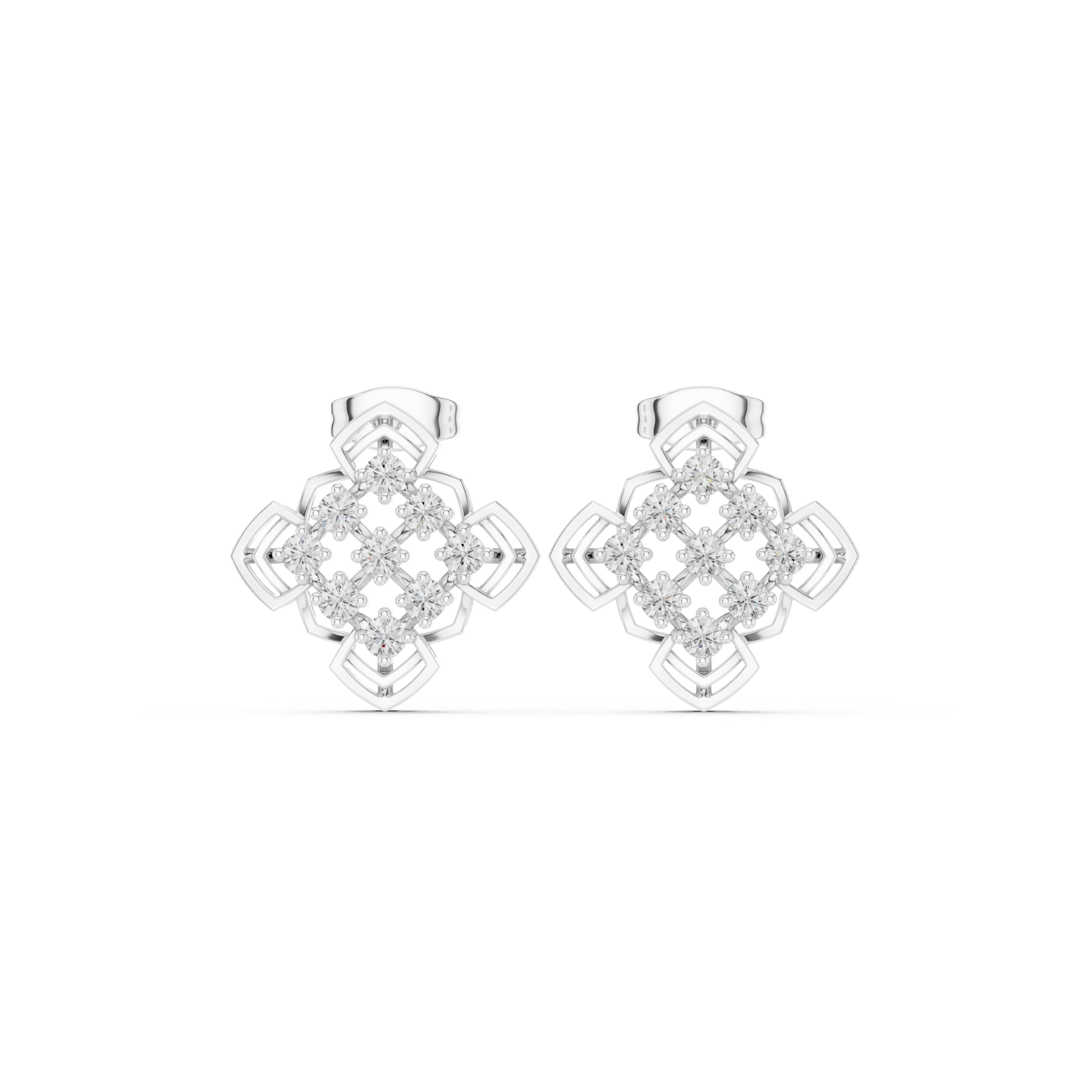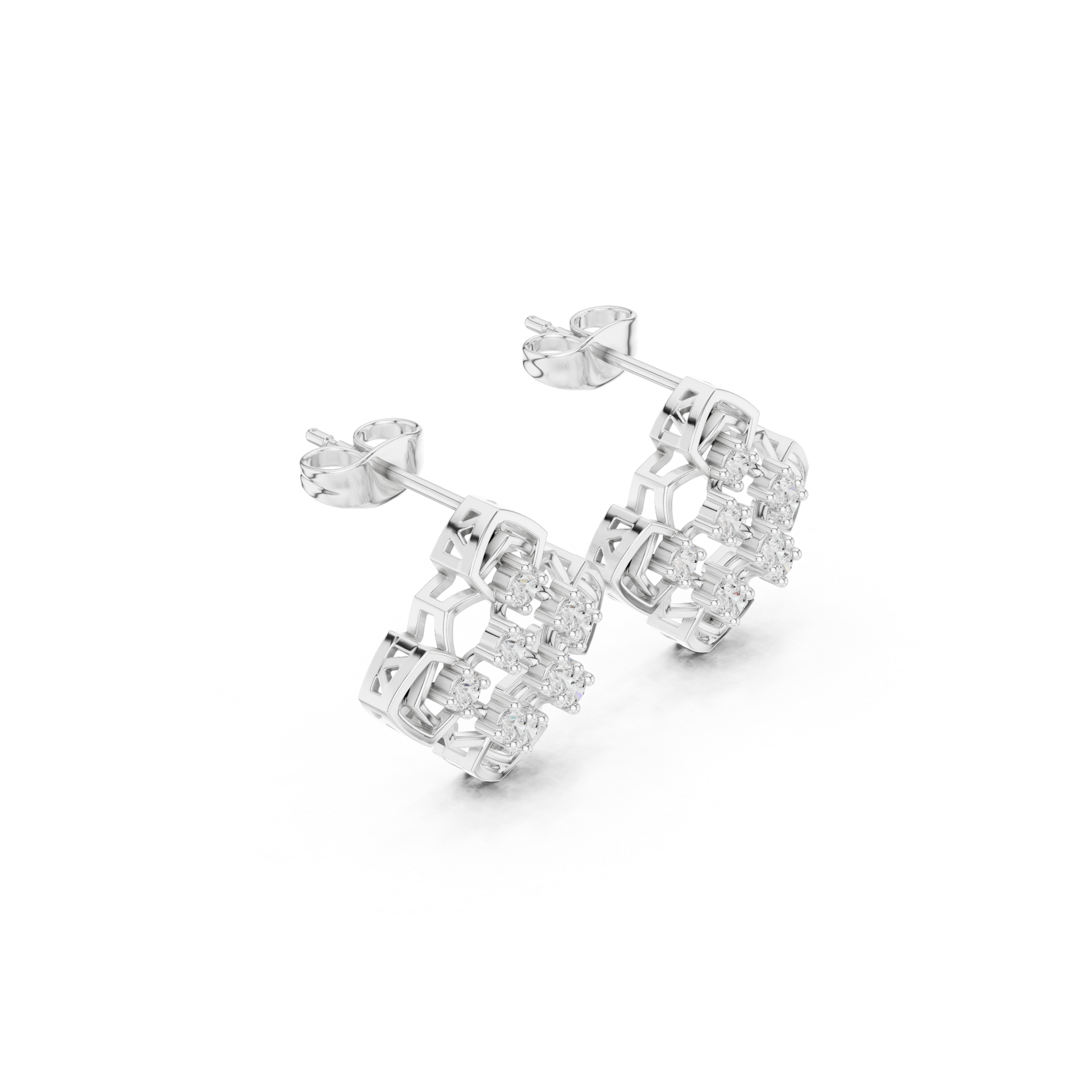 0.63 TCW Ornate Geometric Moissanite Diamond Round Cut Cluster Stud Earrings with Open Motif Detailing