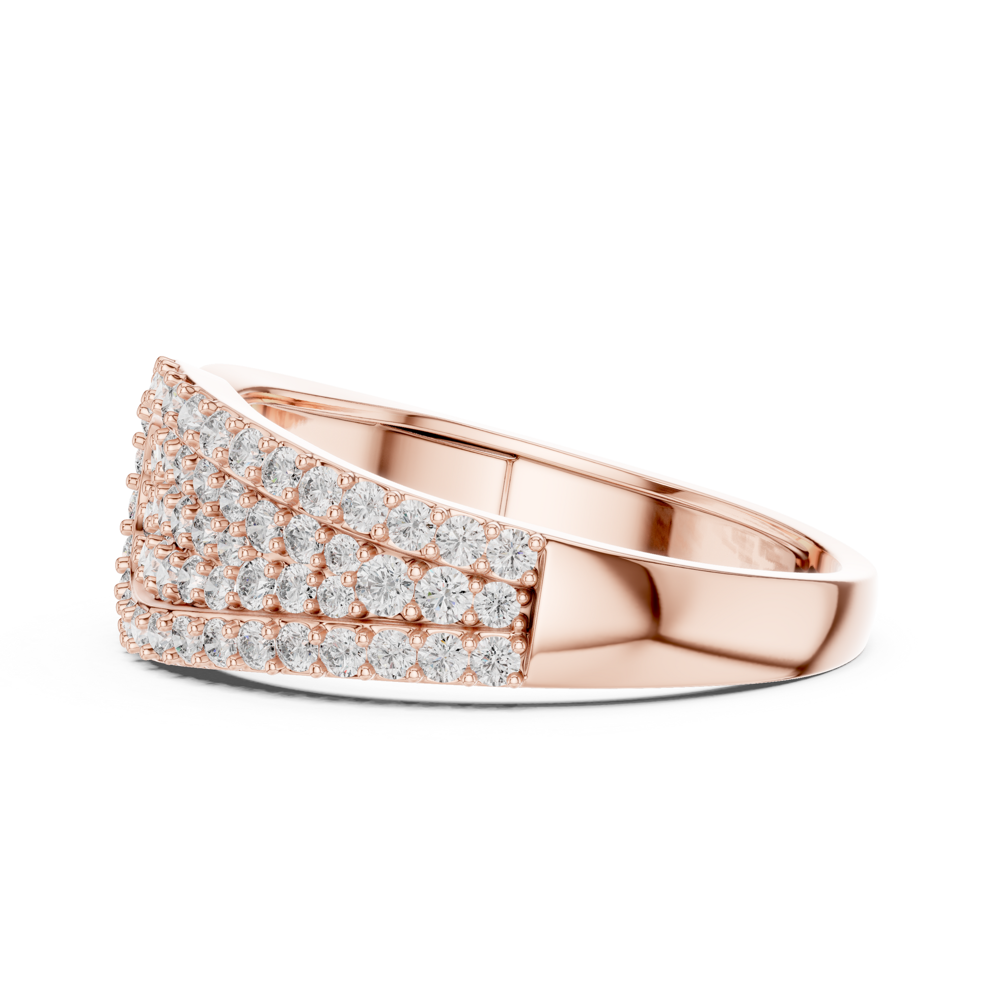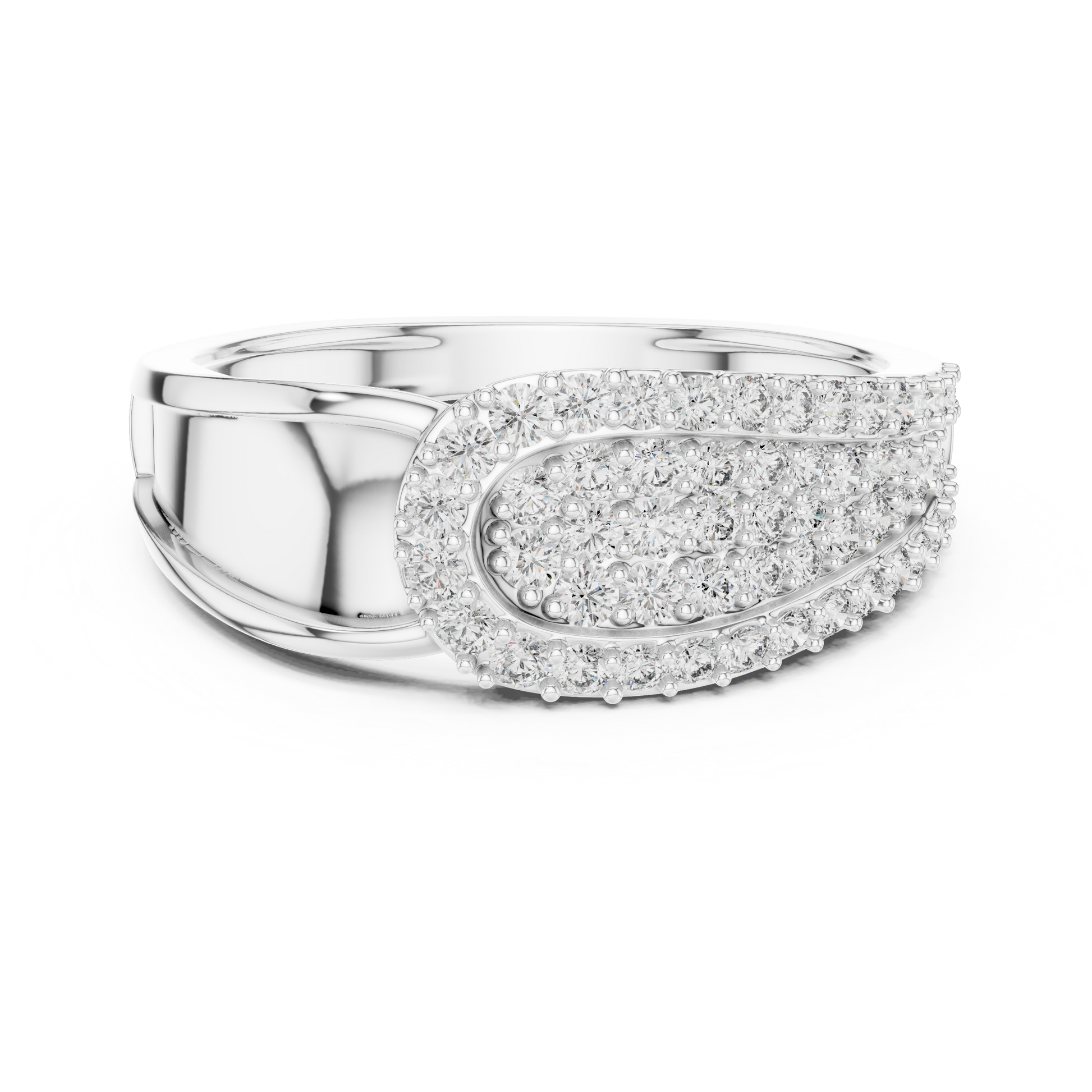 this statement ring from Ivevar Luxury showcases a bold gold band crowned with a dazzling multi-row pave diamond cluster that delivers unmatched brilliance. The smooth high-polish gold shank provides a powerful, masculine presence while ensuring lasting comfort for everyday or occasion wear. Expertly set round diamonds create a layered sparkle effect that reflects light from every angle, emphasizing refined craftsmanship and luxury appeal.