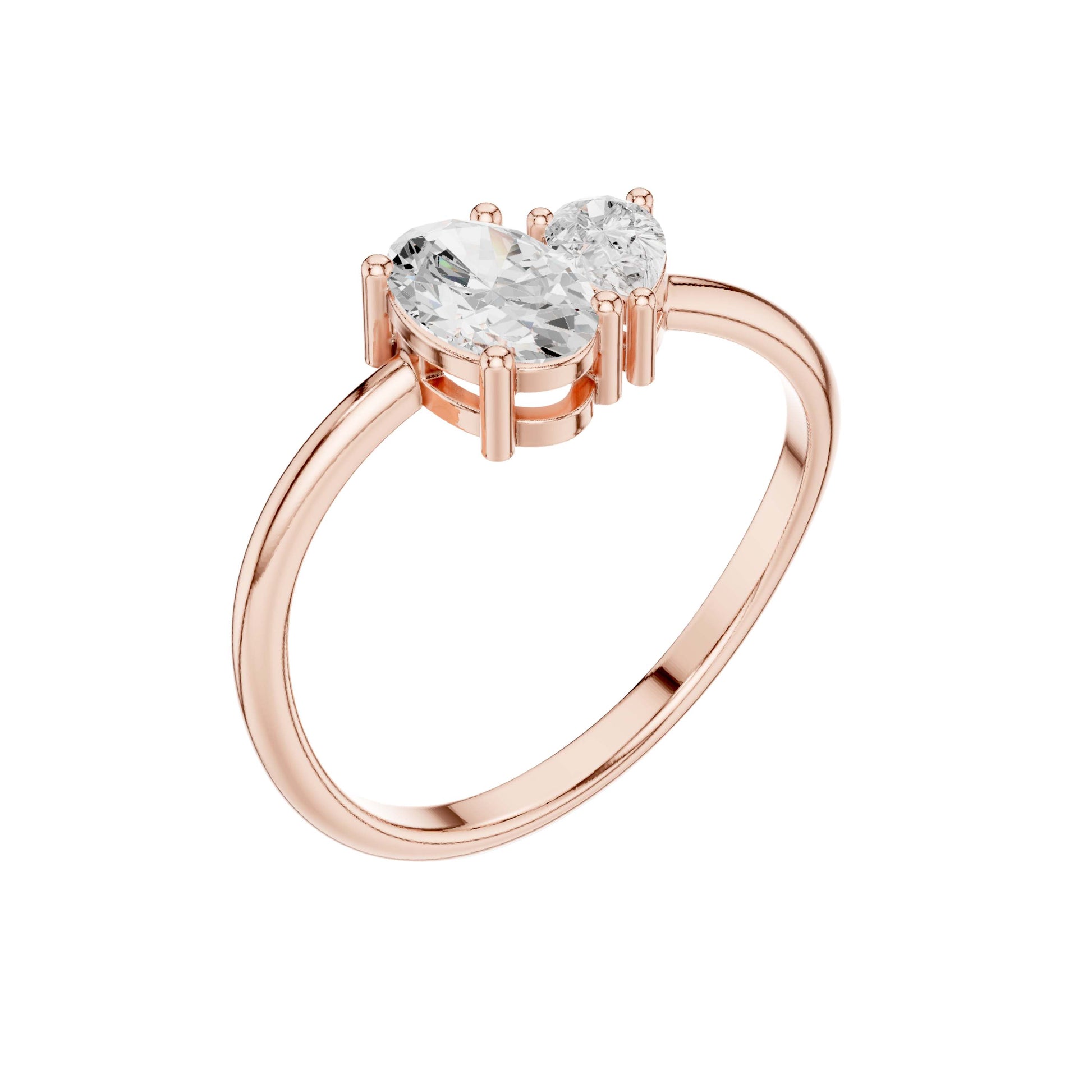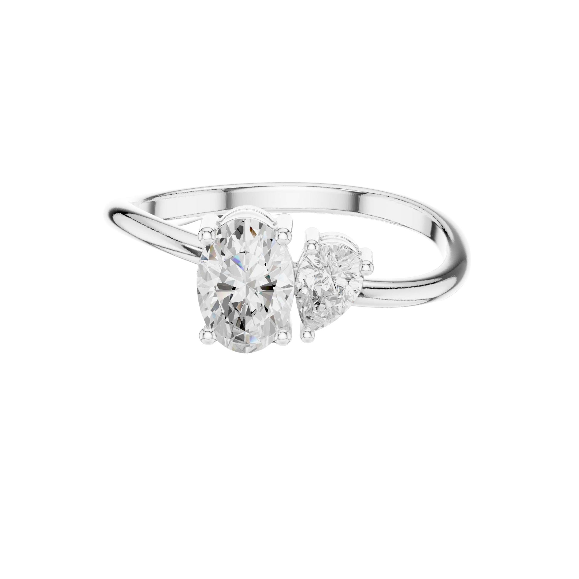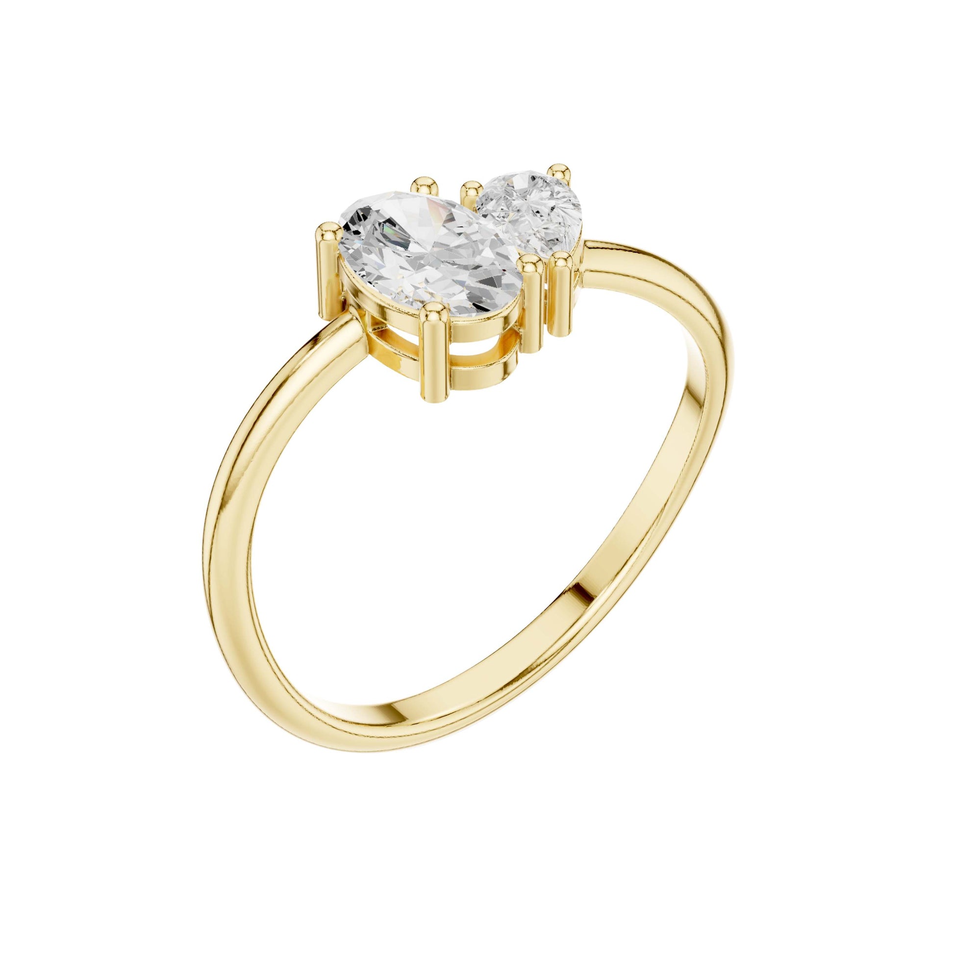 This romantic Toi et Moi ring pairs an elegant oval-cut diamond with a charming pear-shaped diamond, symbolizing the union of two souls. Set on a sleek, polished gold band with a graceful bypass design, the stones appear to gently lean toward one another, creating a look that is both intimate and contemporary. Timeless yet distinctive, this ring is a meaningful expression of love, connection, and modern elegance by Ivevar.