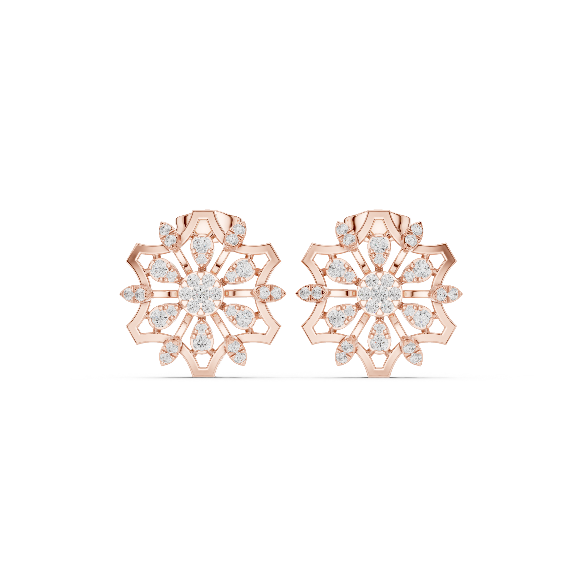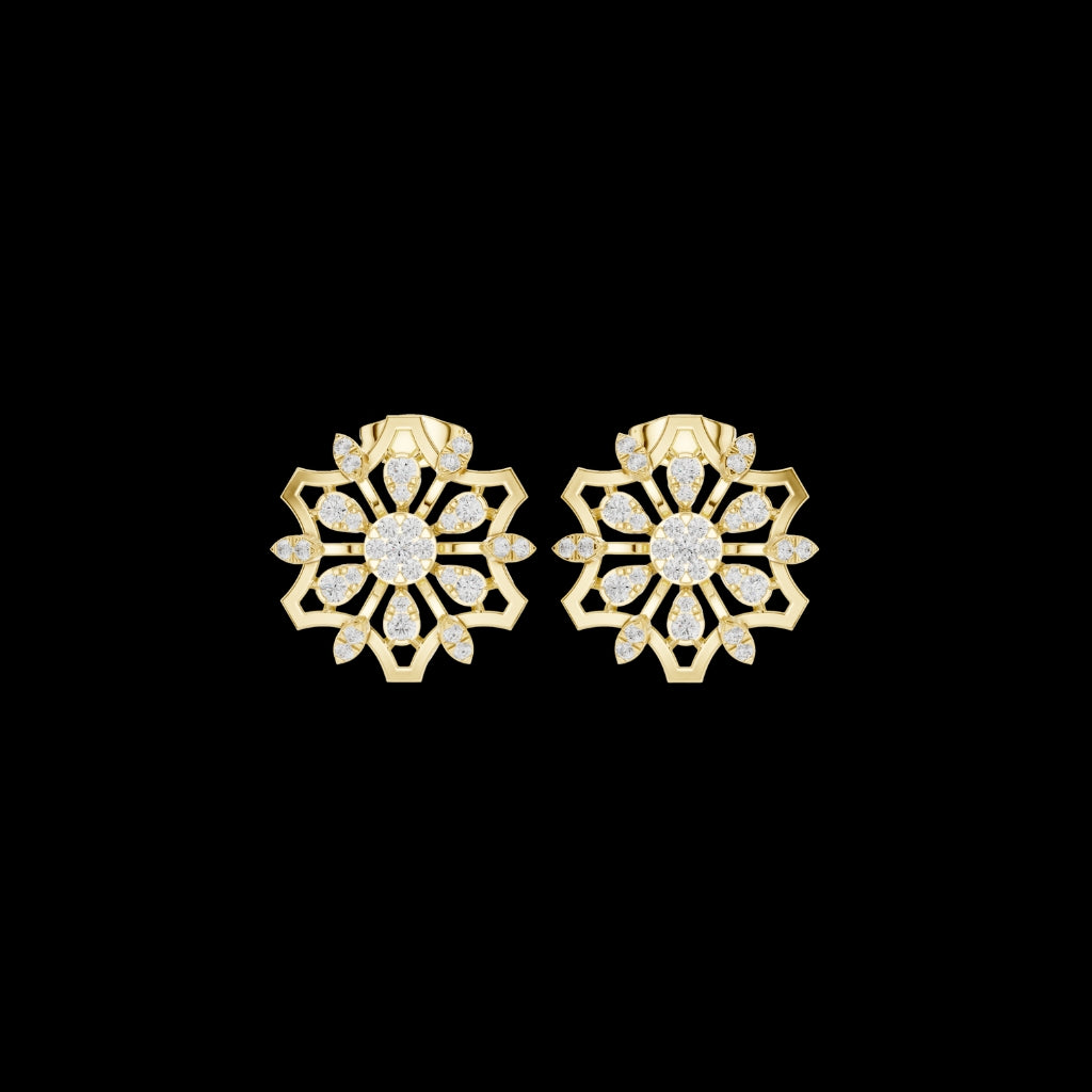 0.66 TCW Ornate Mandala Moissanite Diamond Stud Earrings in Gold with Round Center Stone For Party