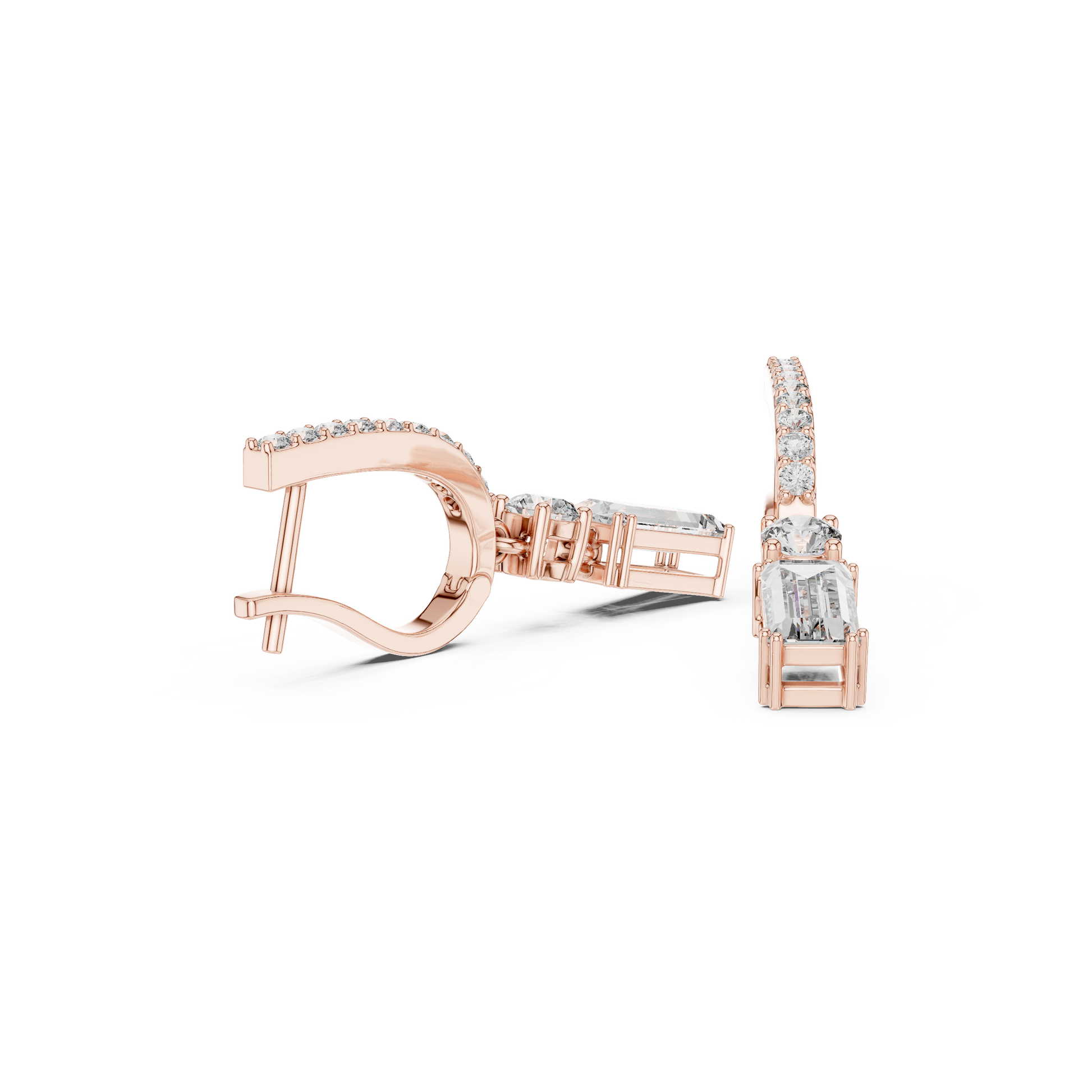 Showcase contemporary elegance with these refined Baguette-cut linear drop earrings, beautifully crafted in luminous gold. A sleek pavé-set bar leads to a brilliant round accent, finished with a striking Baguette-cut drop that elongates the silhouette with clean, architectural lines. Designed for graceful movement and exceptional sparkle, these earrings are perfect for evening events, celebrations, or polished everyday luxury. Their balanced design blends modern minimalism with timeless sophistication, making them a versatile statement for refined styling.