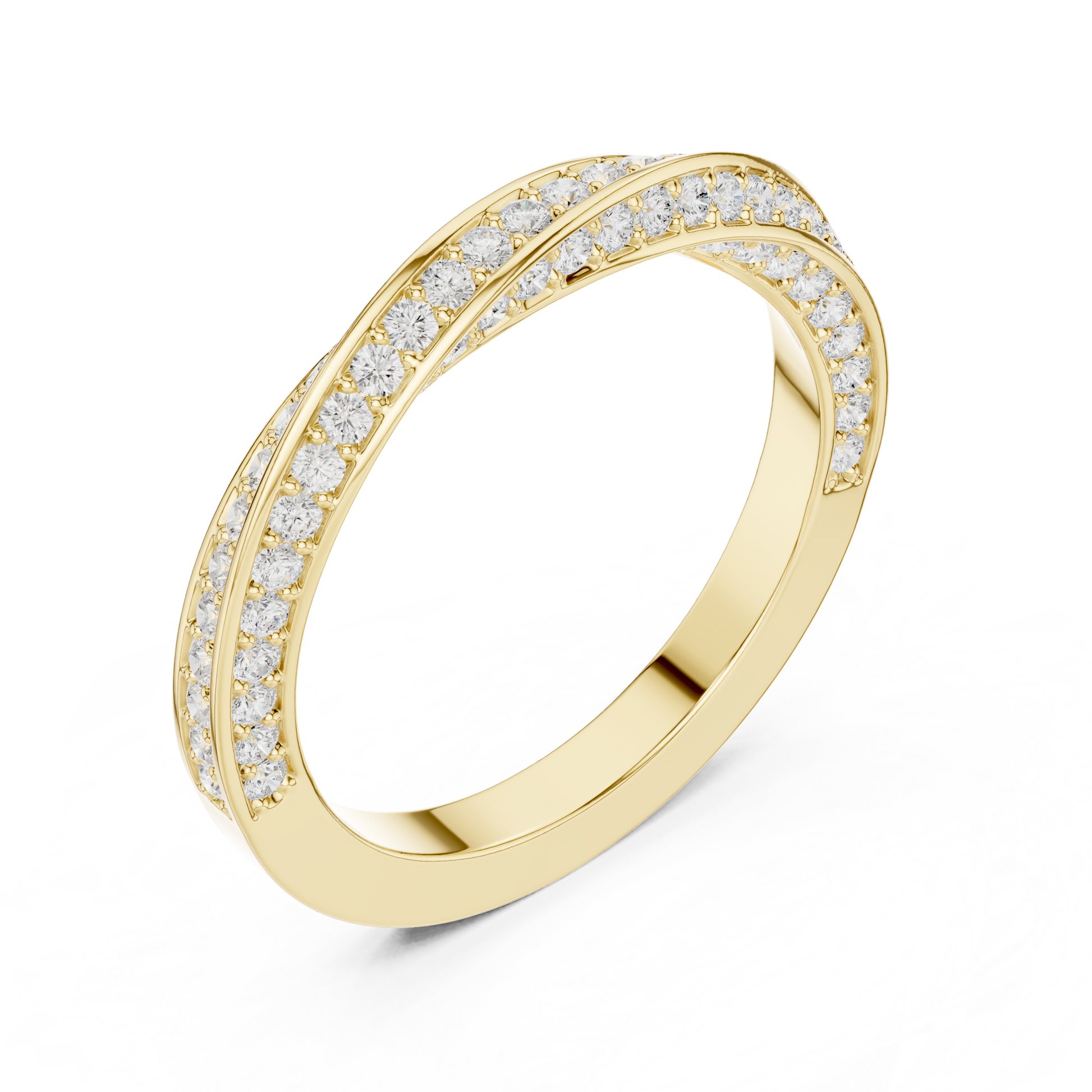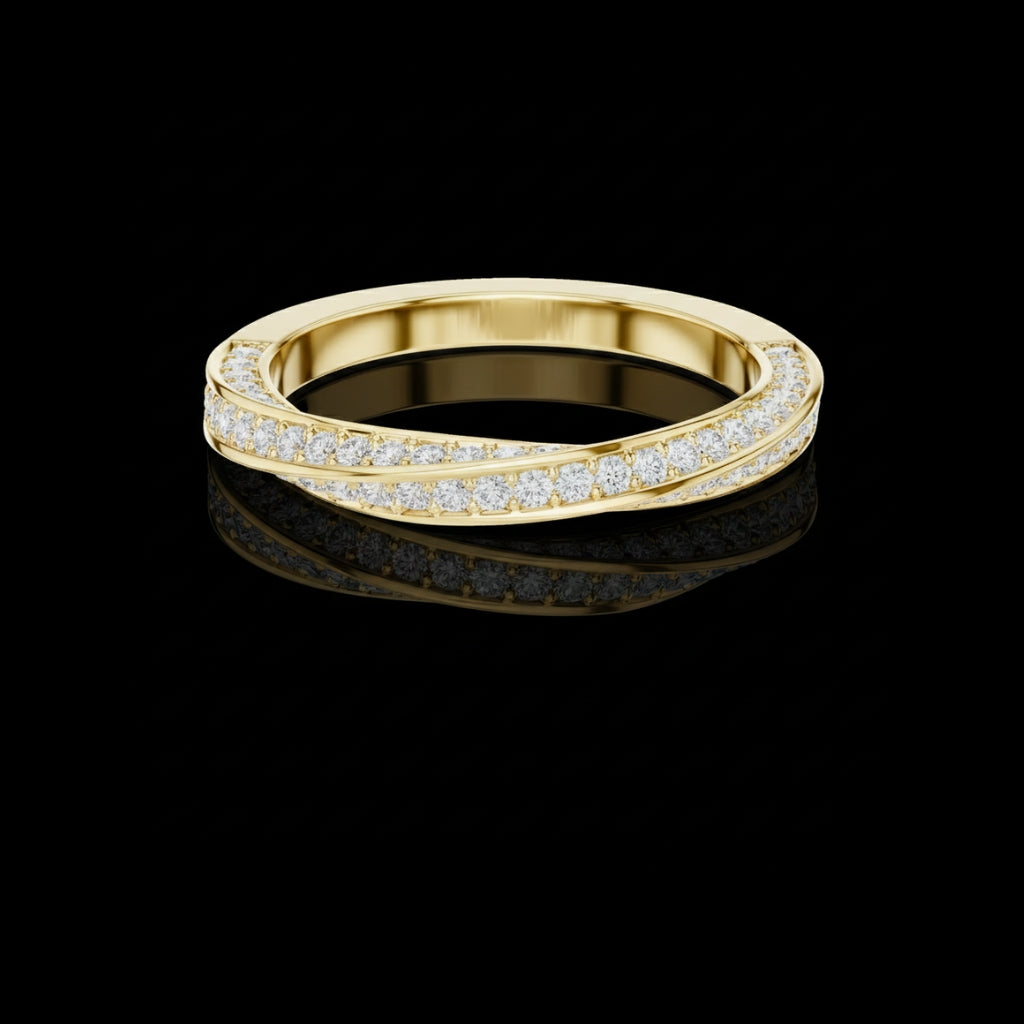 This exquisite criss-cross diamond band features two beautifully curved rows of round brilliant diamonds, set in luxurious gold for a sleek and modern look. The unique twisted design adds dimension and elegance, making it perfect for stacking or wearing as a stand-alone statement piece. Crafted with premium craftsmanship and designed for those who love luxury, shine, and refined style — exclusively from Ivevar Luxury.