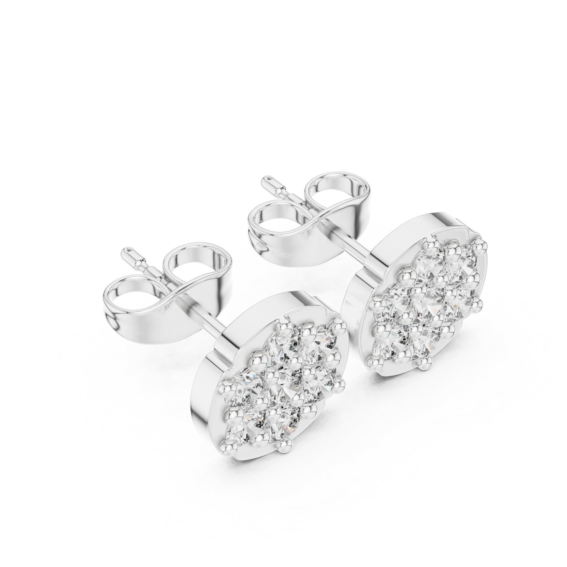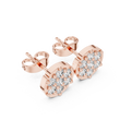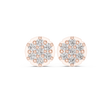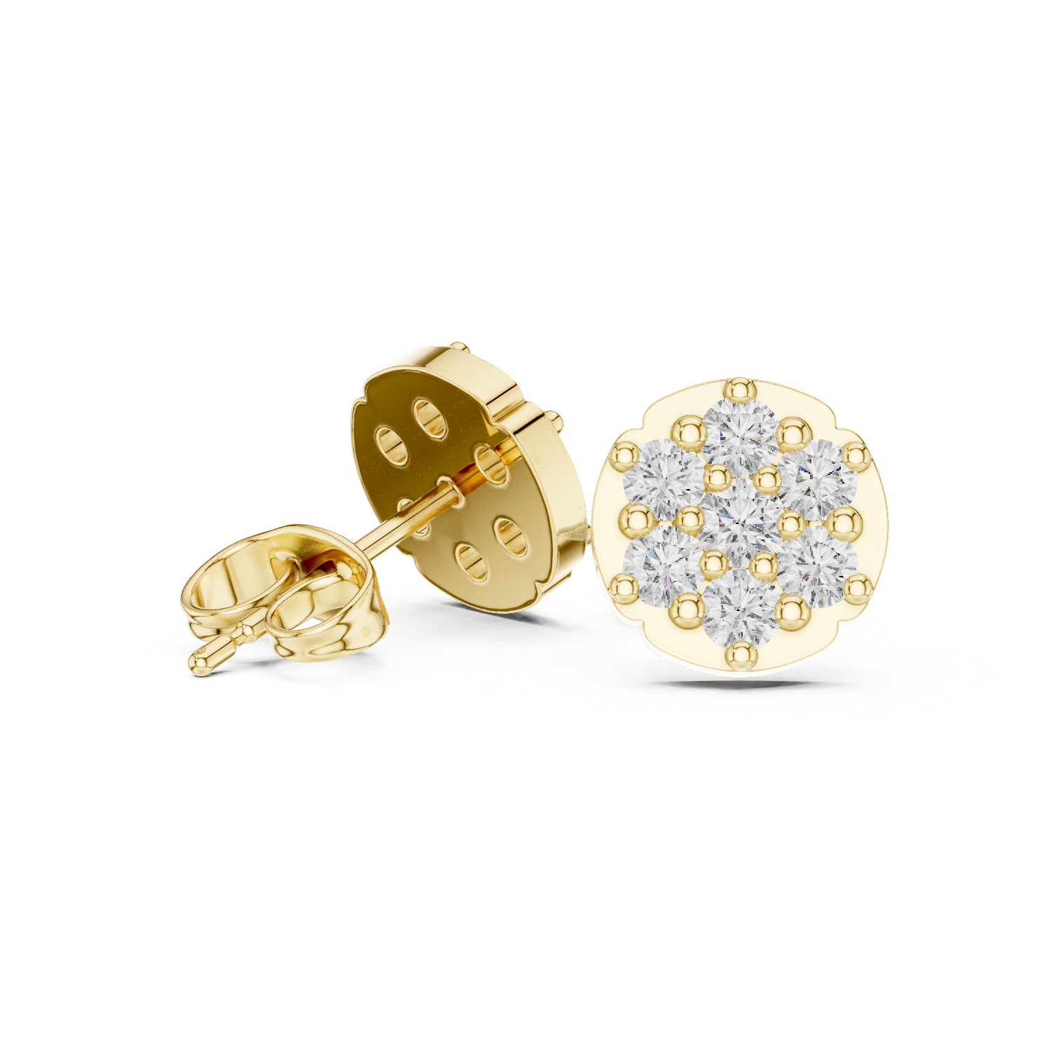 The Aurora Halo Blossom Gold Stud Earrings showcase a refined circular floral design crafted with precision-set round diamonds. Each stone is arranged in a harmonious cluster, forming a soft bloom effect framed by a smooth polished gold border. The balanced symmetry and radiant sparkle make these earrings a timeless choice for everyday luxury and special occasions alike. Elegant yet versatile, this design reflects understated sophistication with a graceful floral essence.