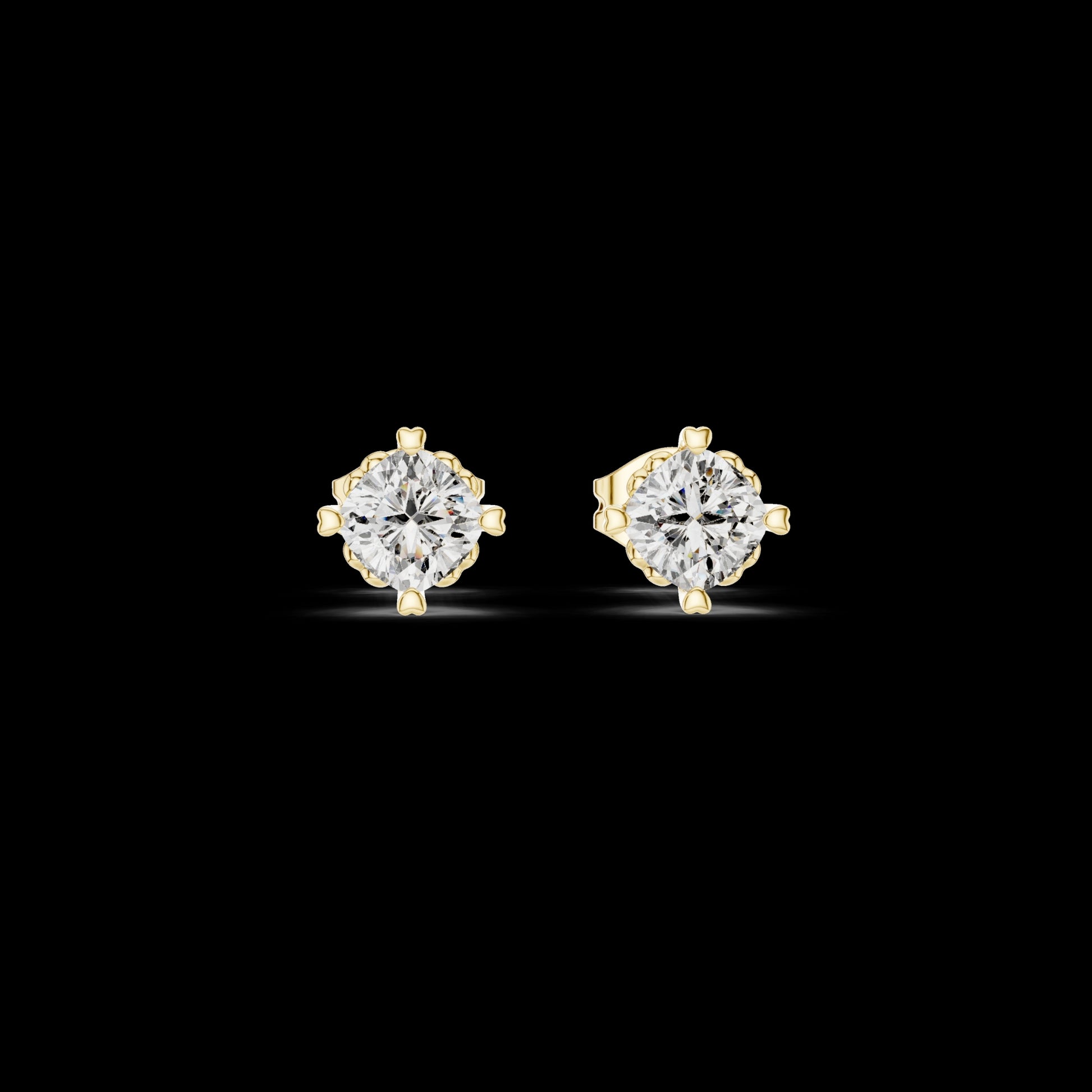 These lab grown diamond stud earrings showcase a timeless round brilliant diamond secured in a classic collet setting. The minimal design highlights the natural fire and clarity of the diamond while allowing maximum light to enhance its brilliance. Crafted for comfort and durability, these studs are ideal for everyday wear, office styling, or special occasions. Their versatile silhouette makes them a lasting addition to any fine jewelry collection and a meaningful gift choice for celebrations and milestones.