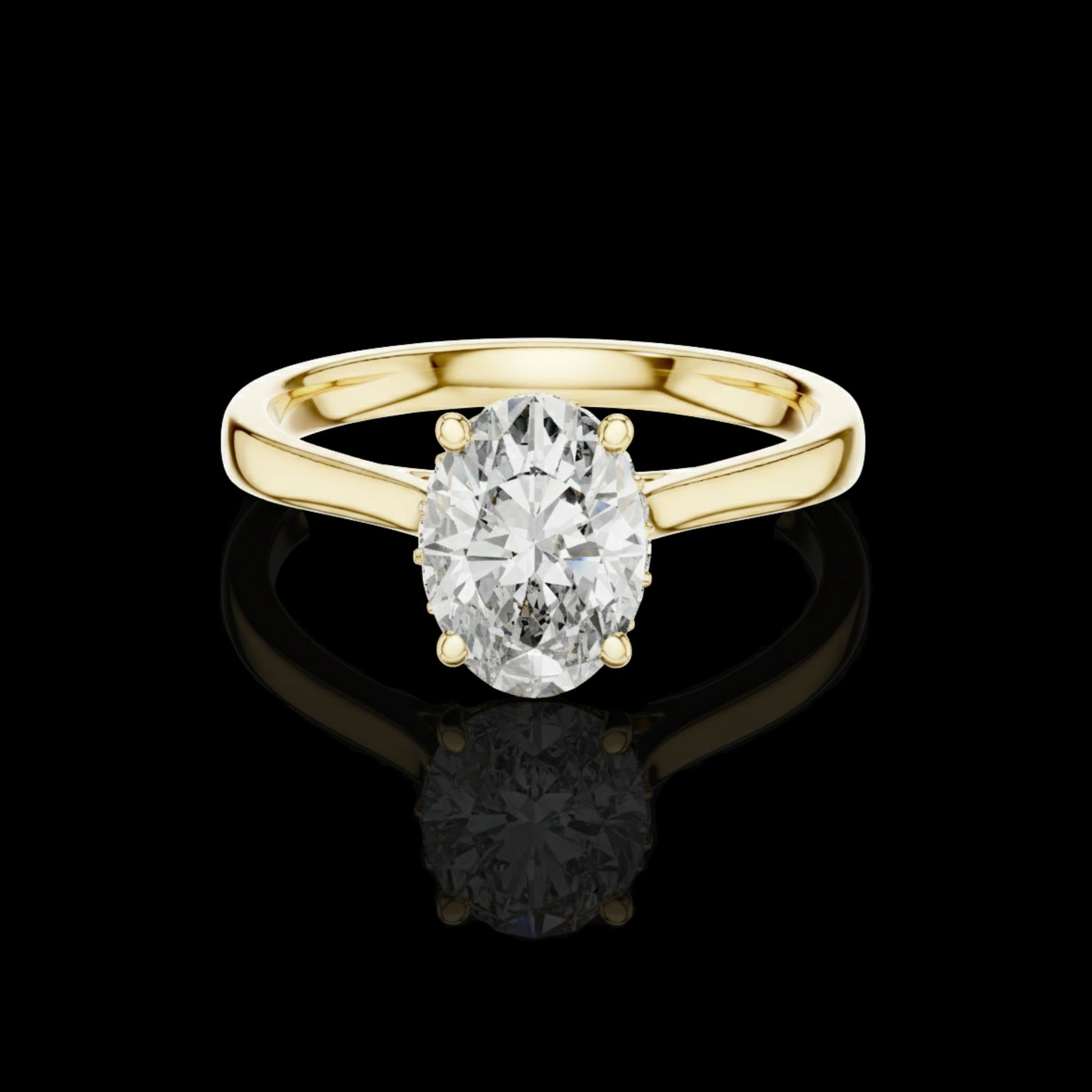 Indulge in timeless sophistication with this oval-cut solitaire diamond ring, crafted in radiant gold. The elongated center stone delivers exceptional brilliance, creating a graceful and flattering sparkle on every hand. Designed with a smooth, polished band, this masterpiece combines luxury, elegance, and modern beauty, making it the perfect symbol of everlasting love.