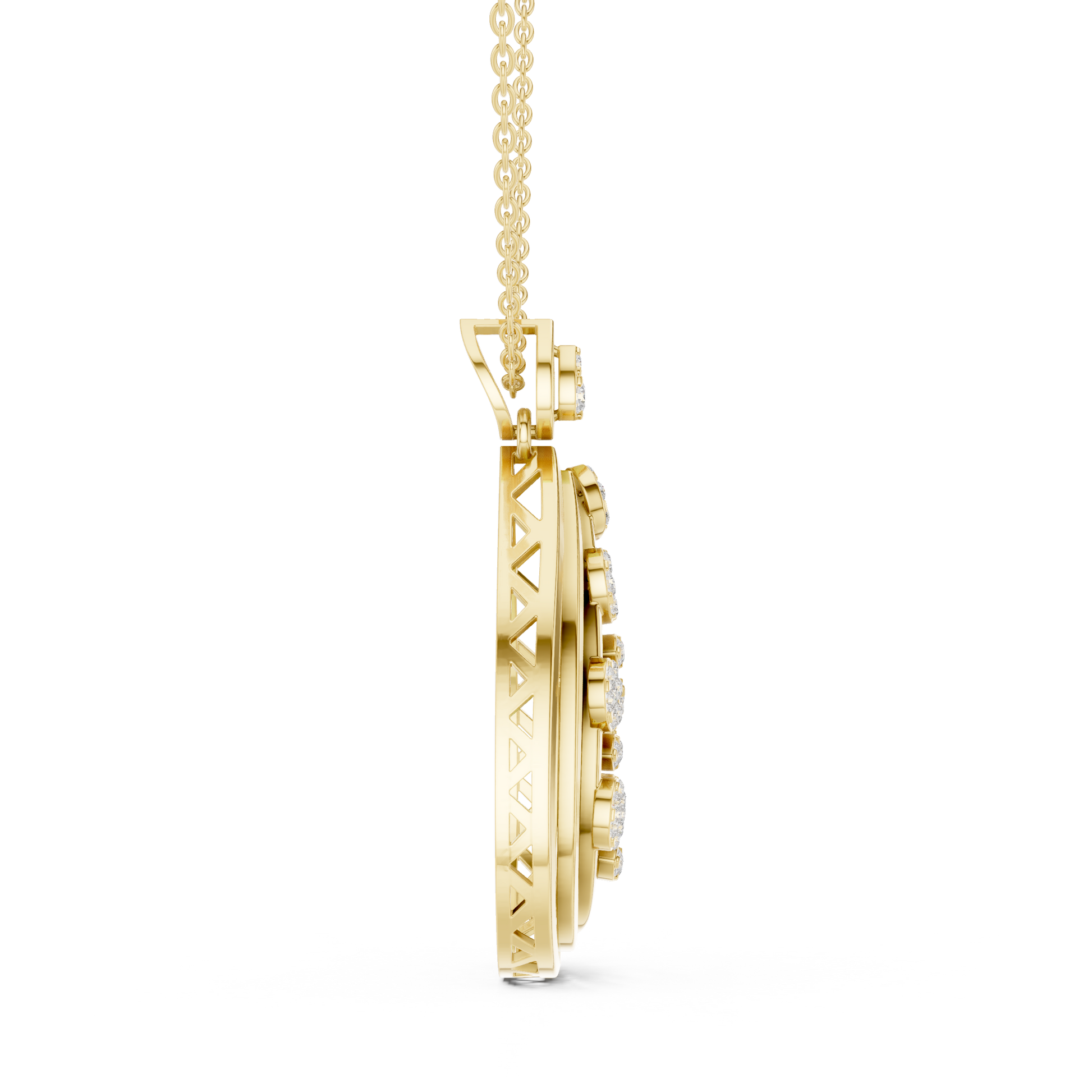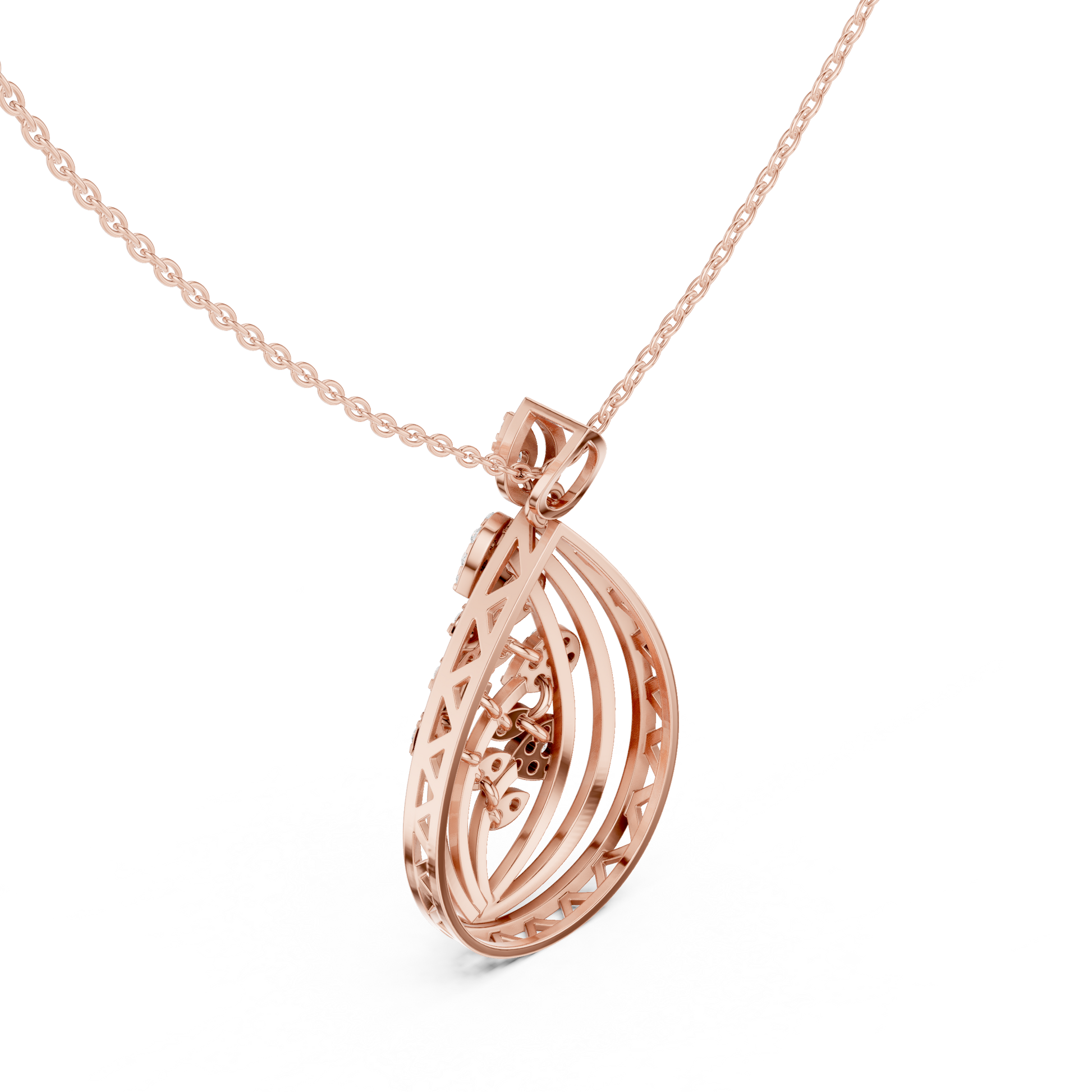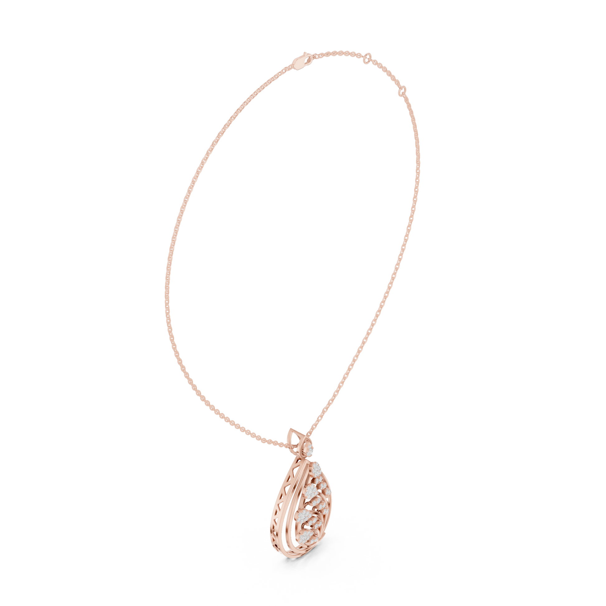 Discover refined elegance with this teardrop diamond pendant. The openwork teardrop silhouette features leaf-inspired curves adorned with shimmering round-cut diamonds, creating graceful movement and brilliant sparkle. Paired with a delicate gold chain, this pendant blends modern femininity, fine craftsmanship, and timeless beauty, perfect for everyday wear or special occasions.