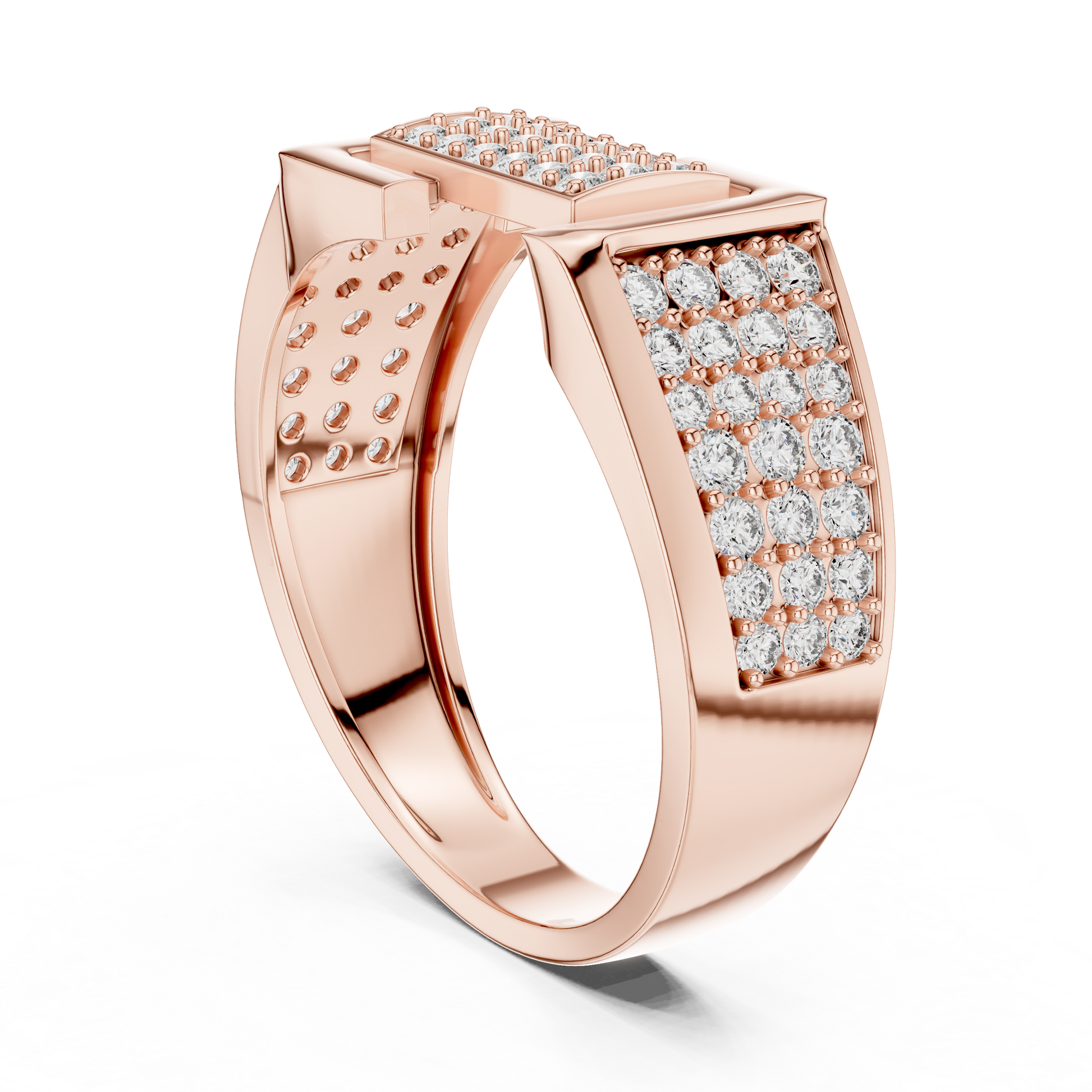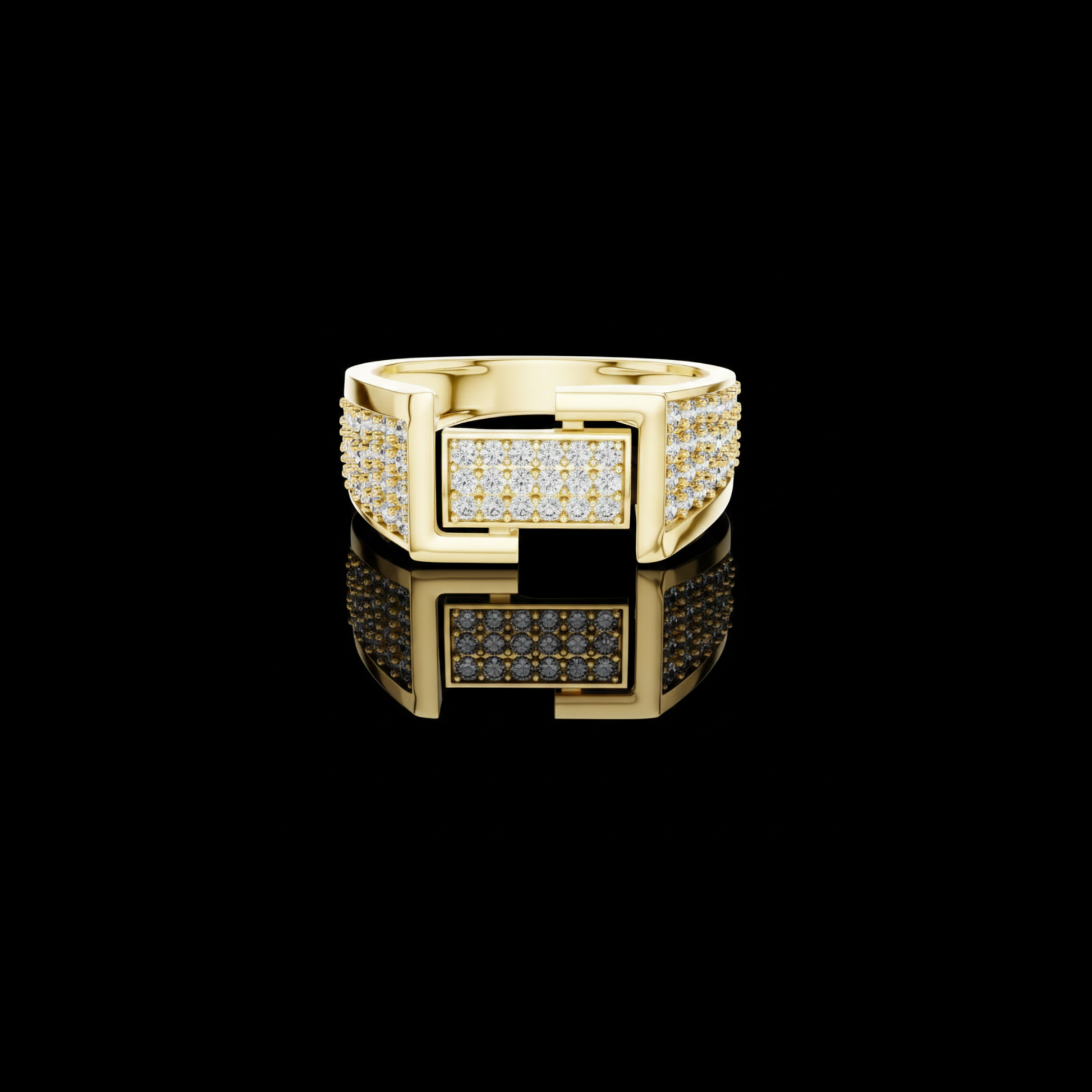 At Ivevar Luxury, this gold diamond ring is a true expression of modern elegance and strength. Designed with rectangular pavé-set diamond panels, it delivers exceptional brilliance from every angle. The geometric structure and high-polish finish create a powerful statement look. Perfect for those who value luxury craftsmanship, confidence, and contemporary design.