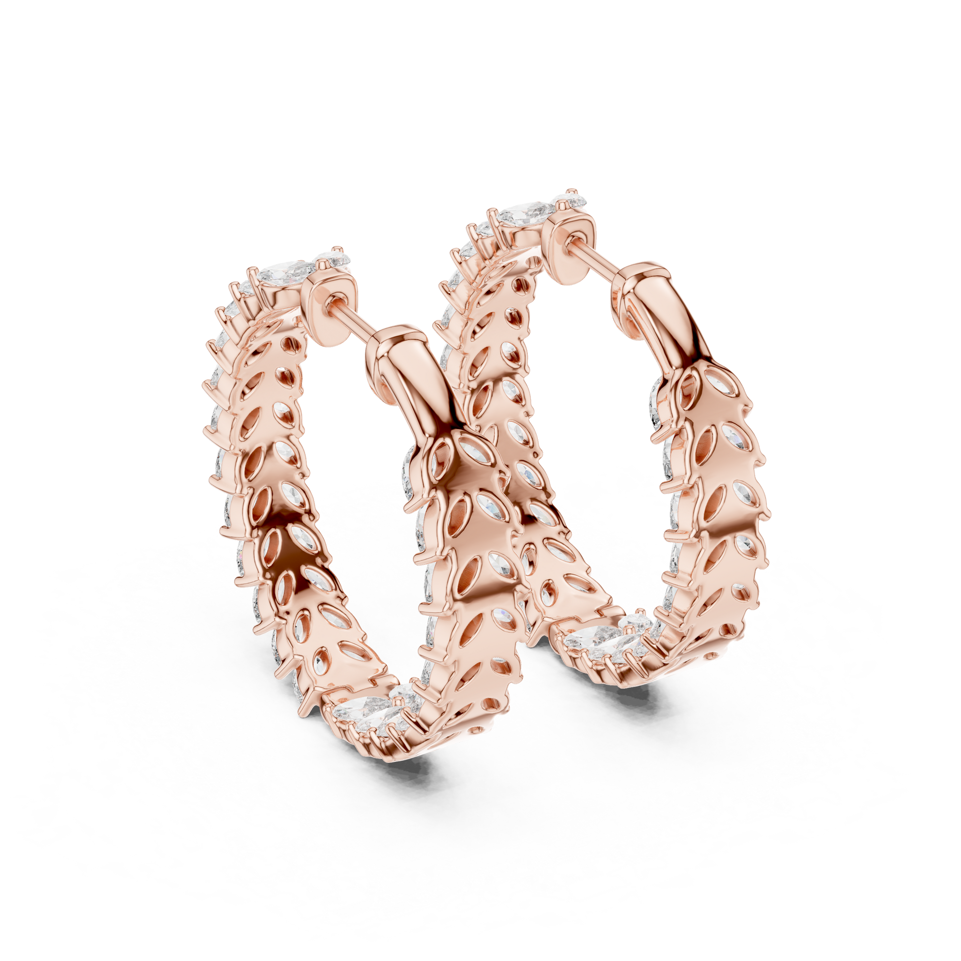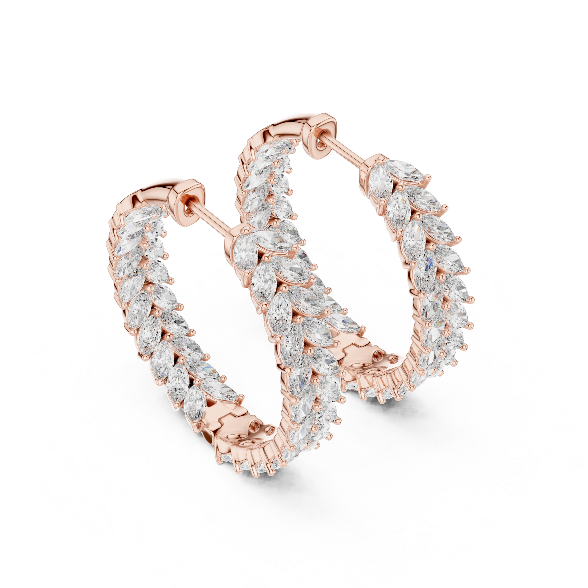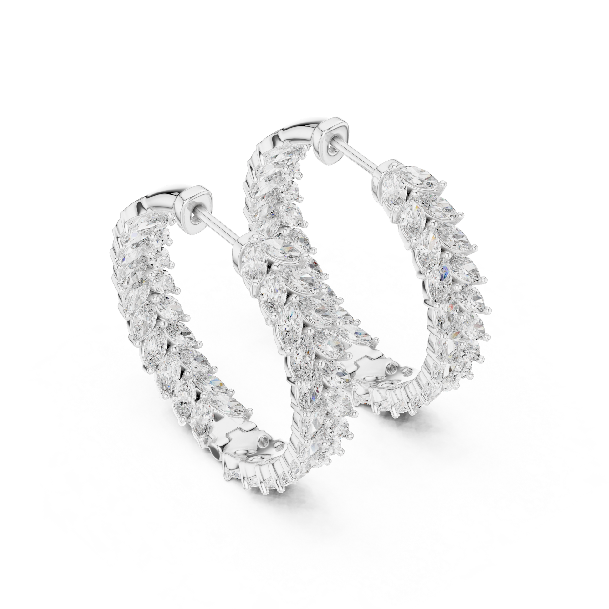Elevate your style with these Marquise Moissanite Diamond Hoop Earrings, exquisitely crafted in solid. Featuring a striking row of marquise-cut diamonds, each stone is precision-set to deliver maximum brilliance, depth, and luxury sparkle. The sculpted hoop design offers a bold yet elegant profile, making these earrings perfect for high-end fashion, special occasions, or everyday luxury wear. A flawless blend of expert craftsmanship, premium materials, and timeless sophistication.