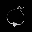 This stunning bracelet features a dazzling heart-shaped centerpiece crafted from intricate, baguette and round diamonds arranged in a beautifully detailed pattern. The delicate chain is adorned with a continuous row of shimmering diamonds, adding an elegant sparkle that catches the light from every angle. Finished with an adjustable slider clasp for a comfortable, customized fit, this bracelet blends sophistication and romance, making it an exquisite accessory for special occasions or everyday elegance by Ivevar.