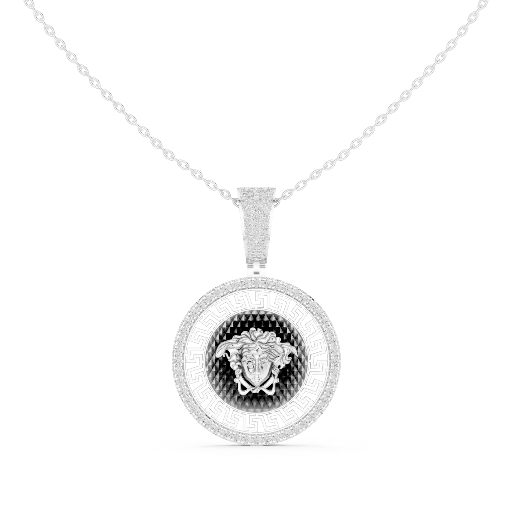 0.80 TCW Medusa Head Luxury Greek Key Medallion Pendant with Lab Grown Diamond Iced Border Classic Jewelry
