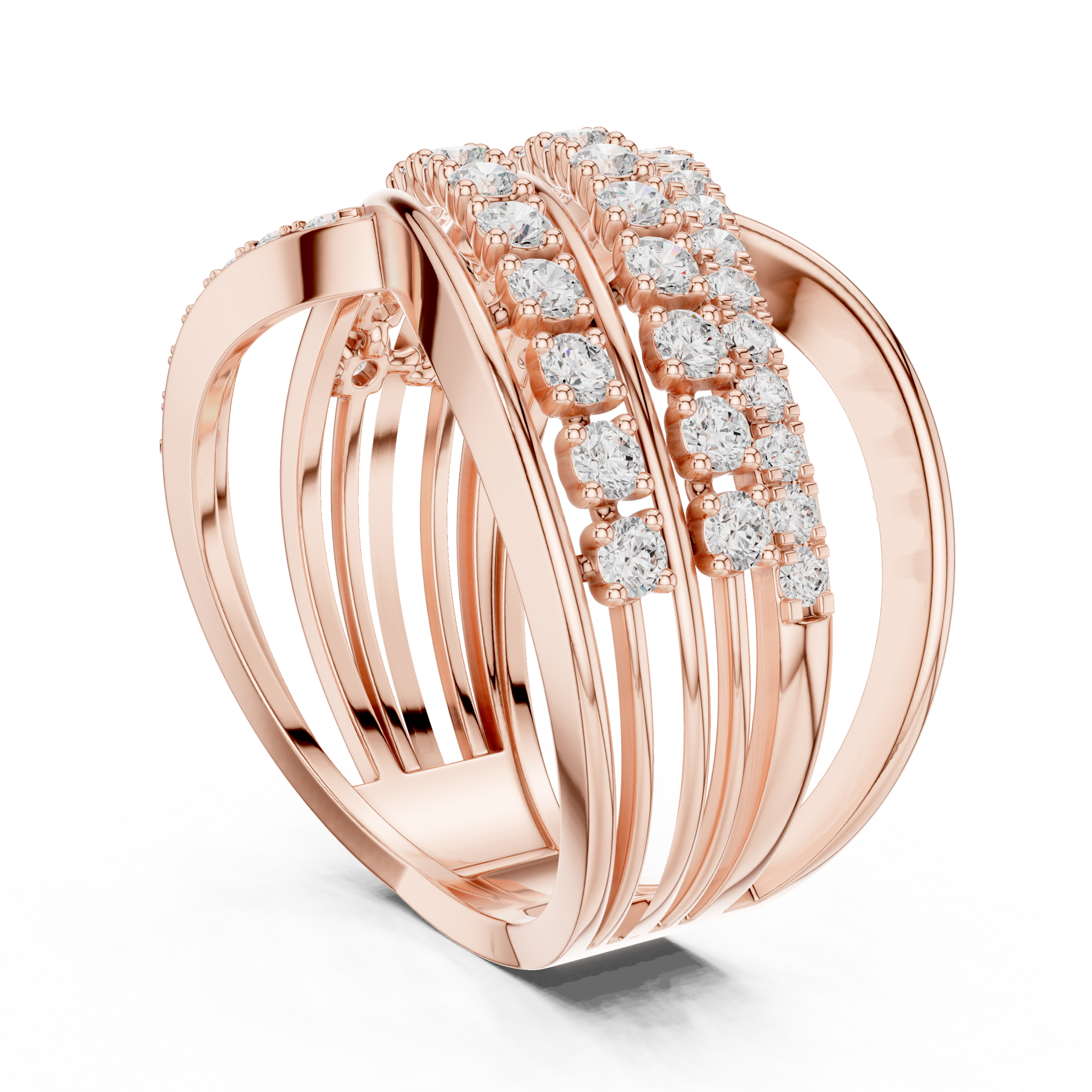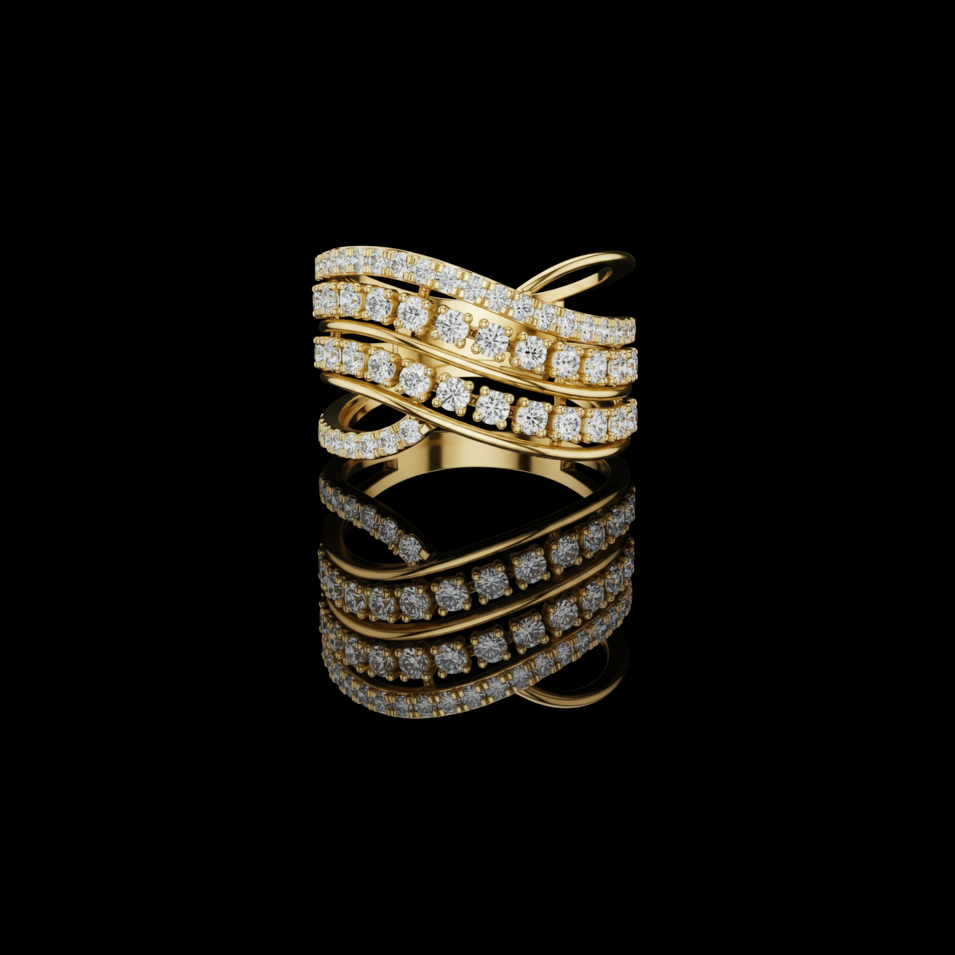 Crafted in luminous, this exquisite ring features multiple diamond-studded bands gracefully intertwined in a captivating infinity silhouette. Each hand-set diamond sparkles with exceptional brilliance, creating a harmonious balance of modern sophistication and classic opulence. Designed to reflect eternal love, strength, and refinement, this statement ring is perfect for those who embrace bold luxury with a graceful touch. A timeless masterpiece that shines from every angle.
